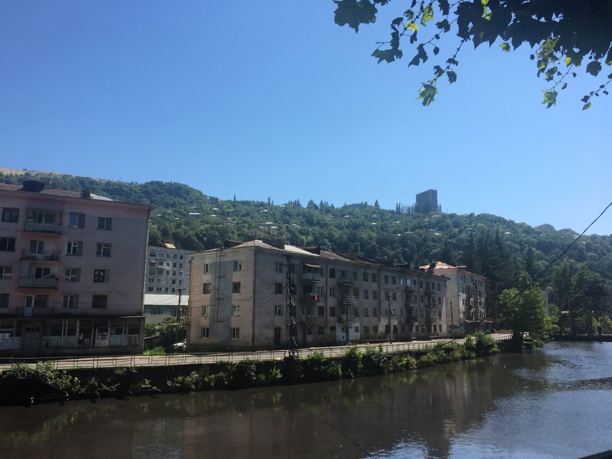 Do města jsme dorazili v odpoledních hodinách, na cestě jsme strávili velkou část dne. Přivítalo nás příšerné vedro a městečko na první pohled nerozeznatelné od těch alpských. Hned od prvních okamžiků bylo zřejmé, že jsme dorazili do velmi turistické oblasti. Doporučuji návštěvu muzea, i když jsme tam dorazili chvíli před zavíračkou, je tam odtud pěkný výhled. Cestou jsme potkali i velmi slibně vypadající kavárničku, kde nabízeli i něco jiného než Jacobs 2v1 jako všude jinde v Gruzii.