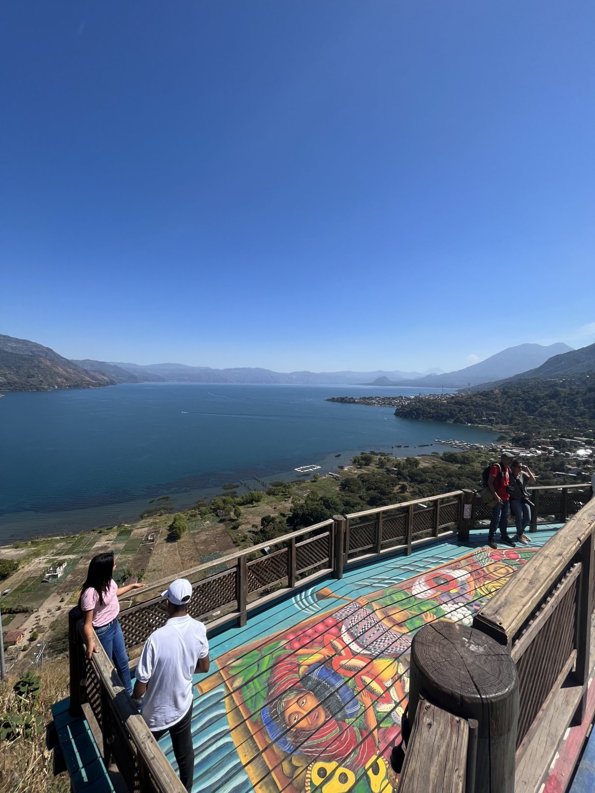 V městečku San Juan hned vedle San Pedro, kde lze vystoupat na stejnojmennou sopku, jsme se byli podívat na krásně a barevně malovanou vyhlídku na jezero. Bohužel výšlap na sopku jsme neprovedli, jelikož nám místníma bylo sděleno, že to není bezpečné a v poslední době po turistické cestě byli lidi přepadáváni.