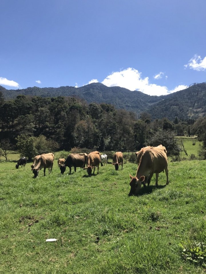 V následujících 2 dnech jsme podnikaly jednodenní pěší výlety z Nebaj za přítomnosti průvodce od Turismo Ixil. Prvním cílem byla idylická vesnice Acul, která se před námi rozprostřela v údolí po překonání hory nad Nebaj. Tomuto údolí se často přezdívá "guatemalské Švýcarsko" a já docela dobře chápu proč. Oproti Nebaj se silným provozem a znečištěným ovzduším působil Acul nesmírně čistě a klidně. Nepamatuji si na jedinou zpevněnou silnici, poměrně úhledné domečky byly postavené kolem travnatých pěšin, po kterých se proháněly nejrůznější druhy dobytka. Po chaotickém přesunu předchozí den byla tahle vycházka úplným balzámem na duši :) Dalším překvapivým aspektem byly 2 farmy, produkující velmi chutný kravský sýr. Zastávka na kukuřičné tortilly plněné tímto sýrem po výšlapu přišla opravdu vhod.