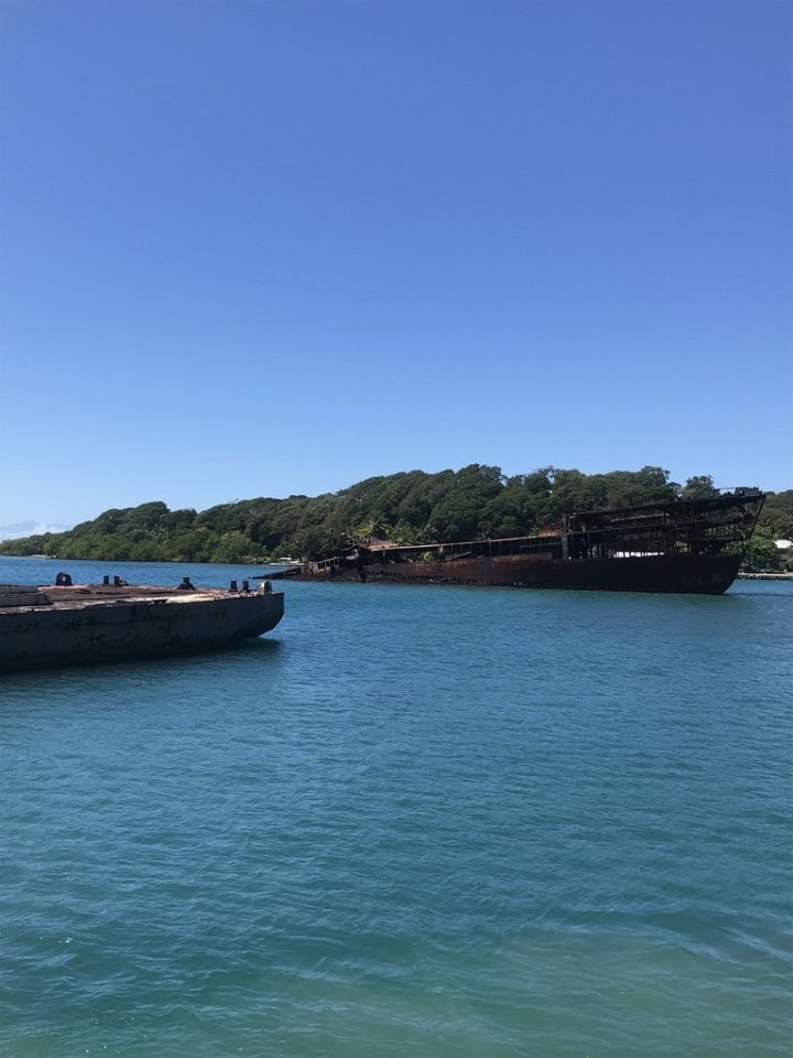 Podle Google Maps měla cesta autem z guatemalského Puerto Barrios až k přístavu trajektu v La Ceiba trvat 5,5 hodiny. Počítali jsme s časovou rezervou na přechod hranice a přestupy a po osobní konzultaci v Livingstonu jsme se rozhodli vyrazit lodičkou v 6.30 ráno, která do Puerto Barrios měla plout 30 minut. Bylo nám doporučeno do přístavu dorazit raději už v 6 hodin, protože zájem o ranní lodě je velký. Jelikož já osobně si raději dávám vždy rezervu cca 10 minut, v přístavu jsme byli už v 5.50 a nastoupili na již čekající loď. Brzký příchod se v tomto případě nevyplatil, protože místo rychlého motorového člunu jedoucího do destinace 30 minut jsme nastoupili na velkou loď, která sice vyplouvala už v 6 hodin, ale které cesta zabrala více než hodinu. Před Puerto Barrios jsme tak měli možnost závistivě koukat na to, jak nás předjíždí svižný člun, kterým jsme měli původně v plánu jet. Cena plavby nicméně byla také poloviční a za šnečí tempo jsme zaplatili 20 Q každý. Pár minut po sedmé jsme v Puerto Barrios nasedli na taxi, který nás zavezl pár bloků k čekajícímu mikrobusu směřujícímu k hranici.