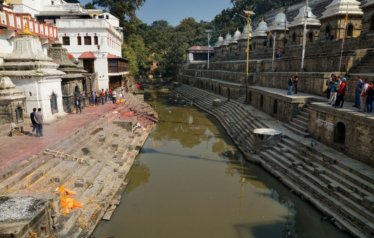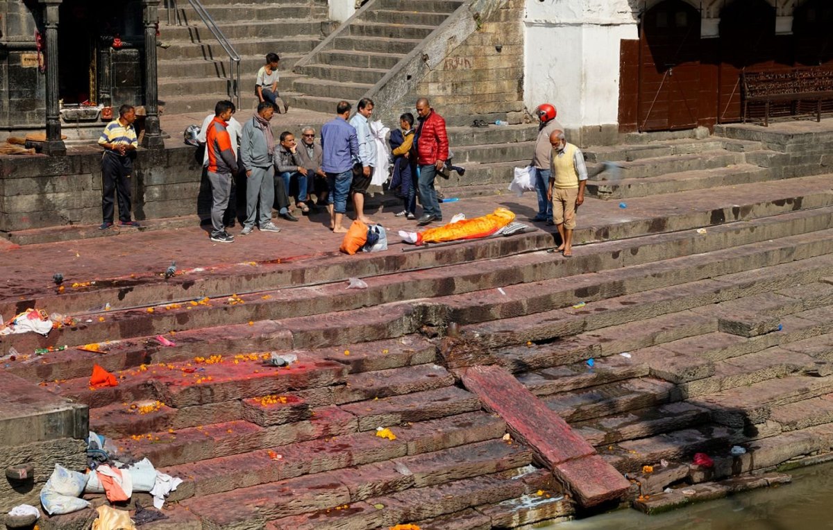 Je pátek a jedeme na výlet. V Káthmándú se rozhodně den až dva doporučuji zdržet. Bereme taxi a vyrážíme směr hinduistický komplex Pashupatinath. Motáme se v té bídě, nějak kupujeme lístky na vstup a tu se k nám přisockne místní chlápek se skvělou angličtinou a standardní výškou 155 cm. Že přímo do chrámu nesmíme, když nejsme hinduisté, ale že nám ukáže všechno kolem. Jo ukázal, opravdu jo, po chvíli kapitulujeme a říkáme si, že mu nějaký prachy za ten výklad musíme dát, nejsme škrti, že jo. Bez jeho průvodcování by byl zážitek ani ne poloviční. Prostě bez té historie, vysvětlování to vnímáte jen jako nějaký chrám, hezký, ale nic víc. Historie tohoto místa sahá až do 15. století, takže jakože dost starý. Vysvětluje nám pohřby kremací, které probíhají spalováním zesnulých na ghátech jako v Indii. Celým komplexem chrámu protéká svatá řeka Bagmati, na jejímž břehu probíhají pohřby stejně jako ve Váránasí. Bagmati teče dále až do Gangy. Čím je rodina zemřelého bohatší, tím blíže k samotnému chrámu obřad probíhá. Řeka je malá, na konci období sucha je to spíš svatá stoka s bordelem. Jeden pohřeb bohaté rodiny je možné sledovat, decentně z dálky. Hinduisté, kteří sem přichází zemřít věří, že když opustí náš svět právě tady, narodí se opět jako lidé a do lepších podmínek. Nikdo nechce být v dalším životě čistič bot. V Nepálu se o smrti mluví běžně, není to tam tabu. Procházíme komplexem dál, průvodce vysvětluje, že opicím se nesmíme dívat přímo do očí, že je to znak agrese a opice by po nás mohla jít. Opicí myslím opici, a ne nějakou ošklivou paní. Vím, že v chrámu jsou svatí muži, sádhové. Sádhus je nejvyšší, čtvrté, pozemské stádium hinduisty. Nemá rodinu, příbuzné, po smrti se jeho tělo na rozdíl od běžných hinduistů nespálí, ale pohřbí do země. Za jedním takovým nás průvodce vede, jestli to je reálný sádhus nebo herec místního divadla nevíme dodnes. Scénka známá z dnes již ikonické fotografie s názvem Dvě kavky a chytrej chlápek proběhla asi takhle: