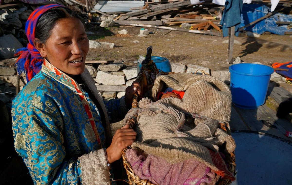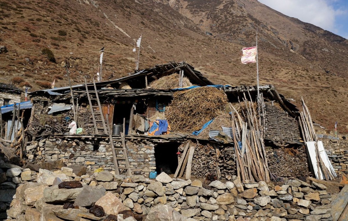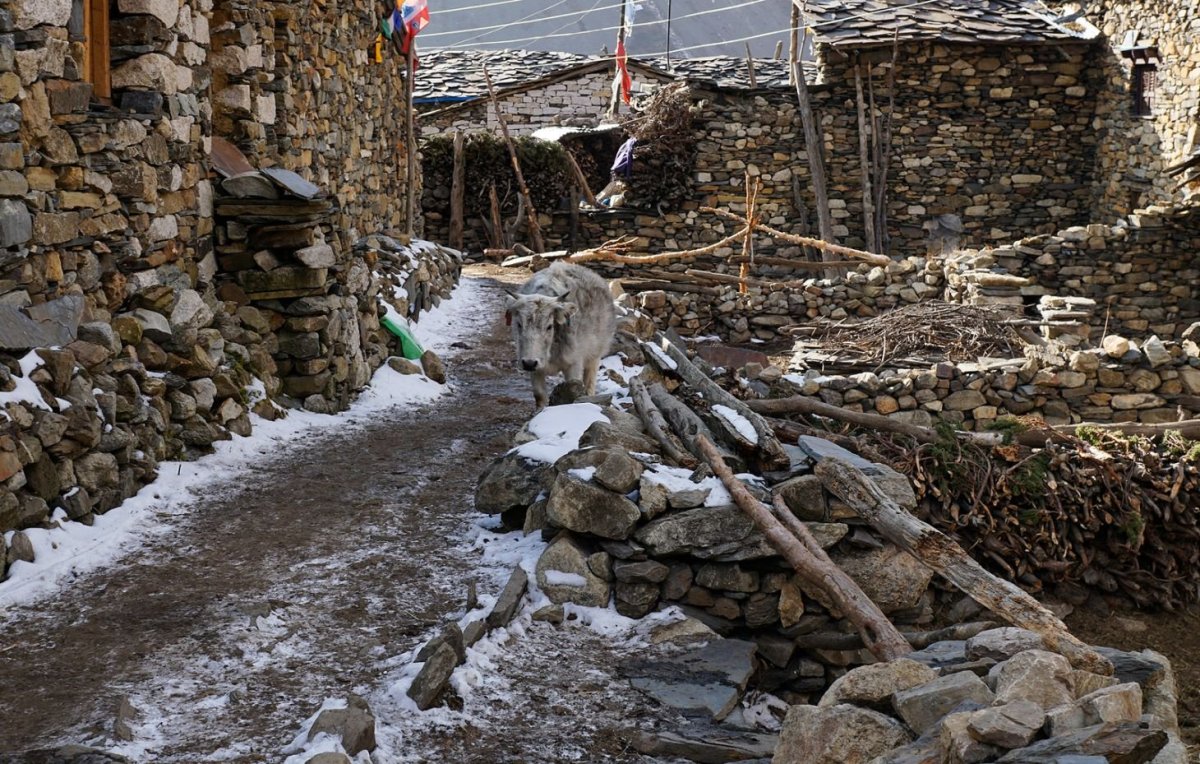 Po snídani, jak jinak než čapátí, vycházíme do dalšího dne. Míjíme modlitební zídky, které obchází se vždy z leva, točíme modlitebními mlýnky a myslíme každý na to své. Pořád mám na sobě tenisky Merrel, dostanou na konci treku metál a vyvraždím jimi jednu nepálskou ves. Hlavu mám vykroucenou do leva i do prava. Je podzim, okolní keře hrají podzimními barvami. Nalevo je masív Mansiri Himal s východní stěnou Manaslu , ledovci padajícími do údolí a jejími satelity. Potom Naike peak, výrazná šestitisícovka. Napravo je hraniční hřeben masivu Pangpoche Himal mezi Nepálem a Tibetem. Je dopoledne a totální azuro. Nosiči nesoucí svůj náklad míří stejně jako my a karavany mul širokým údolím do vesnice Samdo. Čas tu nemá význam. Ráno se vstane, během dne někam dojde a večer se jde spát. Signál na mobil tu není, wifi také ne. Docházíme do vesnice Samdo, 3 800 metrů. Dvě hodiny pěšky odsud je Tibet. Jsme na území, kde žije sněžný levhart. Vidíme jaky. Jak je zvíře adaptované na výšky nad 3 500 metrů. Kdysi se používal na nošení nákladů. Dneska se používají muly. Jsou ovladatelnější a levnější. Híra tvrdí, že kdybychom vzali jaka do Káthmándú, do dvou dnů umře na přehřátí. Nebo na ten smrad, co tam je. Odpoledne jdeme směrem k tibetským hranicím a poprvé na treku jsme ve 4 000 metrech. Život je tady drsný. Ale i tady žijí lidé, k doktorovi je to odtud vlastně asi tak týden pěšky. Co je fakt brutální, je hygiena, řeší to navlhčené kapesníčky. Ani místní nejsou jak ze žurnálu. Ani vizáží, ani vůní. My už také ne. Zítra po prvé beru těžké boty, které zatím táhne nosič. Zároveň se po týdnu treku přiblížila na dohled chvíle, kdy půjdeme do sedla Larky pass přes pět tisíc metrů. Nad vesnicí se tyčí vycházkový vrchol Samdo peak 5 177 m. Ale nejdeme na něj, je to vycházka na celý den. Nicméně cesta je jasná a je to jen chůze, žádné lezení.