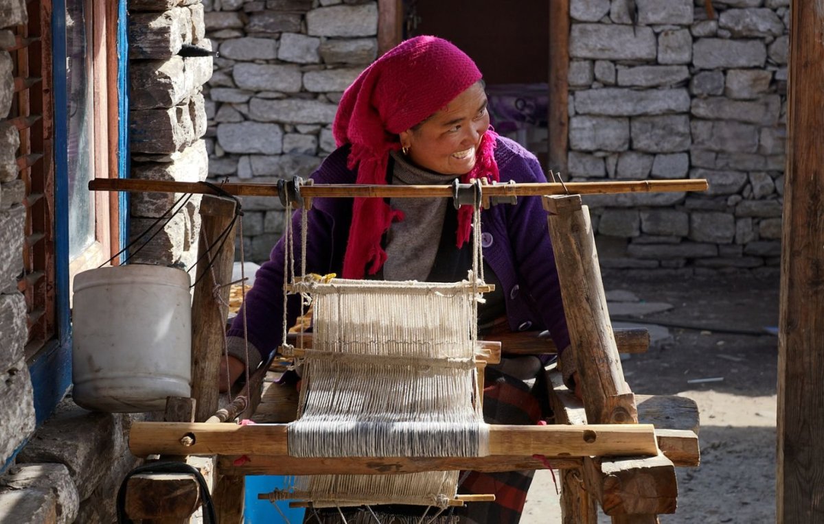 Je ráno kolem půl sedmé, dole v údolí je skoro ještě tma, když se na východní stěně Manaslu začne odehrávat divadlo, které je po milióny let stejné, ale nikdy se neomrzí. Exploze barev, červená střídá oranžovou, oranžová zlatou a sluneční paprsky kloužou po okolních kopcích, hledajíc díru v mracích, které dnes po ránu částečně hory zakrývají. Hory kolem 8 000 metrů Manaslu, Himalchuli a další. Fotím, fotím, snad něco vyjde. Je-li to možné, zůstaňte na výhledy buď ve Lho nebo tady v Syalagaon, na tenhle zážitek určitě nezapomenete. Kvůli tomu se na ty hory jezdí. Po snídani v mrazu před lodgí balíme a jdeme do Samagoan, je to kousek a měl by následovat aklimatizační den. V Samagoan je krásný starý budhistický klášter. S cedulí „no photo“. Blbý, ale je to tak. Fotit se tu nemá. Kousek opodál se staví nový, betonový (aby vydržel monzun a zemětřas, přijde-li). Fotím klášter tak nějak zvenku, jenže my máme Híru, což je výhra. Na chvilku někam mizí a za chvíli jde s mnichem, který nám klášter otevře. Bez průvodce bychom se dovnitř nedostali ani omylem. Prohlížíme si interiér nevelkého kláštera a díky Hírovi nám mnich dovoluje i fotit. Atmosféra je tady klidná. Klášter je starý snad 300 let a alespoň co tvrdí Híra. Nicméně, Híru je třeba brát lehce s rezervou. Jeho angličtina je taková, že máme problém mu rozumět. Naplno se to ukáže v závěru treku, kdy nám slibuje za odměnu kuře, aby přitáhl regulérního kohouta. Jenže on neví, jak se anglicky řekne kuře. Ale to předbíhám. Odpoledne si dávám nejdražší sprchu svého života. Objednávám si kýbl teplé vody. Paní mi dá 5litrový kýbl teplé vody. Stojím na bahnité podlaze sprchového koutu, spárami všude fouká ledový vichr a já se snažím nějak umýt. Ten pocit umytí byl k nezaplacení a to doslova. Těch 5 litrů vody mě stálo 10 dolarů. Příště budu radši smrdět. Pomalu se blíží nejvyšší část treku. Po válečné poradě padne rozhodnutí, že vynecháme aklimatizační den a půjdeme rovnou dál. Odpoledne pozoruji paní, jak na stavu tká látku. To, co jinde člověk uvidí tak možná v muzeu, je tady realita. Jsme v jiném století. Jen solární panel a led žárovka ukazují, že pokrok nezadržitelně míří i sem. Večer zatápíme v kamnech v jídelně a sedíme všichni u nich. A teď jak to probíhá. Paní zatopí kousky dřeva. Následně vezme suché hovno z jaka, rozlomí ho a hodí do kamen. Pak si utře rukou nudli u nosu a jde nám pro večeři, kterou okamžitě přináší. Aby se ujistila, že je dal-bhat teplý, tak do toho tou samou rukou strčí prst. Tedy pořadí je hovno – nudle - večeře. Koulíme očima, ale hlad je hlad. Na závěr celé show ještě ucpe kamna hovnama a odejde někam do pryč. Kamna čoudí a chcípají, chybí jim vzduch a jsou ucpaná. Čoudí do místnosti a štípou nás oči. Míra všem recituje báseň, " když se hovna rozhoří, tak se tváře rozzáří". Bohužel toto zaklínadlo nepomáhá, kamna se hovnama ucpala a nehoří. Tak jdeme radši spát. Zalezu do spacáku, beru sluchátka a pouštím muziku.