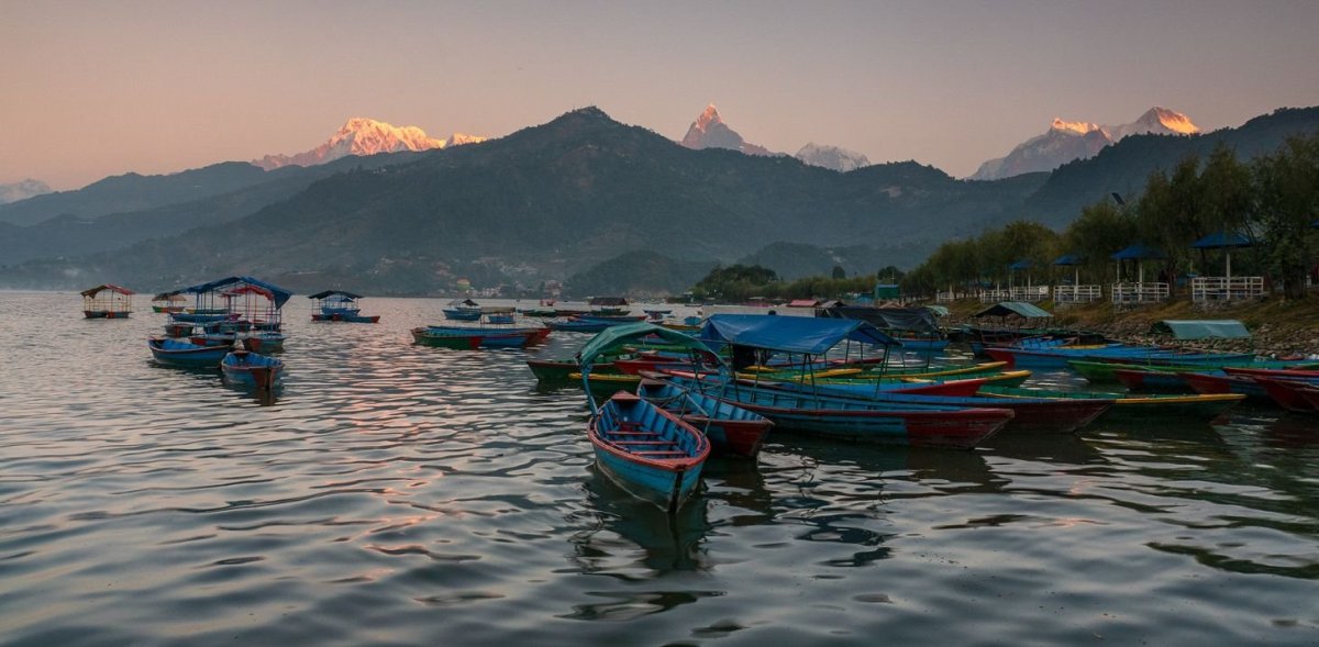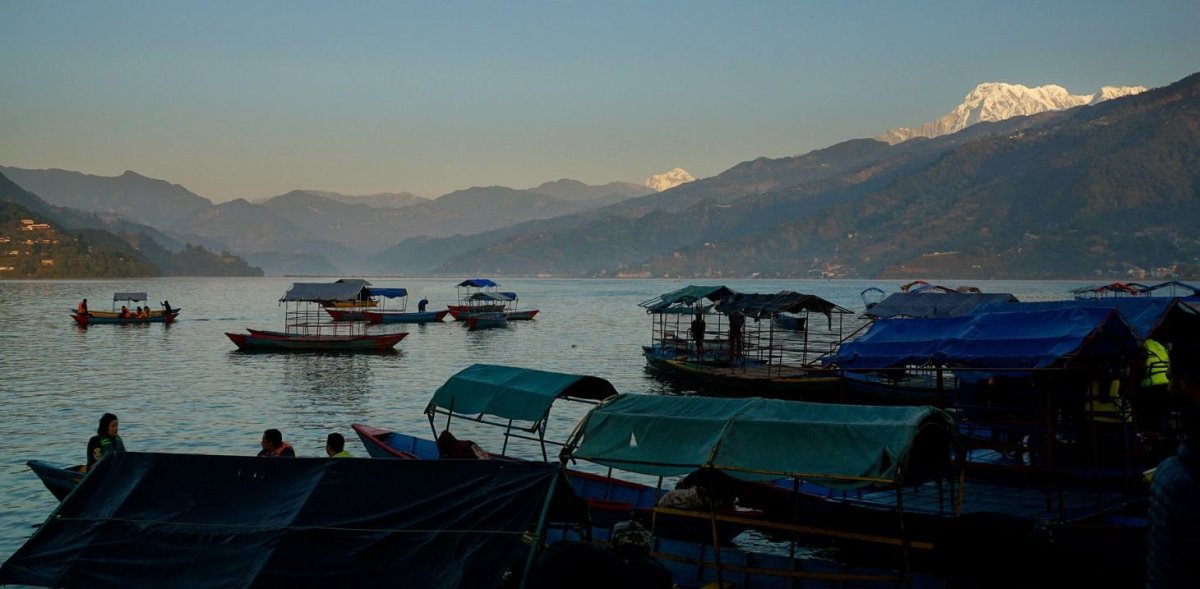 Pokhara je docela pěkné město s asi 300 000 obyvateli ve středním Nepálu u jezera Phewa. Pokharu pro západní svět objevili někdy v 70. letech 20. století hippies. V hotelu nám na druhý den zařídili výlet na vyhlídku Sarangkot. Je půl šesté ráno, sedáme do taxíku a vyrážíme na to přírodní divadlo. Spolu s námi ještě asi půlka Pokhary, cestou nahoru to vypadá jak na D1 u Humpolce, když nasněží 3 cm a sněhová kalamita ochromí půl republiky. Obavy, jestli to nějak stihneme se ukázaly zbytečné. Stíháme východ slunce sice tak tak, ale jsme na místě a sborově s turisty převážně z Asie za zády čekáme na tu přírodní show. Vyhlídka Sarangkot je jedna z nejlepších, kde je při východu slunce nasvícený hřeben Annapúren 8 091m, další osmitisícovky Dhaulagiri 8 167m a ještě horou Machapuchare 6 995 m, což je takový místní Matterhorn, akorát o 3 kilometry vyšší. Rozměry těch kopců jsou opravdu jiné, než na co jsme běžně zvyklí. Máte pocit, že hora je kousek a ono je to klidně dalších 50 km. Chce-li člověk na tomhle místě fotit, musí mít ostré lokty, protože těch, co chtějí fotit, je tu asi tak 500. A taky stativ a notný kus štěstí. Velmi často se už brzy ráno vytvoří opar, který omezí viditelnost hor tak, že skoro nemá cenu fotit. Dneska to ale jde, začíná divadlo, které režíruje někdo nahoře. Vrcholy hor se pomalu nasvěcují červenou a ze stínu se vynořuje na severu Himálaj. Dva osmitisícové vrcholy, Dhaulágiri a Annapurna rudnou jako první a chvilku po nich další vrcholy. Po asi 20 minutách je v zásadě po všem a vracíme se zpátky. Zbytek dne strávíme flákáním se asi v nejčistším městě Nepálu, které přece jen připomíná turistická střediska i v Evropě. Pokharu se vyplatí navštívit. Ještě děláme nějaký nákupy, frčíme ve značkách, tady jede North Face, reálně North fake. Ale vypadá to hezky. Kupuju nový boty - North Face. Druhý den ještě vyjedeme na vyhlídku k world peace pagodě, což je vcelku monumentální stavba nad Pokharou s krásnými výhledy na jezero Phewa, Annapúrnu, Dhaulagiri a kopce za ním. U pagody potkáváme nějakýho vyzáblýho týpka, co tam stojí na hlavě, s ním nějací jeho fanoušci a asi se modlí. Frajer je asketa a možná mladší brácha Buddhy. Jinak místo je mimořádně tiché a klidné.