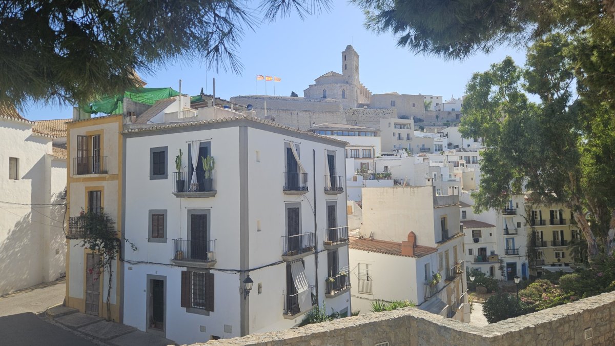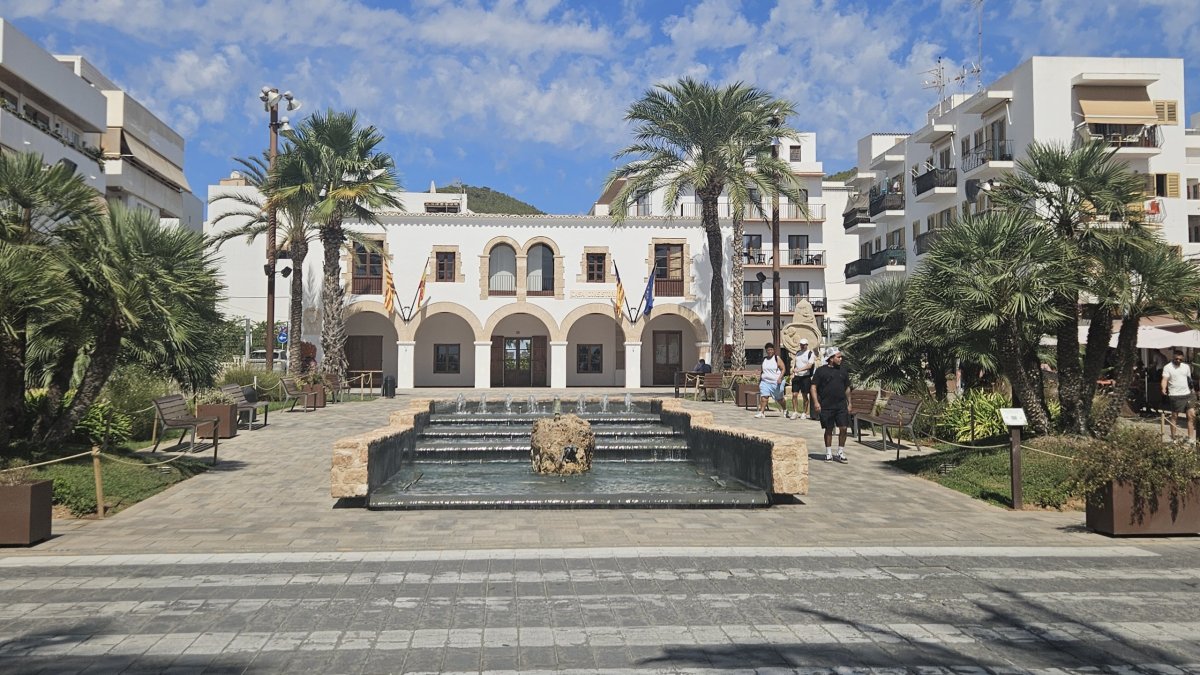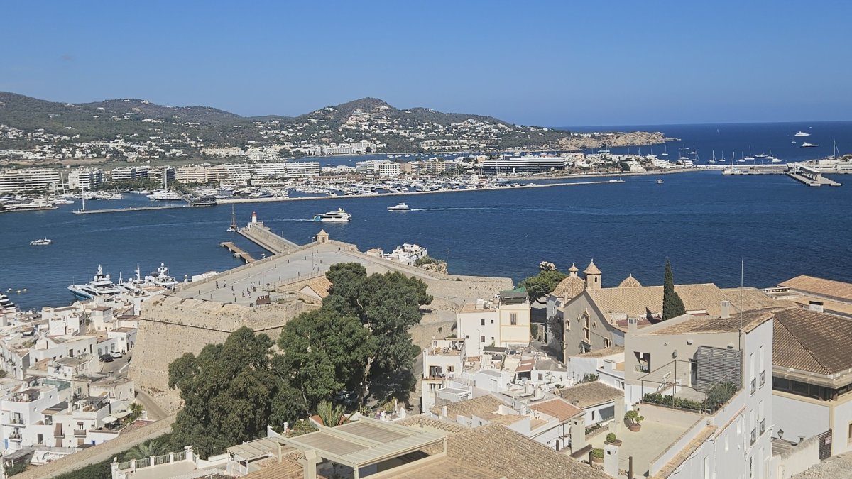 Přejíždíme na ubytování – Apartamentos Vibra Monterrey, které se nachází v lokalitě Cala de Bou, což je turistická oblast přímo naproti přes záliv ležícímu městu Sant Antoni de Portmany, což je turisticky nejvytíženější místo na ostrově. Fasujeme menší standardní studio s klimatizací, kterou ale v pozdním létě za celý týden ani nezapínáme. Při check-inu nám paní nabízí i slunečník na dobu pobytu zdarma. Ubytovací komplex s vlastním bazénem leží celkem bokem ruchu, takže i parkování je zde bez problému. První odpoledne vyrážíme do Sant Antoni de Portmany na první obchůzku. Na severozápadě města je několik nezpevněných parkovišť, kde je odpoledne dostatek parkovacích míst. Projdeme si přístav a centrum města, zatím poloprázdné, chystající se na večerní nápor pařbychtivé mládeže z celé Evropy.