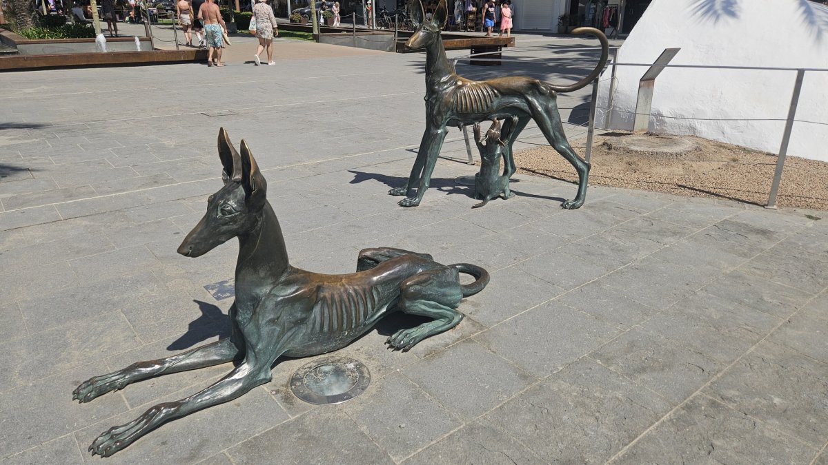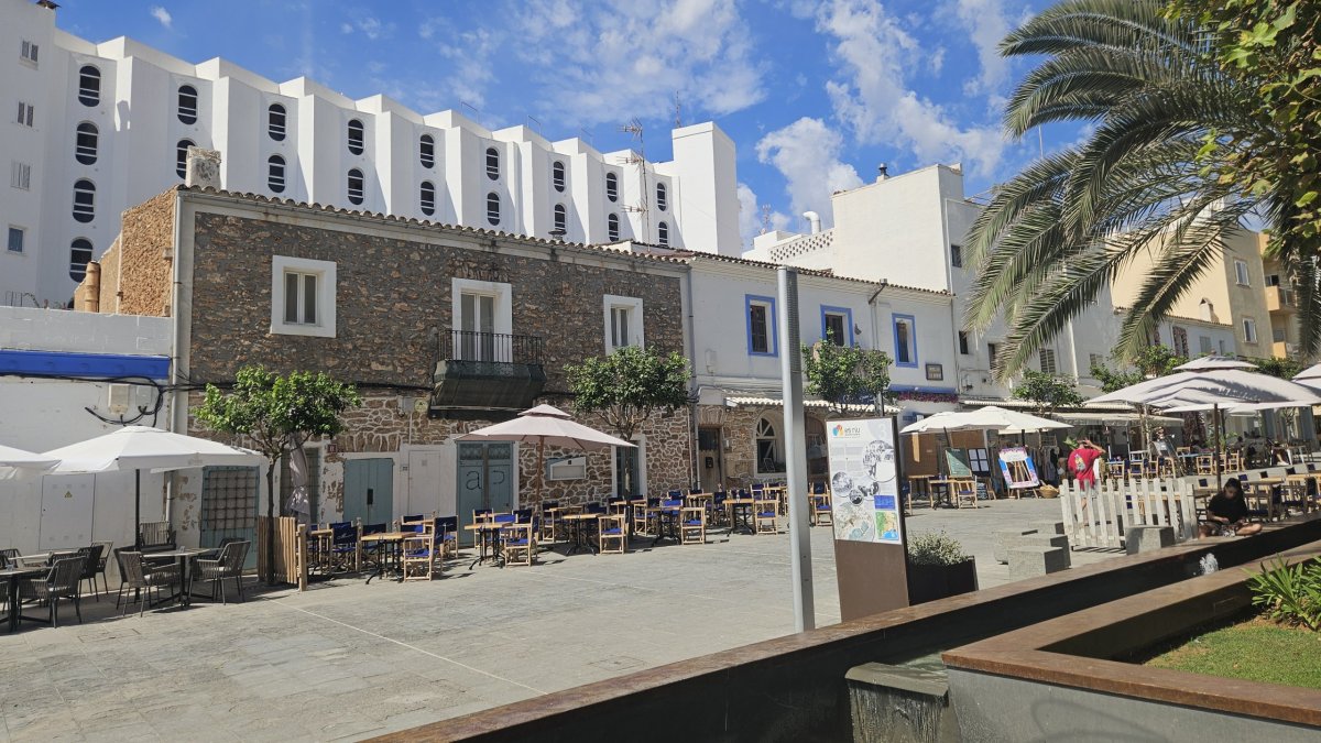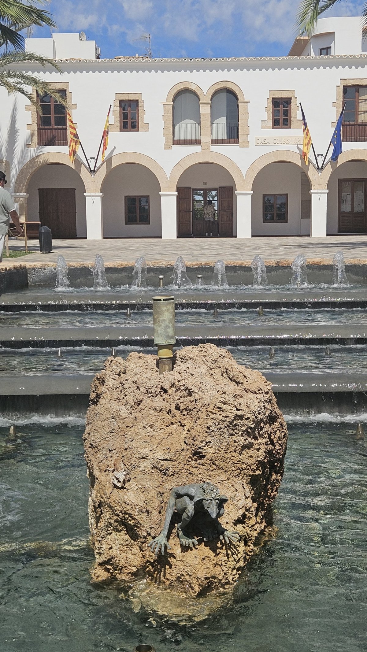 Pokračujeme směr Santa Eulária, kde je v centru zase problém zaparkovat kvůli barevným zónám, to se nám daří až kousek za přístavem se stovkami jachet. Kolem přístavu a poloprázdné městské pláže jdeme do příjemného centra s promenádou. Zde můžete narazit na několika místech na sochy místních skřítků. My přes centrum pokračujeme na kopec, kde je v úžasně klidném prostředí starý kostelík se hřbitovem.
