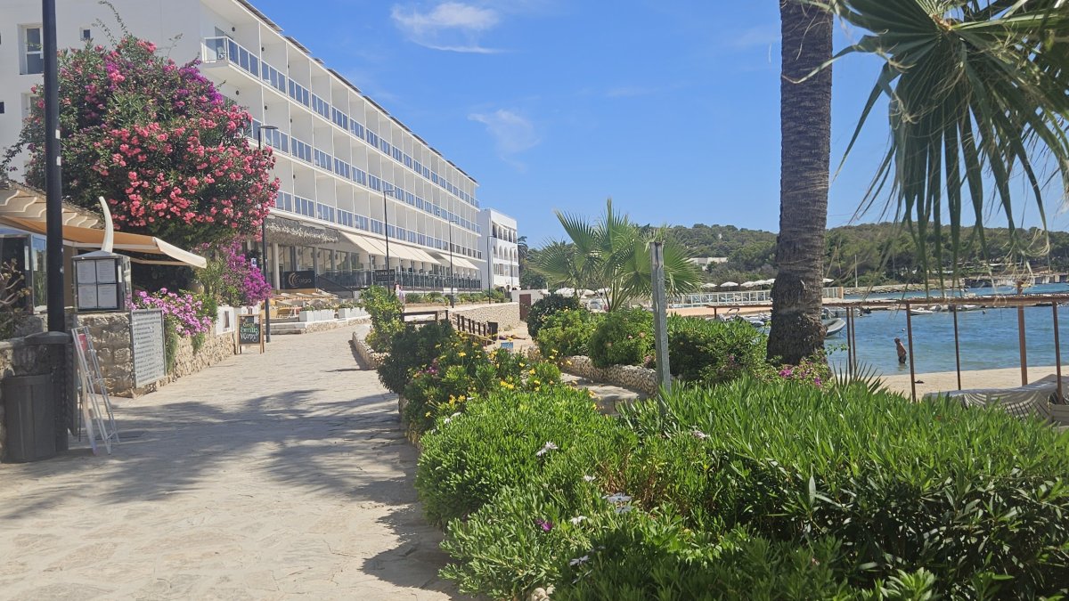 Naším cílem je Cala de Sant Vicent, menší turistické středisko s krásnou pláží. Parkujeme na velkém poloprázdném parkovišti vlevo v lese. Na široké a celkem dlouhé pláži je lidí minimum a parádní klid, což je celkem v kontrastu s hradbou moderních hotelů za ní. Při večerním návratu na ubytování ještě zajíždíme do Port de Sant Miguel, což je další turistické místo, toto pro změnu na severu ostrova. Menší místní pláž je obklopena velkými hotely a probíhá zde i čilý stavební ruch - stavba či rekonstrukce jednoho z nich. Pro nás místo turistické až příliš, takže si to jen bez koupačky projdeme.