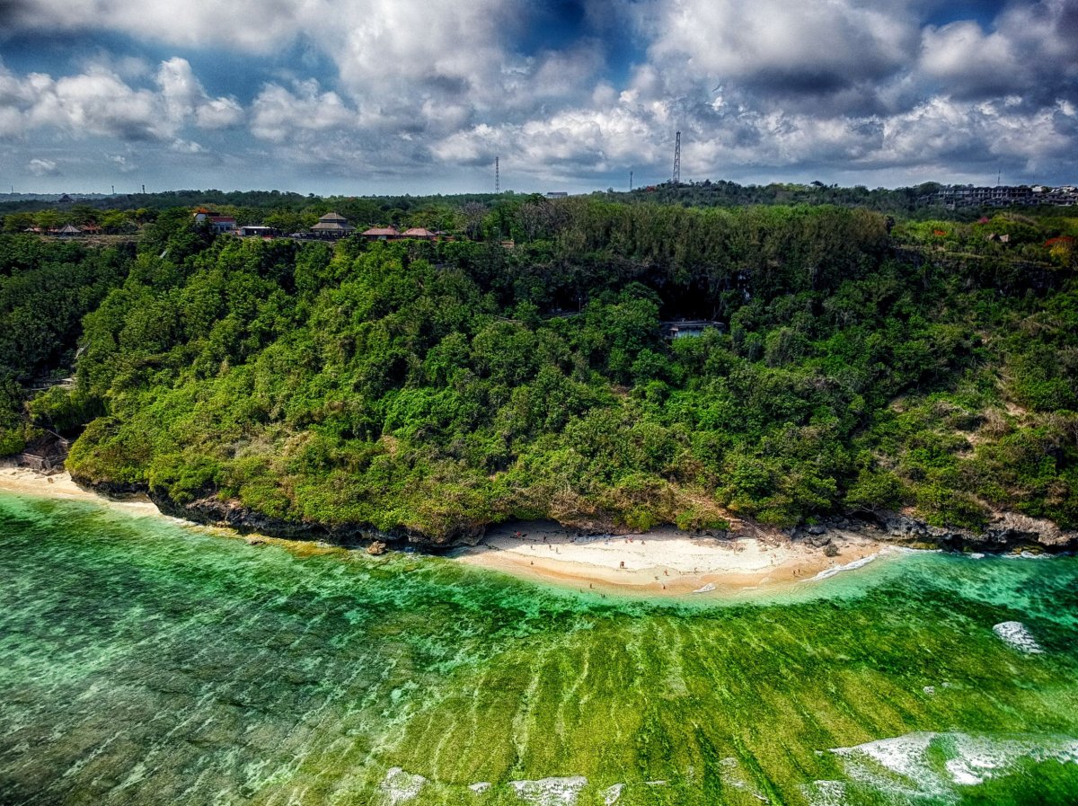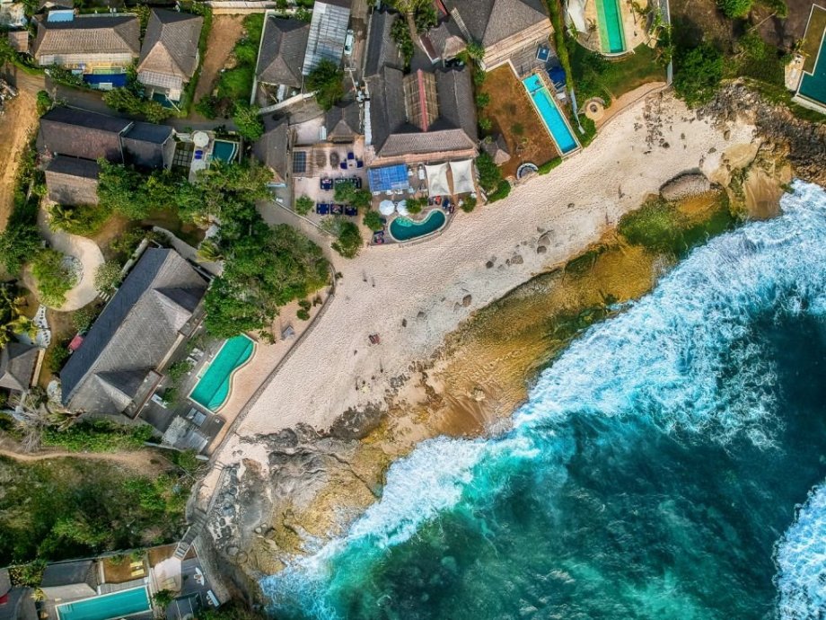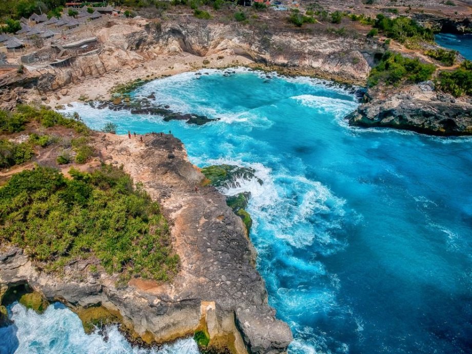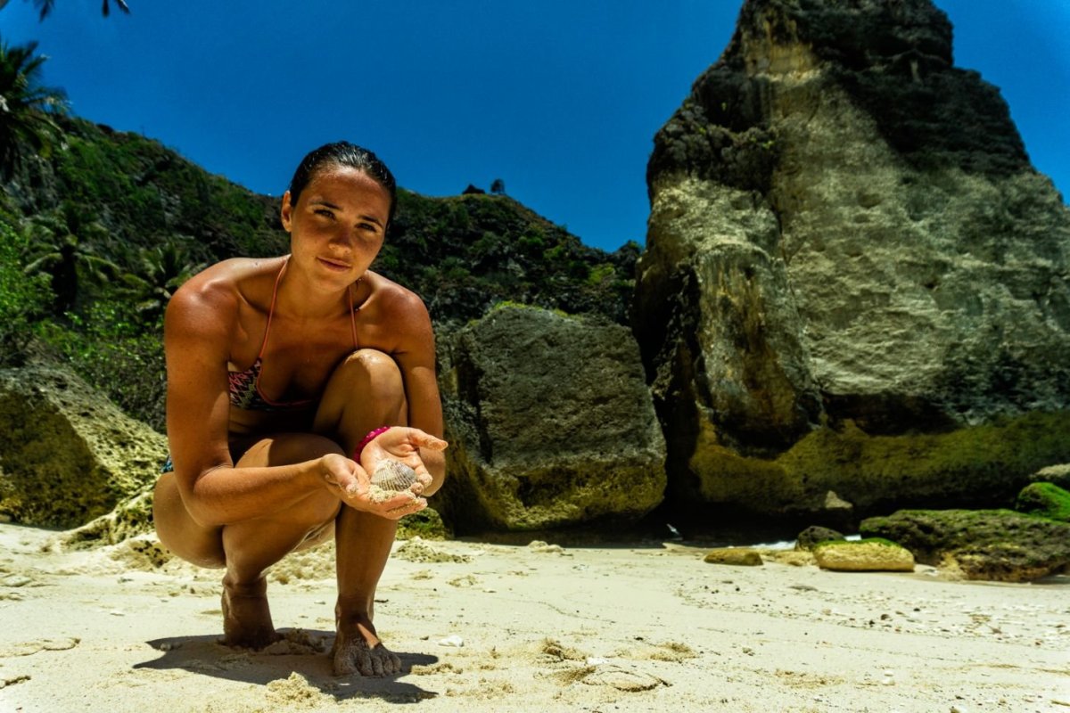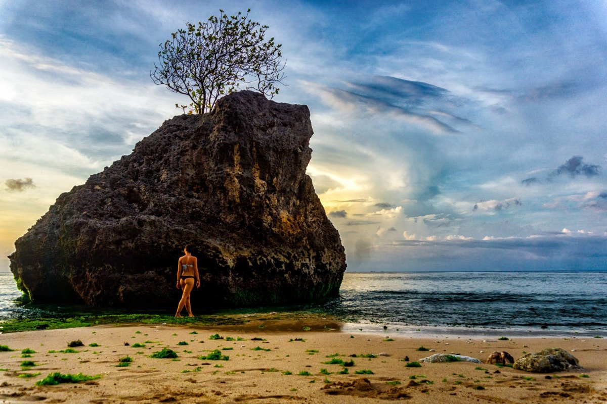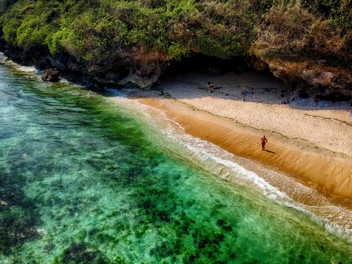 ➡️Atuh beach - Druhá nejhezčí pláž na Nusa Penidě. Přístup k ní je po vytesaných schodech o mnoho snažší než na Kelingking beach. Vlny tu jsou také celkem velké, ale můžete se aspoň schladit v přirozeně vytvořených bazéncích podél celého pobřeží. Navštívit můžete i pláž z levé strany, která je lépe přístupná a vhodnější pro koupání nebo vyhlídku Atuh Raja Lima z pravé strany, kde si můžete zarezervovat přes Airbnb i stylové ubytování v korunách stromů s výhledem na útesy u Atuh beach.