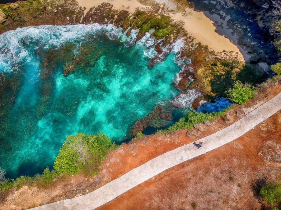 ➡️Broken beach - Krásný přírodní úkaz, kdy oceán proniká tunelem v útesu do jezírka. Kousek vedle je přírodní bazének Angel's Billabong. Smaragdové jezírko ve skalních útvarech, kde si může každý vybrat svůj vlastní bazének.