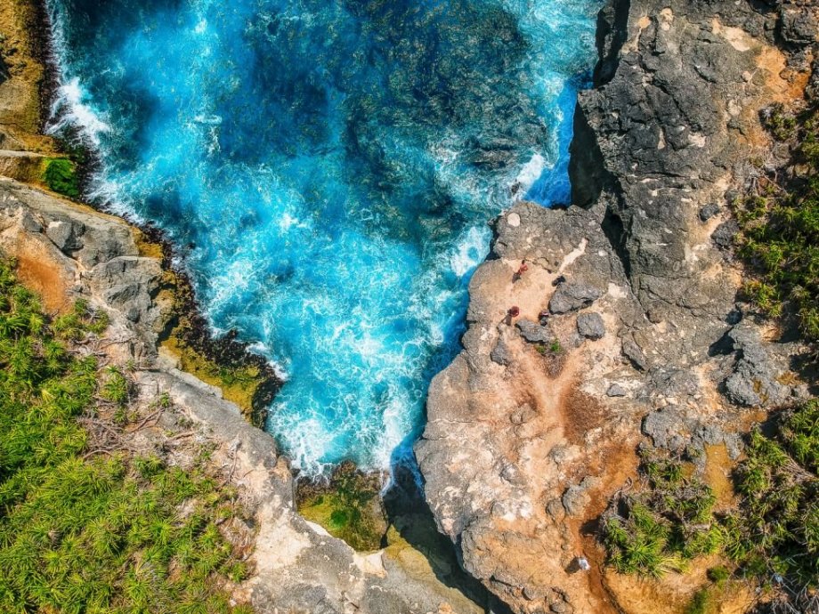 ➡️Kelingking beach - Nejhezčí pláž na světě s útesem ve tvaru T-Rexe, krkolomným názvem a ještě krkolomnější sestupem dolů. Cesta dolů a nahoru se pojí i s prvky horolezectví a v těch nejvyších vedrech je dost vyčerpávající, takže cestou potkáte dost lidí na pokraji sil, ale když to nevzdáte tak vás jako odměna čeká nádherná, skoro prázdná pláž, která je jak z jiného světa.