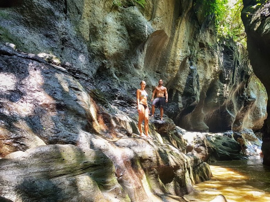 ➡️ Ztracený kaňon (Hidden Canyon Beji Guwang) - Pokud jste dobrodružnější povahy, můžete se vydat na brození se skrytým kaňonem. Místami je to sice dost obtížné - musíte překonávat silné proudy, skákat z kamenu na kámen, šplhat po skalách a brodit se, né zrovna čistou vodou, kde nevidíte ani kam šlapete. Obtížnost brození hodně závisí na aktuálním počasí a vydatnosti srážek. Voda v kaňonu totiž hodně kolísá a večer při vydatných deštích může být v kaňonu klidně o 3 metry vody výš. Jestli by vám nestačila základní trasa, která je asi na hodinu a půl, tak si ji můžete prodloužit a pokračovat dál dvou až tří hodinovou delší trasou.
