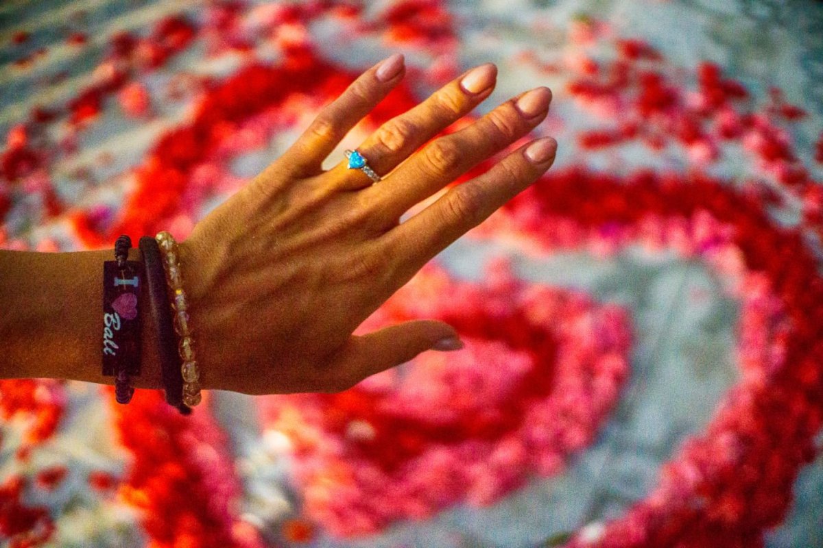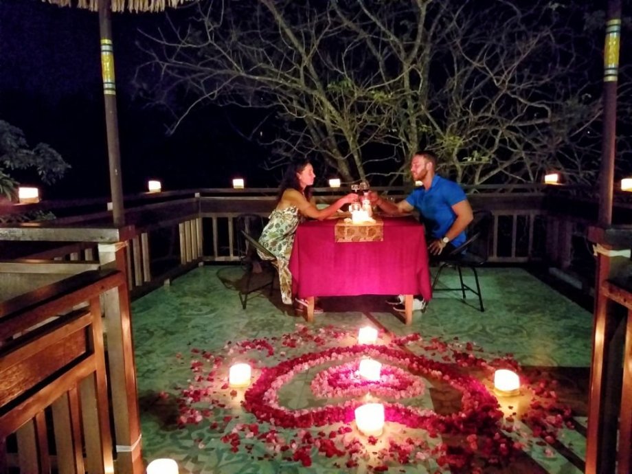 Zásnuby -.žádost o ruku, která se prostě neodmítá💑👍 V Ubudu jsme se také zasnoubili. Pro Barču jsem jako překvapení přichystal pobyt v jejím vysněném resortu Beji Ubud resort o kterėm do poslední chvíle netušila, že jej navštívíme. Po balijské masáži přišla romantická večeře u infinity bazénu se žádostí o ruku, která ptostě nešla odmítnout. ☺