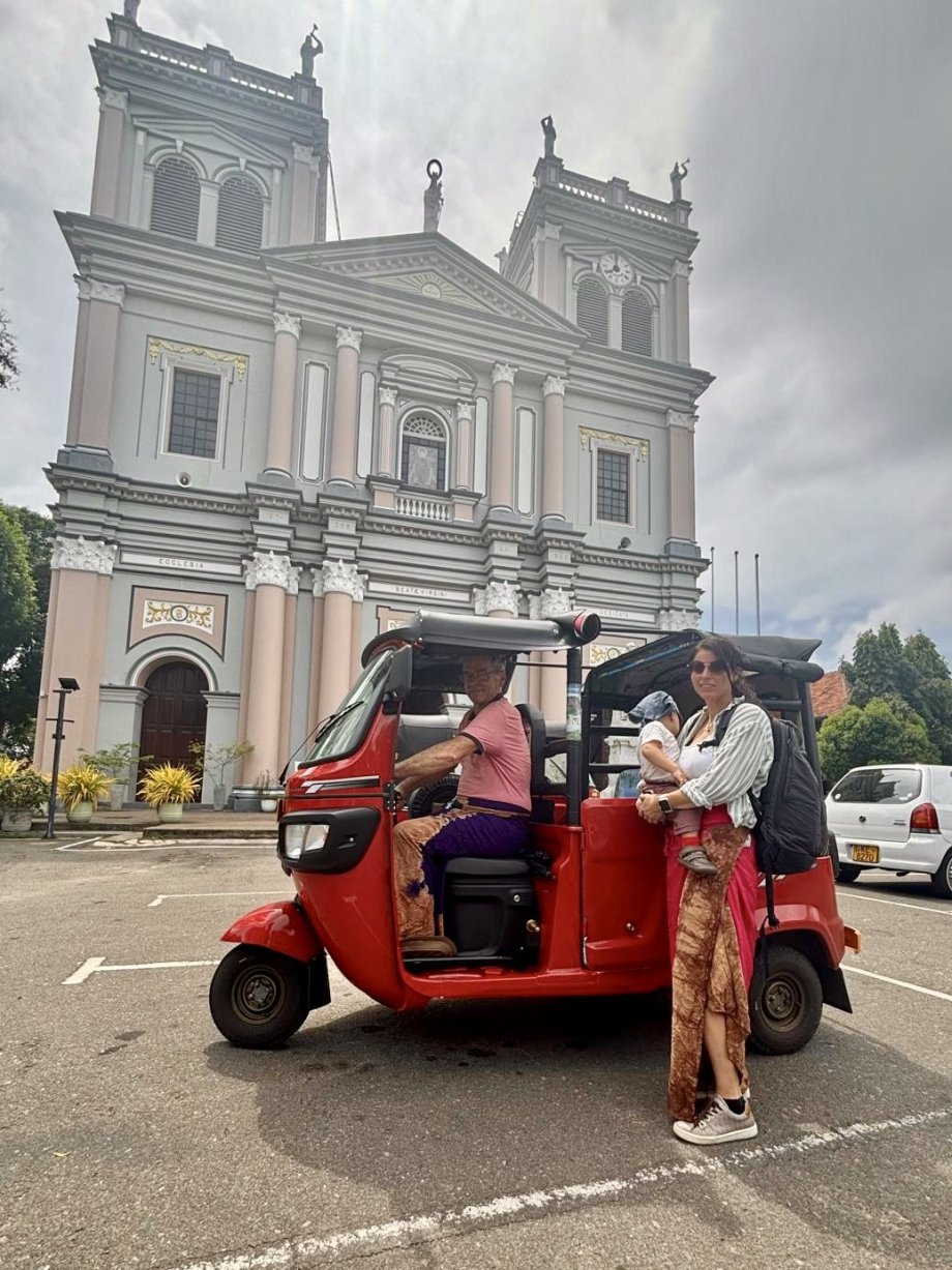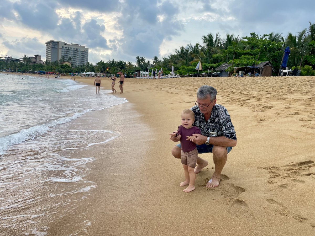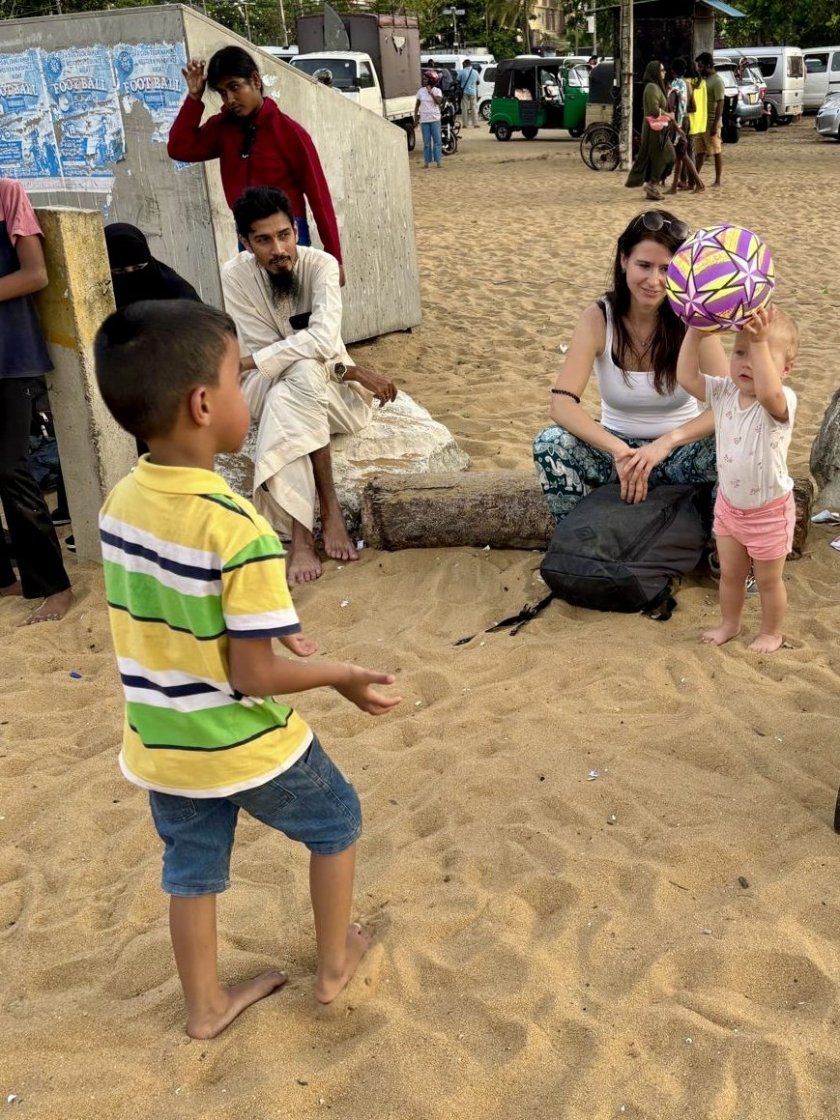 Na letišti, kde tři směnárny hned vedle sebe bojují o zákazníky překřikující se s nabídkami nejlepších kurzů jak na tržišti, měníme nějaké peníze. SIMka je tady k dostání za pár šupů, ale já jsem věrná Airalo. Horko, vlhko a tanečníci předvádějící své umění umocněné divokým bubnováním jsou tím pravým uvítáním po dlouhé cestě. Pomocí appky Pickme volám taxi a za chvíli se už řítíme mezi tuktuky, koňskými povozy a vším co se nějak hýbe v jakémkoli směru do města Negombo. Po půlhodince do sebe klopíme první drink v Blue Elephant Butique Hotel, kde se jen rychle vybalíme a procházkou jdeme na pláž. Obrovská písečná pláž s neuvěřitelně teplou vodou nás příjemně překvapí. Jen ty vlny. Em neodolala, a tak jí za snahy nás obou ji udržet nad hladinou, jiskří oči novým zážitkem. A jako jediné bílé nahulaté tělíčko mezi desítkami tmavými a oděnými budí patřičnou pozornost. Brzy je tma a my se hladoví a unavení vracíme na hotel na večeři. Zkouším tradiční kottu - kousky nasekané chlebové placky se zeleninou a kuřecím. Jídlo to může být dobré, jen v podání hotelové kuchyně je poněkud mdlé. Zapiju to čerstvým mangových freshikem a jdeme spát. Tu nejmenší ale dostihl slušný jet lag, který se zjevně kvalitním letadlovým spánkem vyústil ve střídavou potřebu házet si na terase s balonem a popírat maminčinu potřebu spánku. Kolem druhé hodiny ranní boj vyhrávám.