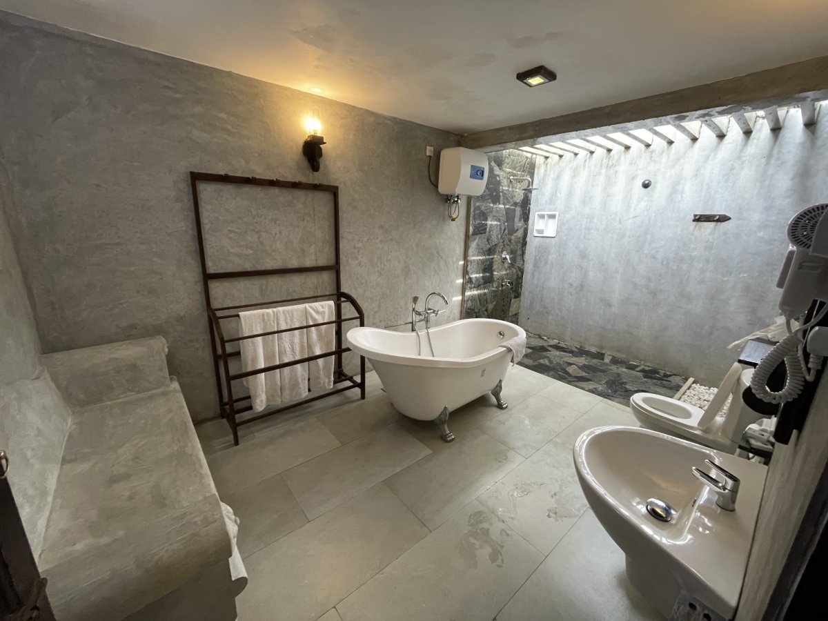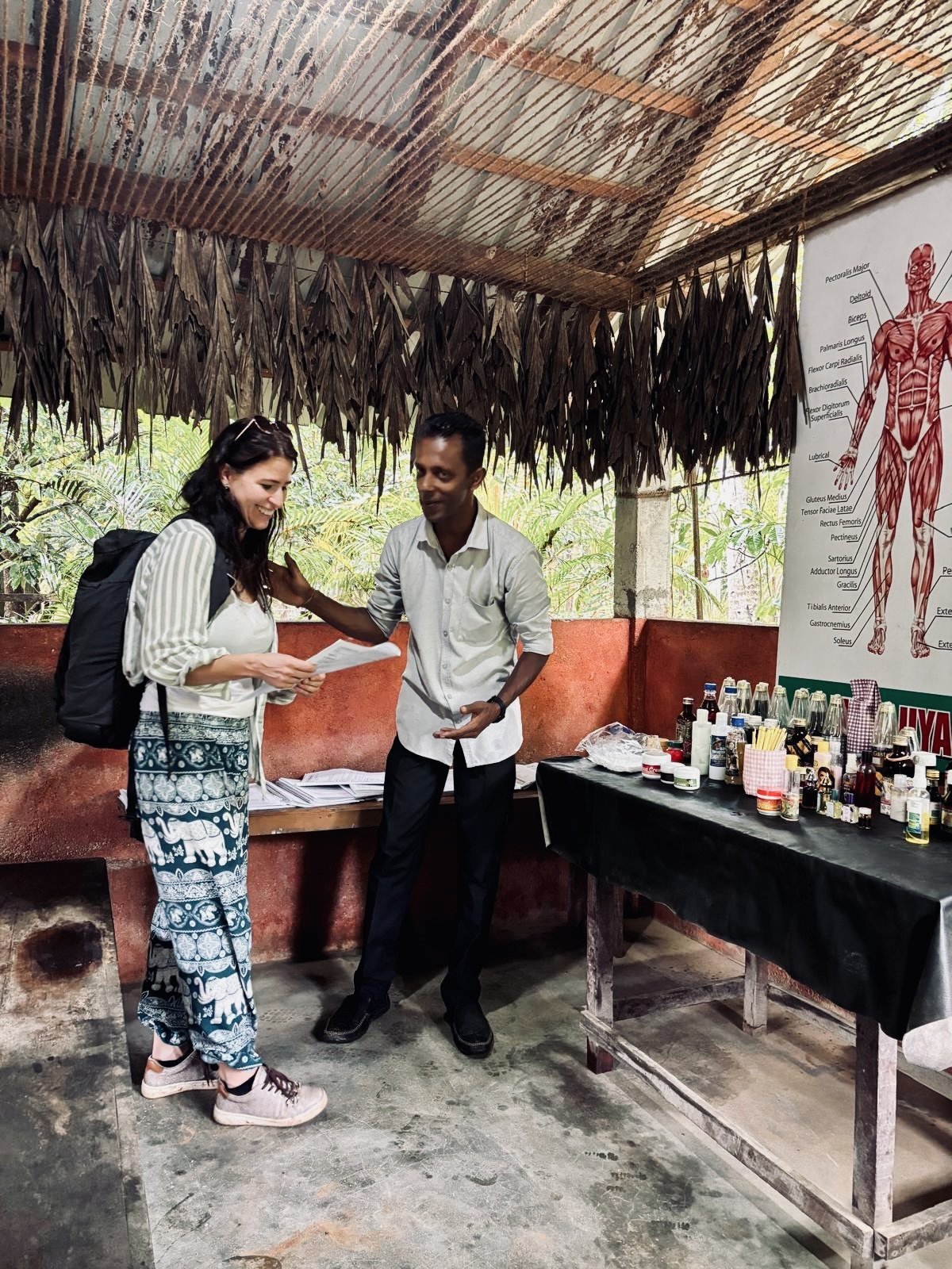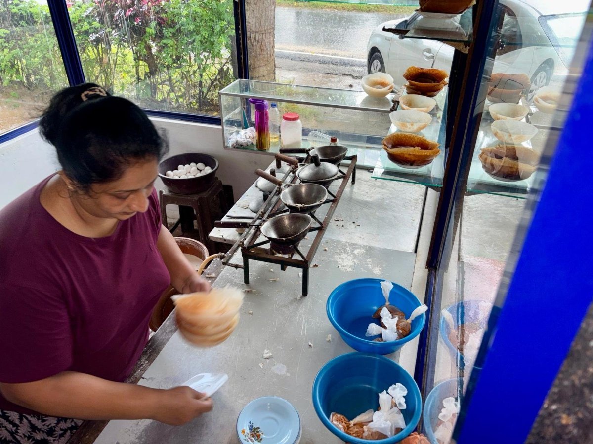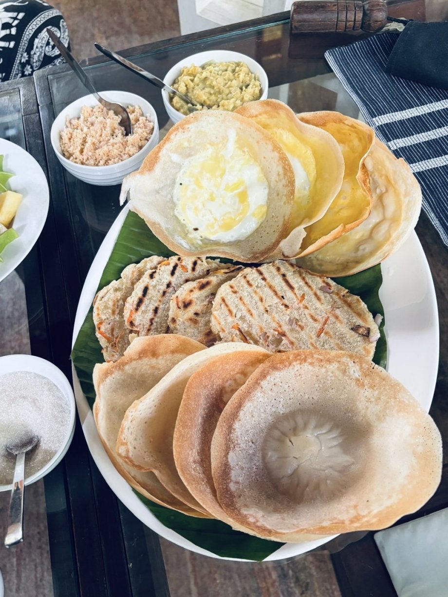 O kousek dál jsme navštívili Spice garden - zahradu, kde pěstují nejrůznější koření a bylinky. Vidět třeba pepř, vanilku nebo hřebíček jinak než v pytlíku v supermarketu je velmi obohacující. Dokonce mají regulární školy, kde se věnují léčebným účinkům těchto plodin a učí se míchat nejrůznější směsi a tinktury, které jsou účinné na všechny lidské neduhy - prý vyléčí cukrovkou, křečové žíly i bolesti zad. A doktoři nebudou mít co žrát. Vstup je zdarma, ale očekává se nákup zázračných produktů v obchůdku za vůbec ne lidové ceny. Vodičku objemu velkého panáka za cenu menší zlaté cihličky, kterou potřu předloktí a přestane mě bolet hlava nechávám na poličce a jdu si lupnout Ibalgin. S díky za přednášku dáváme pár bankovek našemu léčiteli a sedáme do auta. Na doporučení Nuwana stavíme u nenápadného podniku, kde dělají ty nejlepší hoppersky - palačinky miskovitého tvaru z fermentované rýžové mouky, které se podávají na slano s nějakým dipem nebo, jako jen v této oblasti, s kokosovým medem. Mňamka. V plánu jsme měli ještě ZOO, ale dáváme přednost odpočinku. V Pinnawale se většina turistů ubytuje v hotelu s výhledem na řeku, kam se chodí sloni ze sirotčince dvakrát denně koupat. Původně jsme zde také měli zabookovaný pokoj, ale po přičtení poloviny ceny vstupného do sirotčince, který byl pro pobyt podmínkou, jsme za stejnou cenu zvolili Villa Pinnawala o kousek dál. Ten byl sice bez výhledu na řeku, zato s bazénem, krásnou tropickou vilkou a asi 10ti členným týmem personálu v bílých rukavičkách (nekecám!) jen pro sebe. A ta královská vana uprostřed koupelny hned vedle sprchy pod otevřeným nebem byla ideálním útočištěm pro celý večer s knížkou v tomto tropickém ráji.