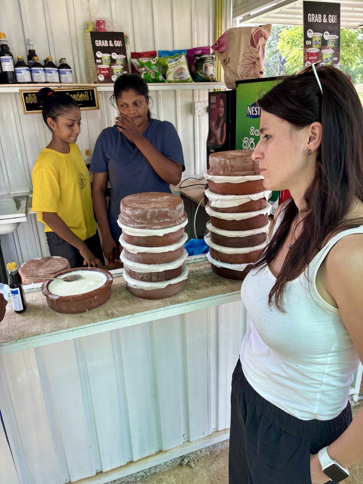 Původně jsme měli namířeno do Udawalawe na safari, ale protože Em nejevila nějaké zvláštní nadšení ze slonů v předchozích dnech a my zažili safari v Keni, navíc už prahneme spíše po klidu, na poslední chvíli měníme plány a jedeme přímo na jih na pláž. Nevíme, které letovisko z mnoha vybrat, tak to necháme v režii Malitha. Cesta je dlouhá, přes čtyři hodiny, ale Em je skvělá, tak ji zvládáme jen s přestávkou na oběd, banány a kiri kaedi - jogurt z buvolího mléka prodávaný v hliněných nádobách, ve kterých vydrží i mimo lednici a který se prý nedá sehnat nikde jinde než tady. Trvanlivost se rozhodneme otestovat a nesnězený zbytek balíme s sebou. Výsledky experimentu ale nejsou k dispozici, protože vzorek dlouho nevydržel.