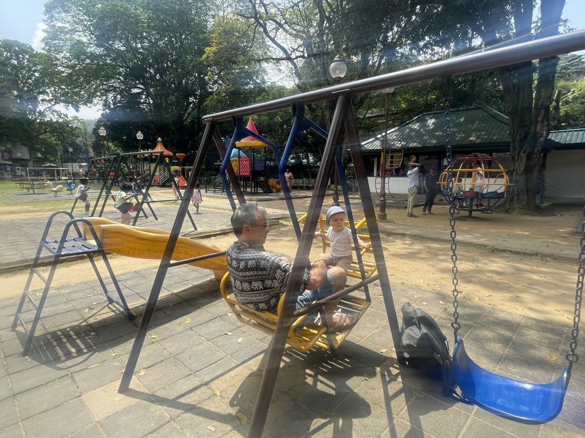 Ráno po snídani jsme dali pár tempíček v bazénu a v 11 hodin, přesný jako vždy, nás Malith vítá s dortíkem z oslavy. Místo největší atrakce ve městě, Chrámu Buddhova zubu, volíme návštěvu dětského hřiště. Houpačky a kolotoče jaké si pamatuju ze svého dětství ve mně vyvolali chvilku nostalgie. Když se Em vyblbla s novými kámoši, kde byla opět středem pozornosti, vyrazili jsme směr Nuwara Eliya. Serpentýny vinoucí se mezi čajovými plantážemi ve dvou tisících metrech k tomuto koloniálním městu jsou vyloženě pastvou pro oči. Někdy je zkrátka i cesta cíl. Ještě než se ubytujeme v tomto nejvýše položeném městečku na Srí Lance, které v 19. století založili Britové, a kterému se dodnes pro svou typickou britskou architekturu přezdívá “Malá Anglie”, ochutnáváme místní jahody, které jsou tady vyhlášené. No, příště si jahody utrhnu na české zahrádce, tady zůstanu u čaje. Ale guava, zdejší jablka, nás zaujmou o něco víc. Večer je tady typické anglické počasí, proto Malithovu nabídku odvozu, který zrovna jede do města natankovat, s díky přijímáme. Obejdeme hlavní třídu, něco nakoupíme, ale nic moc tady není, tak kotvíme, jak jinak než v anglické hospůdce. Pro zachování srílanského ducha si k fish and chips s pivem objednávám watalappam - pudding z kokosového (jak jinak) mléka, kondenzovaného mléka a směsi nejrůznějšího koření s oříšky. S plnými pupky se za mohutného deště necháváme odvézt tuktukem do postele.