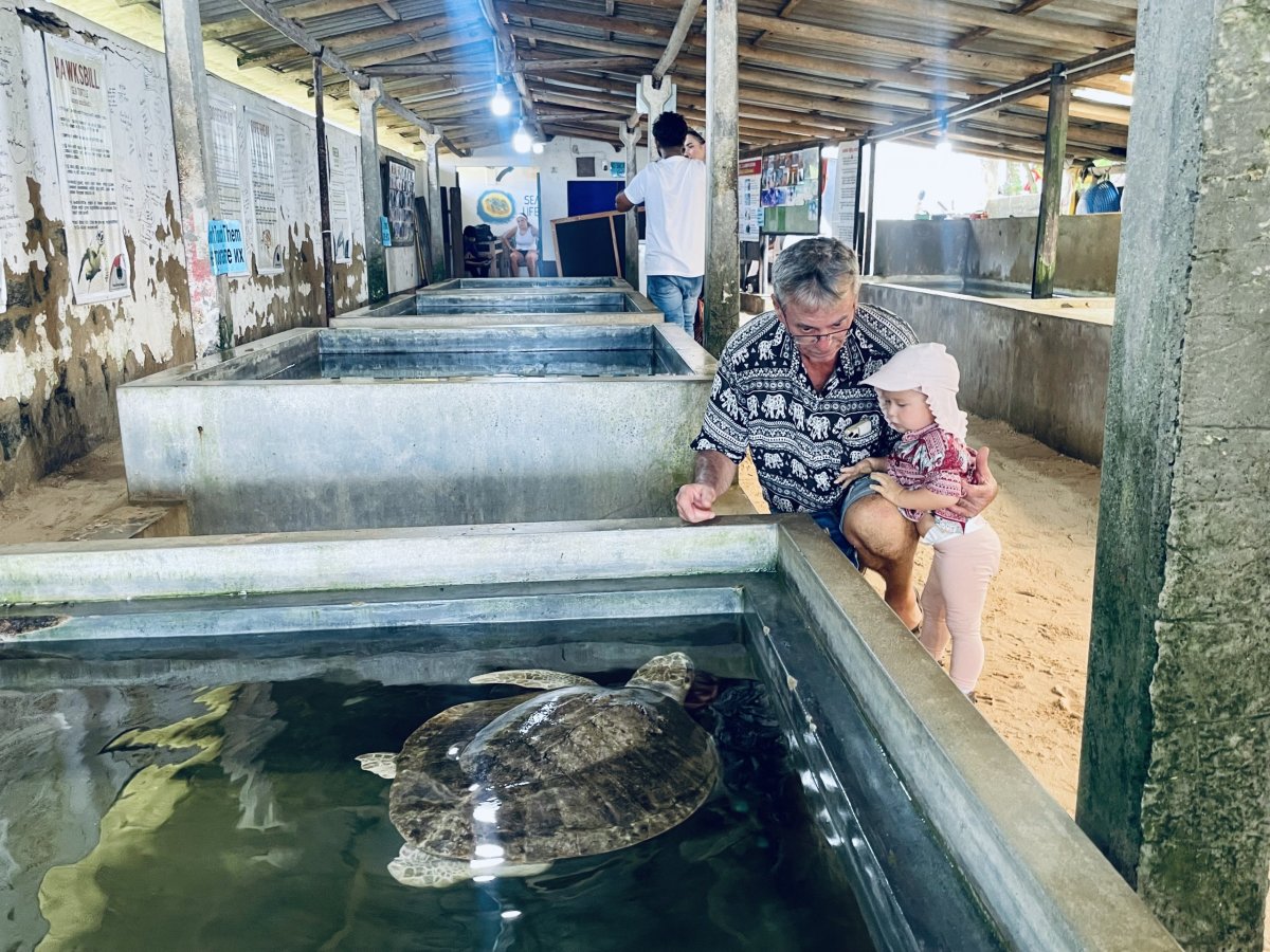 Ráno zažíváme nebe v hubě v podobě hoppersek s vejcem, s dipem, zeleninových pol rotti - placek z mouky a nastrouhaného kokosu, čerstvého tropického ovoce či šťáv. Kuchař se opravdu vytáhl. Narvaní k prasknutí sedáme do auta a jedeme k rybářům na kůlech, kteří k tomuto místu neodmyslitelně patří. Sotva parkujeme auto, chlápci ze stínu podstromu vysvlékají svá trika, vážou kolem sebe šátek, berou do rukou udice a chystají se vyskočit na kůly, které se tyčí za cedulí 12 $/osoba. To nám přijde za takové divadlo i dost, tak ani nevystupujeme a popojíždíme o kousek dál k želví líhni v Koggala. Za zlomek ceny mnohem autentičtější zážitek - nejen že ročně tady v písku, který simuluje přirozené prostředí, dají nový život až 40 000 želviček, které následně vypustí do oceánu, ale zachraňují tady ty zraněné, které někdo najde na pláži, nejčastěji po setkání s motorem člunu nebo rybářským háčkem. Vlastně taková želví nemocnice. Vidíme tady několik kousků v rekonvalescenci po amputaci končetiny vlascem čekající na protézu (opravdu), endoskopické operaci roztrženého jícnu nebo třeba želvu s poraněným krunýřem lodí, pod kterým má vzduchovou bublinu, která se opakovaně nedaří odsát, a pro kterou se nemůže potopit a tedy lovit a přežít ve volné přírodě. Strávíme tady asi hodinu, než se přesuneme do přístavního městečka Galle. Procházíme pevnost, ale je tady takové vedro, že jen koupíme pivo, na doporučení Malitha místní zázvorovou specialitu, a vracíme se zpátky k bazénu a k večeru na pláž.