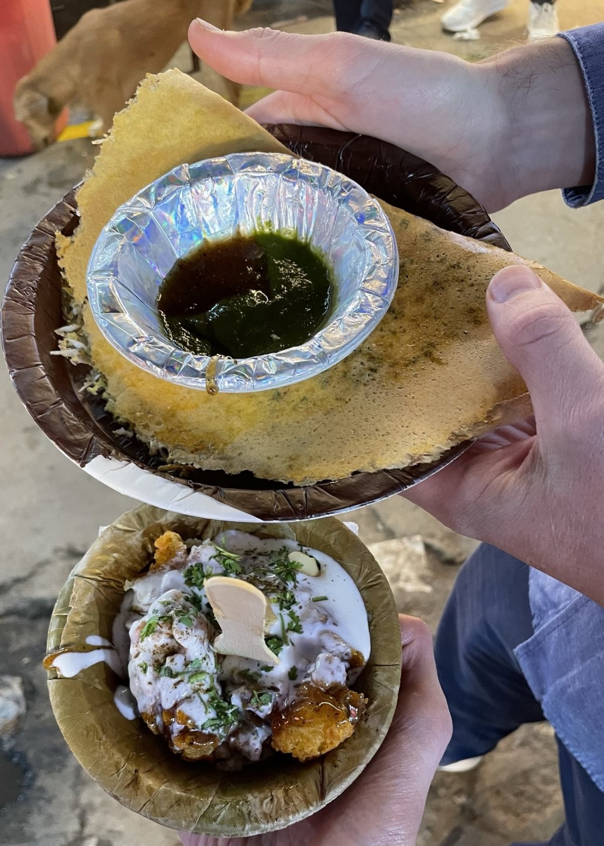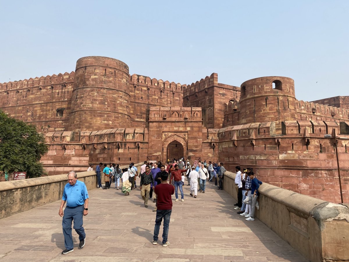 Bydlíme v hotelu The Grand Imperial. Krásná koloniální budova, která se pomalu začíná rozpadat, ale za ty peníze super volba. Je to i tak napůl cesty mezi Taj Mahalem a centrální Agrou. Večer hledáme něco k jídlu a obecně pozorujeme, že oproti jiným místům v Asii je tu na ulici méně jídelen či stánků. Naštěstí najdeme náhodou jakýsi food market se spoustou zajímavých stánků.