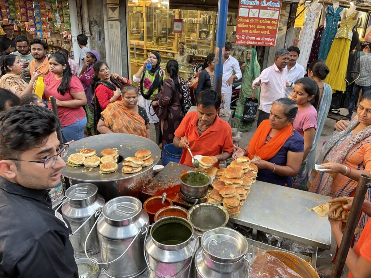 Hlavní město Gujaratu je opravdu masakr. Nocujeme v haveli (tradiční indický panský dům) ve starém městě v jedné z mála opravených budov a předělaných na hotel (Deevanji Ni Haveli). Okolo jen malé uličky nacpané k prasknutí lidmi a motorkami. Chaos, všudypřítomné exhalace, prach a tisíce obchodů a stánků se vším možným a ulice pokryté vším, co upadne na zem. To je asi ta klasická Indie. Nic upraveného, ale také žádný slum jak zná člověk z fotek. Zajímavé je, že vždy ráno jsou pak ulice prázdné a zcela čisté, než se to zase do večera všechno změní.