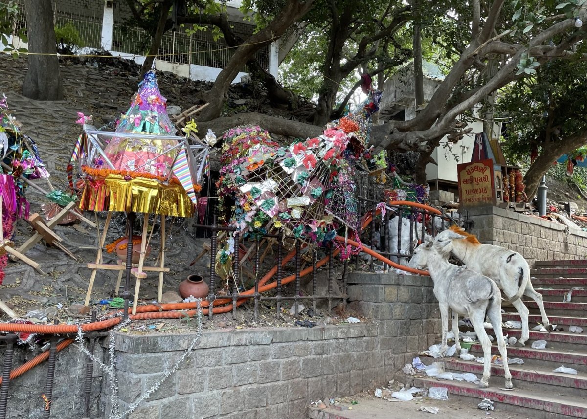 Zároveň si v Ahmadábádu i kupujeme lístky na vlak, jelikož se chceme podívat na Rani Ki Vav v Pantanu, kde strávíme noc. Chtěli jsme zvládnout i pár věcí v okolí, ale v tom případě bychom si spíš museli pronajmout na den či dva z Ahmadábádu taxíka, co by nás vozil. Protože jinak se to logisticky moc naplánovat nedá. Nám šlo ale spíš o cestu samotnou, než čistě o památky. Tudíž jsme to moc nehrotili a víc nestihli. Vlak jel jen do Mehsany a pak se muselo ještě kus busem. Nakonec se to ukázalo jako docela dobrá volba, jelikož v Rani Ki Vav byl zrovna večer indický festival, na který jsme se skočili mrknout. Akorát na cestu zpět jsme nesehnali odvoz, tak jsme museli do města dojít v noci sami skoro potmě a občas jsme měli zvláštní pocit :) Kousek vedle se nachází ještě Shahstraling Talav, kam jsme se během dne, asi jako jediní návštěvníci, zašli také podívat. Je tam několik památek a spousta opic, takže o zábavu bylo postaráno.