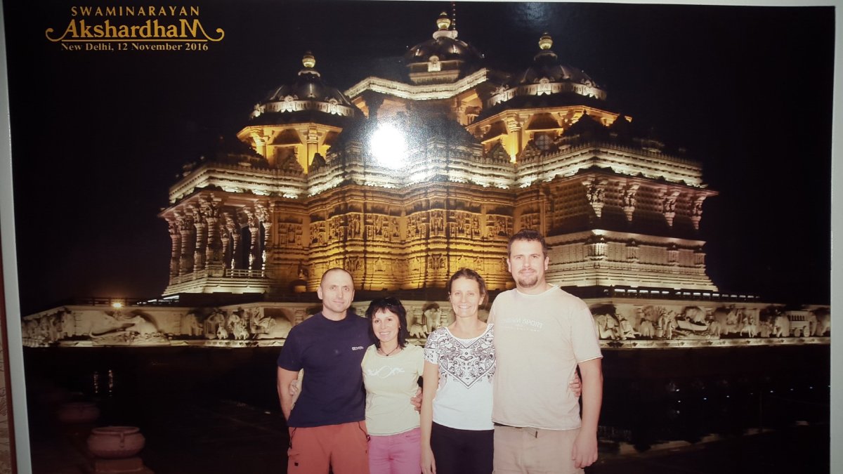 12.11.2016. Majitel guest house v Novém Dillí je sympaťák (tedy až do rána, kdy se s ním budeme hádat při placení - chtěl 2x víc než booking). Nadšeně nás vítá, hned se chce fotit, ukazuje nám náš fakt hezký a velký rodinný pokoj a zve nás na svoji střechu na "úchvatný výhled na celé Dillí" (my vidíme jen smog). Večer nás posílá do hinduistického chrámového komplexu Swaminarayan Akshardham, objednává nám tuktuk (ty další už byly levné). Chrám stavělo 10000 dělníků 5 let a zobrazuje klasickou indickou a hinduistickou kulturu a architekturu. Co nám neřekl, že u vchodu musíme nechat batůžek i všechny naše foťáky a mobilní telefony! Jsme v Indii pár hodin a už máme někomu odevzdávat to nejdražší, co s sebou na 17denní cestu máme? Chvíli se s nimi dohadujeme, ale je to marné. Cizinců je tu víc, riskneme to. Dostáváme papírový lísteček. Ve frontě do chrámu na mě Indové (hlavně Indky) vrhají nenávistné pohledy, když se unavená opřu o Lukyho. Zapomněla jsem. V Indii se nesmíme držet za ruce nebo se obejmout na veřejnosti (hrozí za to tresty). Následuje organizovaná prohlídka. Procházíme spoustou sálů, koukáme na pohyblivé figurky a zvířátka, trochu jako Disneyland. Posloucháme indickou hudbu i výklad, kterému moc nerozumíme, přestože je v angličtině. (Indové mezi sebou mluví anglicky. Angličtina je tu nezbytný dorozumívací jazyk, protože Indie má 29 států a v každém se mluví jinak.) Padá na nás únava z dlouhého letu a když se konečně blíží poslední sál a hodinový film o historii celé Indie, sedáme si do první řady, v sále se zhasíná, my zavíráme oči.. a probouzíme se až na titulky. Nakonec jdeme ven na barevnou show. Zpívající fontána, promítání na chrám, tančící a zpívající Indové v krásných barevných kostýmech. Jo, kdybych měla mobil, měla bych i fotky. Před chrámem nás chce vyfotit místní fotograf (nejlépe každého zvlášť..) a my výjimečně s jednou společnou fotkou souhlasíme, protože jinou odtud mít nebudeme.