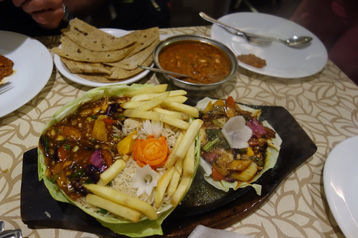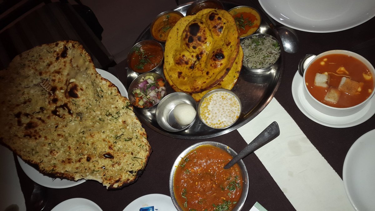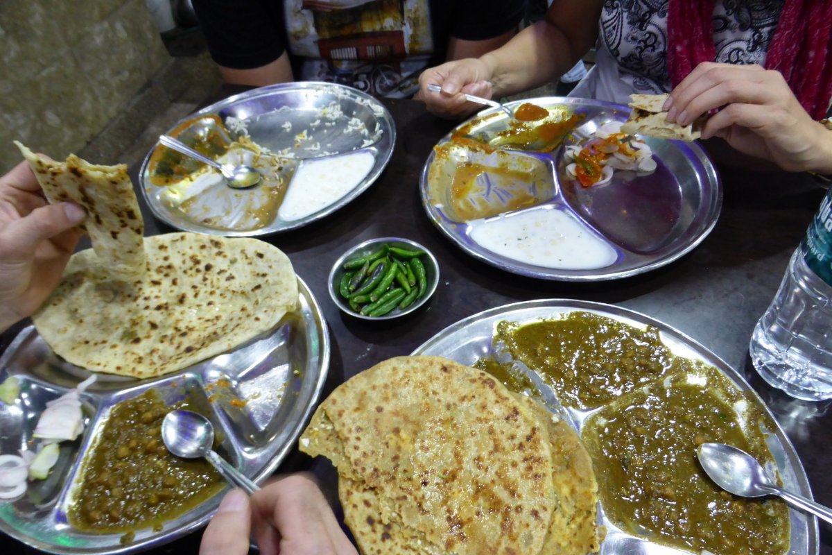 Pozor, skoro vše vegetariánské! Nejlepší indické vegetariánské thali a garlic naan jsme měli v Jaipuru. V Bombaji nám chutnala masala dosa - tenoučká srolovaná placka plněná zeleninou s pálivou studenou i teplou omáčkou. Po pár dnech jsme si dali poprvé maso a nedopadlo to dobře. A nejčastěji jsme měli různě pálivou omáčku se zeleninou (květák, brambory, mrkev), indickým kořením, čerstvým koriandrem a plackami nebo rýží a bylo to tak dobré, že nám ani nepřišlo, že nejíme maso.