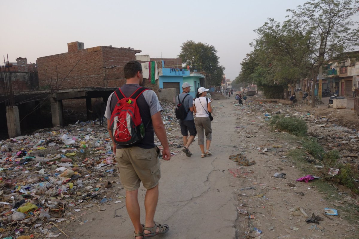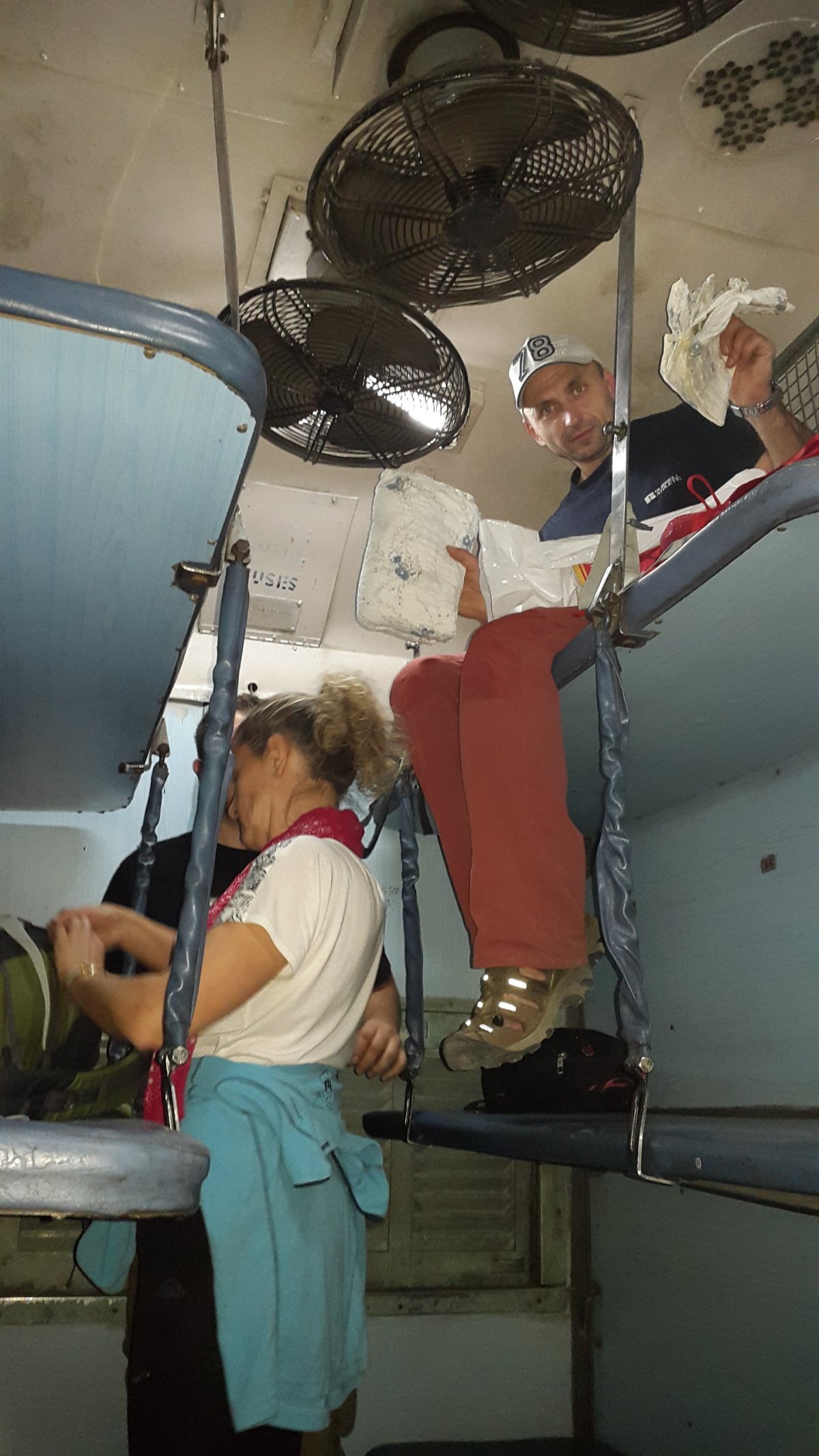 Indické vlaky jsou kapitola sama o sobě. Trochu špína, trochu smrad, trochu průvan a trochu zpoždění (včera 5 hod.). Místenky na indické vlaky máme koupené předem přes Internet, bylo to velmi levné, ale složité a zdlouhavé. Obrovské vzdálenosti přejedete za pár hodin nočním vlakem (10 hodin vyšlo na 125 Kč) a ještě ušetříte za noc v hostelu. Jezdíme v nejlevnější třídě Sleeper Class, abychom si užili pravou Indii. Co nás mile překvapilo, že jsme na vagónu v Novém Dillí našli na seznamu cestujících naše jména :) Ve vlaku musíte být otrlí a je lepší si koupit 2. a 3. patro - tam za vámi nikdo nevyleze, je tam klid a dobře se tam spí. Dole je to špatné. Zážitků z vlaků máme asi nejvíc. Nejdřív jsme si z nefunkčních větráků udělali botník a boty pěkně přivázali. Kdyby nám v noci ukradli boty, jsme v háji! Spíme ve vlastním povlečení z Česka, které nakonec vyhodíme, ale spíš si myslím, že jej dodnes v Indii někdo používá. Bágly jsme na noc zamykali na zámečky ke konstrukci vlaku. Jednou jsem chtěla otřít vlhkým ubrouskem nějakou nechutnou špínu na horním lehátku. Ubrousek okamžitě zčernal a já zjistila, že barva potahů není šedočerná, ale tmavě zelená :) Sedadla nikdy nikdo nemyl. Pamatuji si, jak jsem ve vlaku několik hodin odkládala návštěvu záchodu a nakonec tak hrozný nebyl. Nebo že na mě celých 10 hodin zíral Ind z lehátka naproti. Díval se, jak sedím, jak otevírám svačinu, jak jím, jak dávám obaly do pytlíku, jak si stelu (poprvé bylo naše povlečení z domu voňavé a čisté a pak už jen čím dál horší), jak usínám, ASI jak spím, jak se probouzím. A jednou jsme měli koupené místenky až do města, kam náš vlak vůbec nejel, byla tu už týden výluka, tak jsme museli zbývajících asi 25 km dojet (jedním) tuktukem průmyslovým předměstím (nekonečná a smradlavá jízda!). Kolem kolejí (celé naší trasy a úplně všech tras v Indii) je neuvěřitelný, několikametrový bordel! Indové vyhazují automaticky vše z oken, stejně jako my to automaticky dáváme do pytlíku (plasty, krabičky, obaly, kelímky), který pak ale dlouho nosíme s sebou, většinou až do hostelu, protože v Indii nemají odpadkové koše ani popelnice.