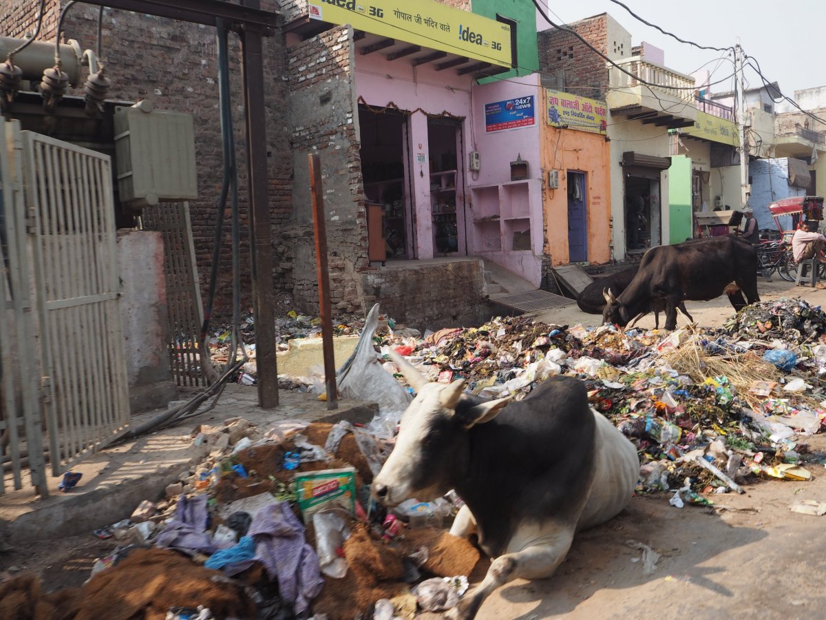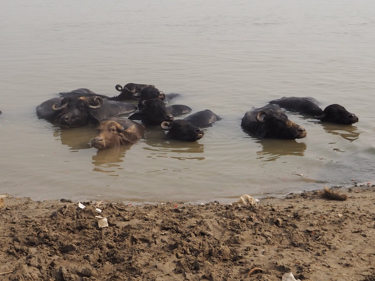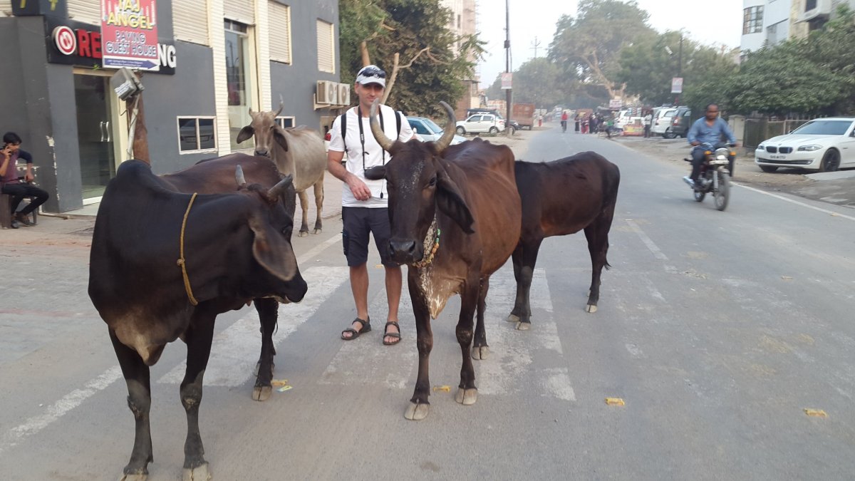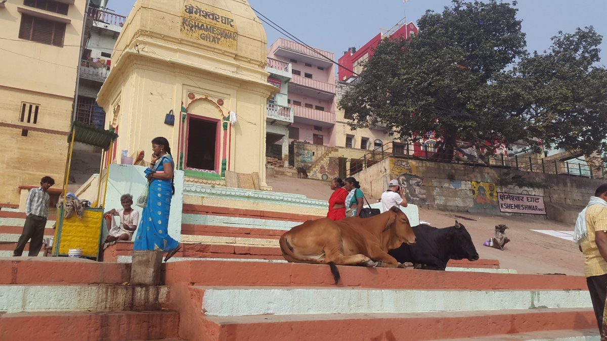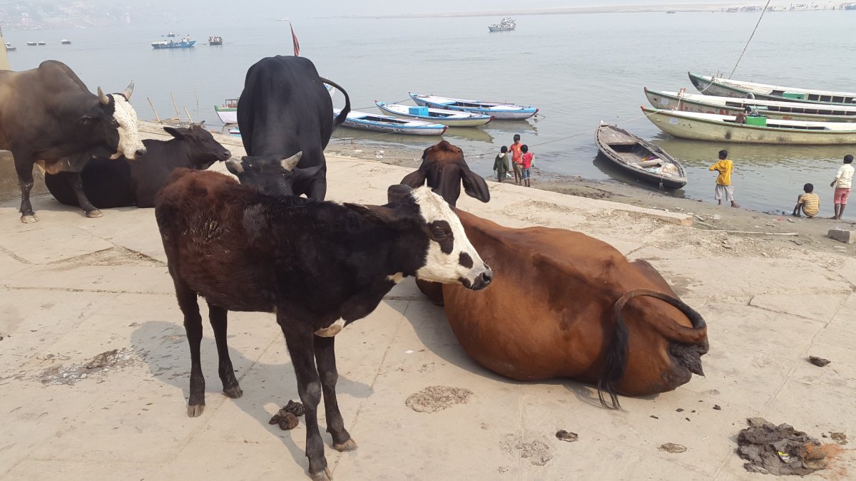 Krávy jsou všude a nikomu nevadí. Pomalu kráčí po rušné silnici nebo si lehnou doprostřed křižovatky a zablokují dopravu. Válí se před chrámy, na plážích i v řece Ganze. Jako by věděly, že jsou posvátné. Dříve byl v Indii za zabití krávy trest smrti! Dnes je pro mnoho Indů kravský trus často jediný zdroj obživy. Kravince ženy po celé Indii (viděli jsme i z vlaků) ručně plácají v úhledná kola, suší je a pak prodávají. Na topení a vaření.