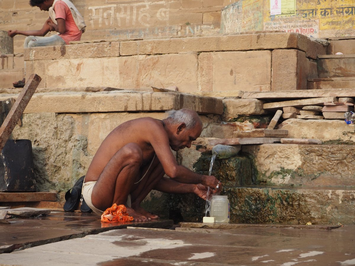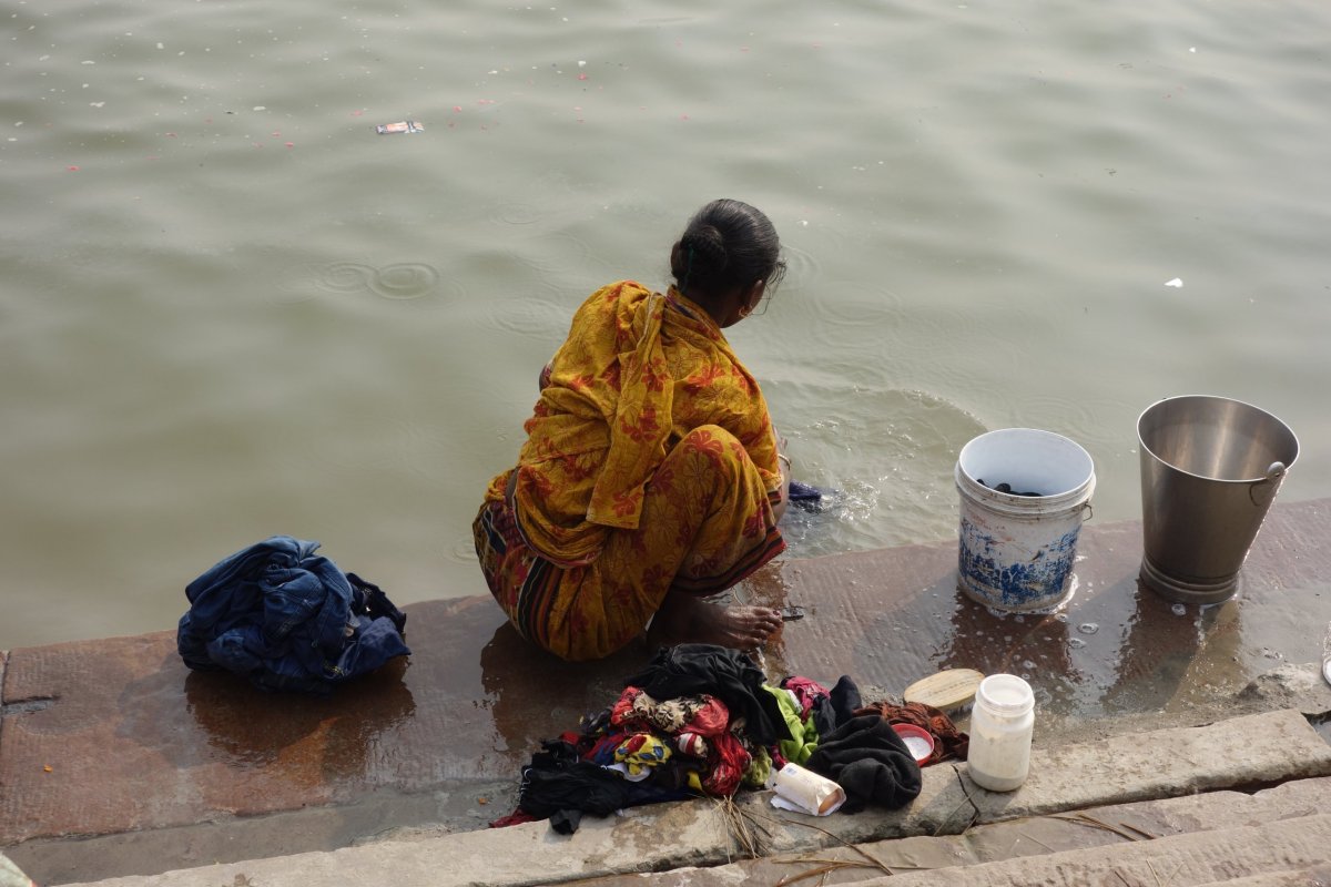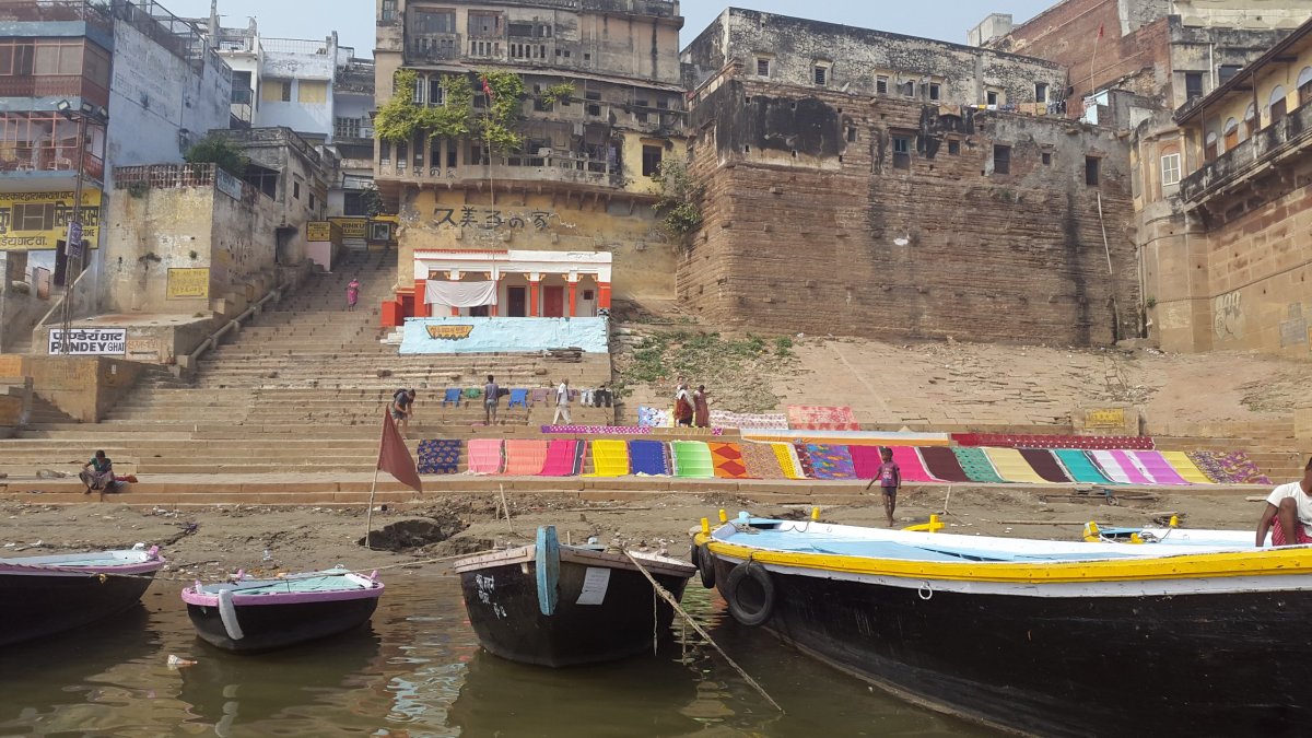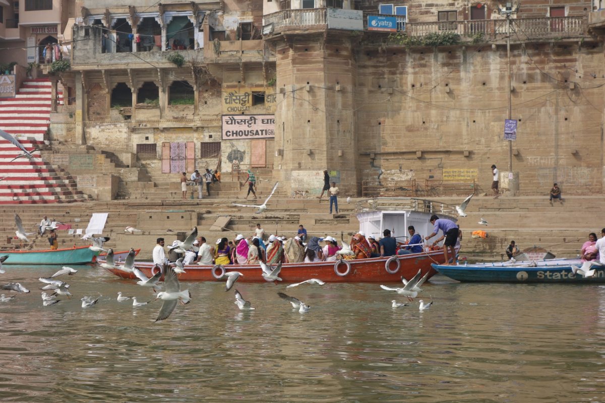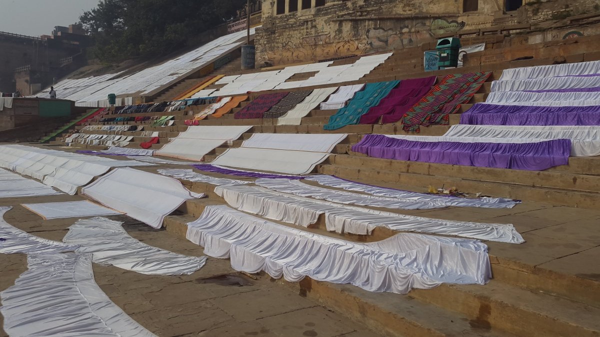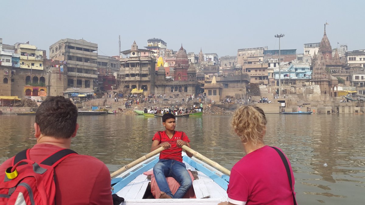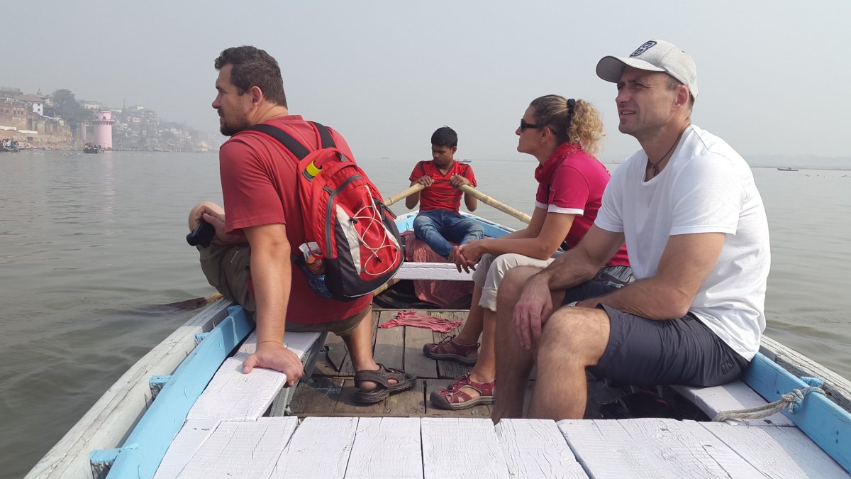 Bydlíme přímo nad schody jednoho (ne spalovacího) ghátu. Pochvalujeme si čisté povlečení, ani nevyndáváme to naše (první chyba). Ráno dostaneme snídani až na pokoj (= na postel), i dobrý čaj, vše sníme a vypijeme (druhá chyba). O deset minut později na procházce po ghátech vidíme, že veškeré povlečení (i uniformy a ubrusy z lepších hotelů!) perou v té své posvátné, špinavé a nemocemi prolezlé Ganze a že z ní používají i vodu na čaj! Indie je matoucí. Co se tu zdá být čisté, čisté není a naopak. Z jídla, co vypadá jako pochoutka, je nám druhý den zle a když si (umírající hlady) dáme něco, co vypadá nechutně (naše noční omeleta z vajec, co byla několik dní na slunci, smažená na špinavé pánvi otřené hadrem ze země), nic nám není.