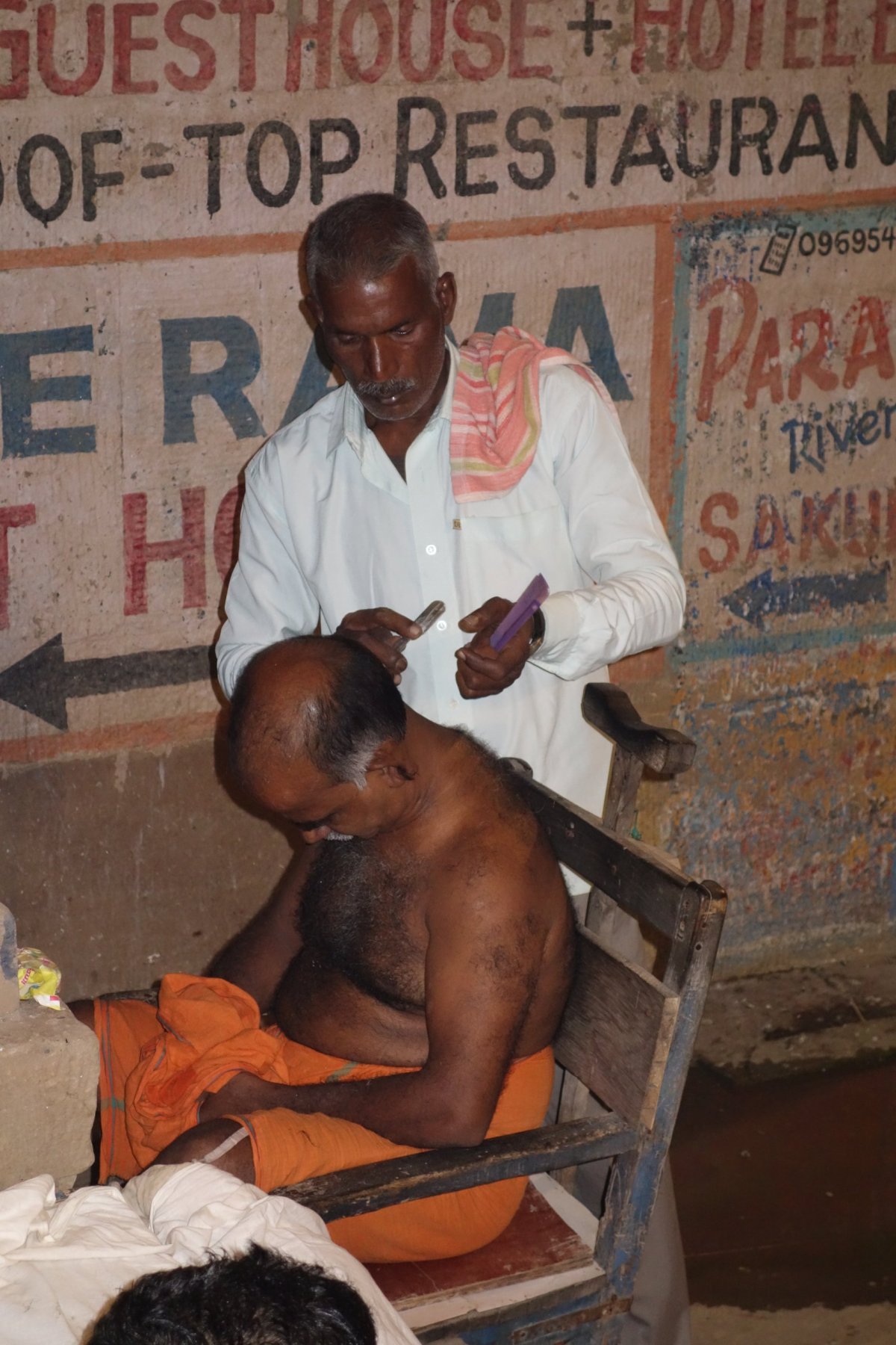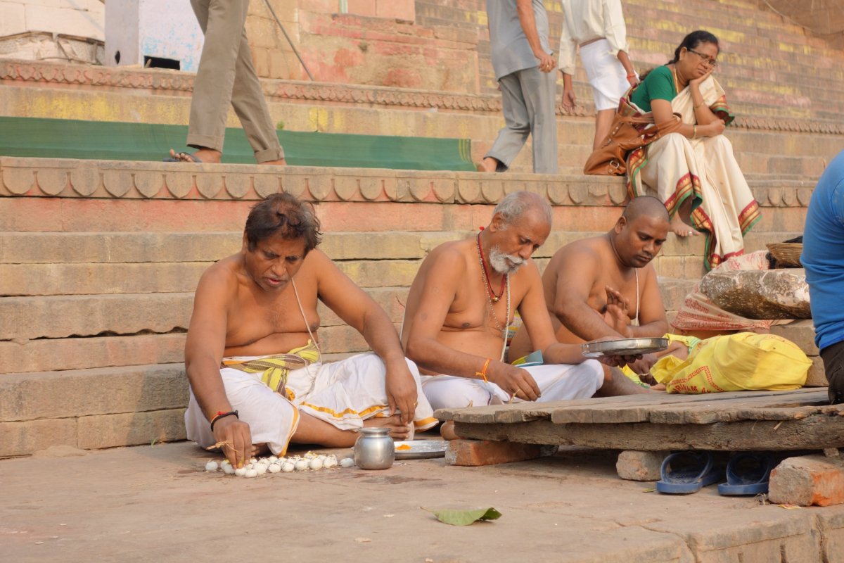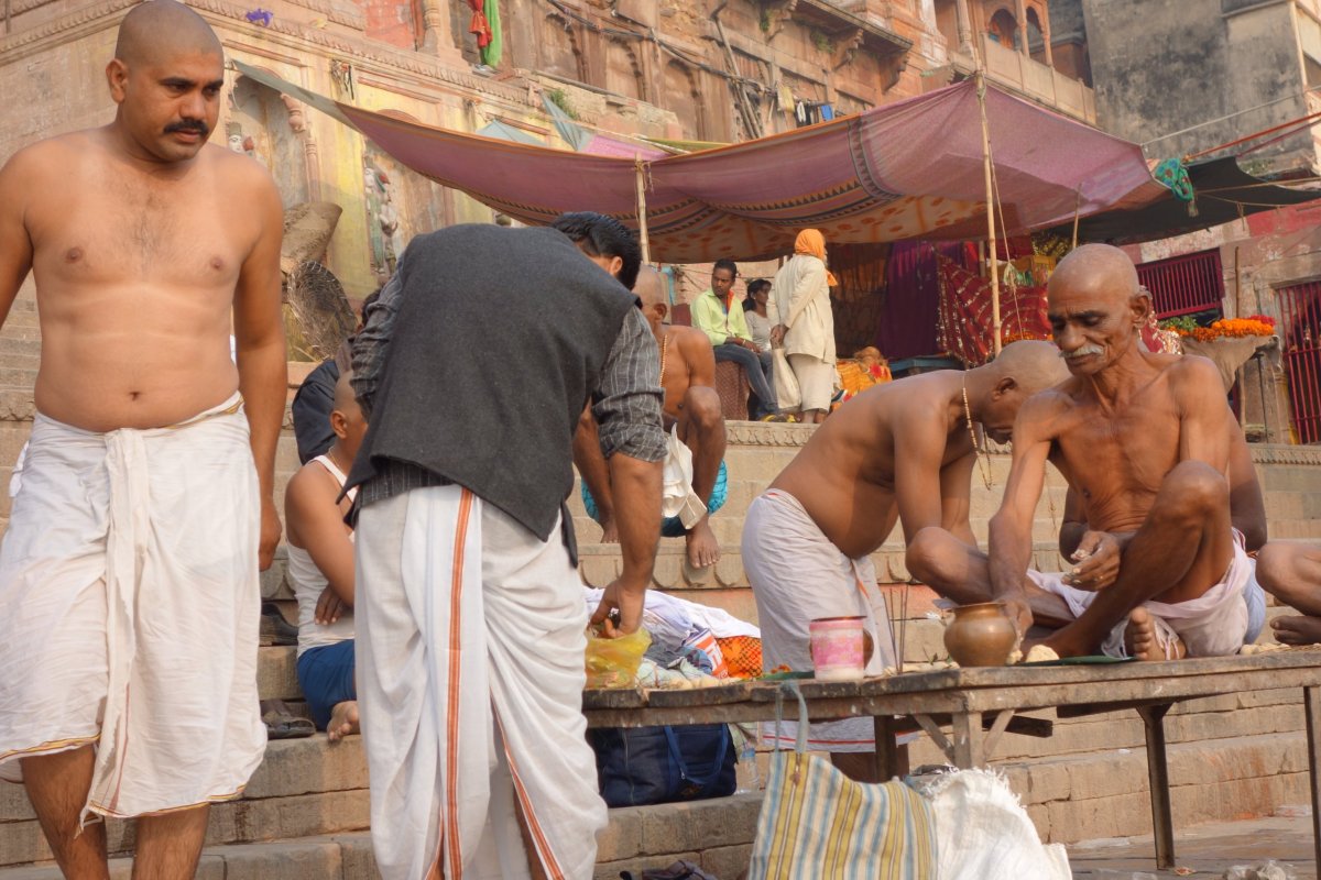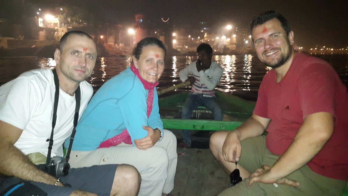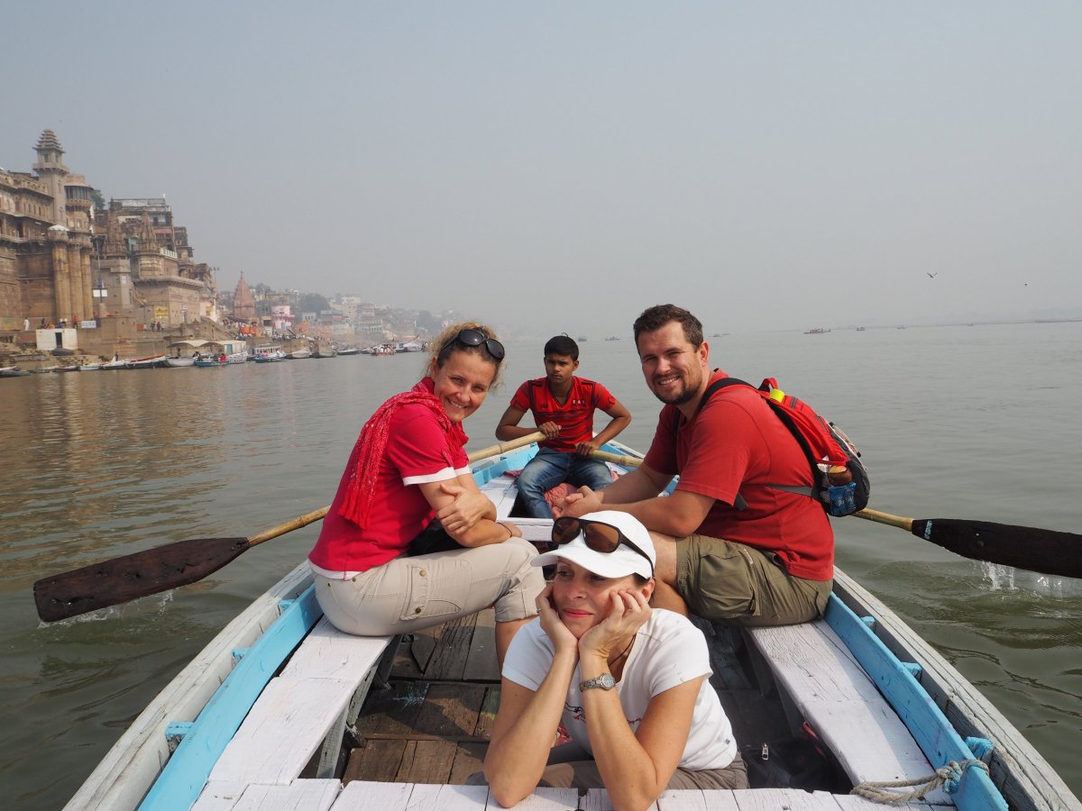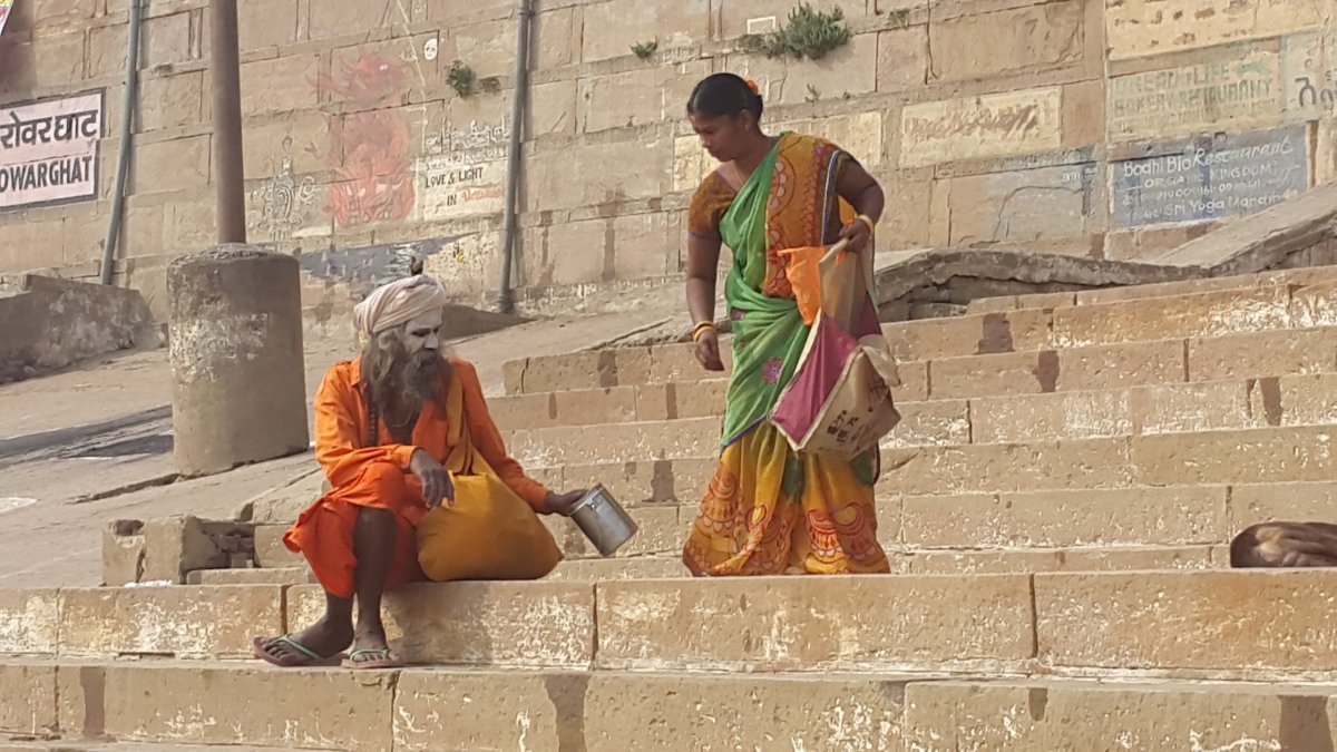 Bydlíme přímo nad schody jednoho (ne spalovacího) ghátu. Pochvalujeme si čisté povlečení, ani nevyndáváme to naše (první chyba). Ráno dostaneme snídani až na pokoj (= na postel), i dobrý čaj, vše sníme a vypijeme (druhá chyba). O deset minut později na procházce po ghátech vidíme, že veškeré povlečení (i uniformy a ubrusy z lepších hotelů!) perou v té své posvátné, špinavé a nemocemi prolezlé Ganze a že z ní používají i vodu na čaj! Indie je matoucí. Co se tu zdá být čisté, čisté není a naopak. Z jídla, co vypadá jako pochoutka, je nám druhý den zle a když si (umírající hlady) dáme něco, co vypadá nechutně (naše noční omeleta z vajec, co byla několik dní na slunci, smažená na špinavé pánvi otřené hadrem ze země), nic nám není.