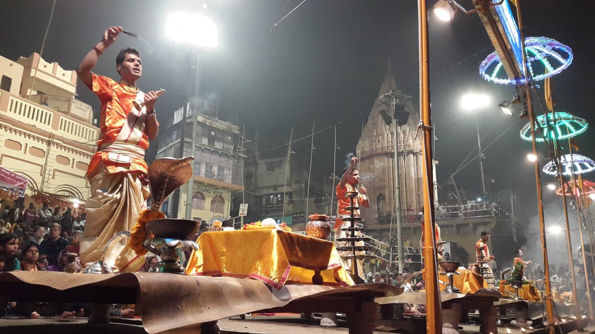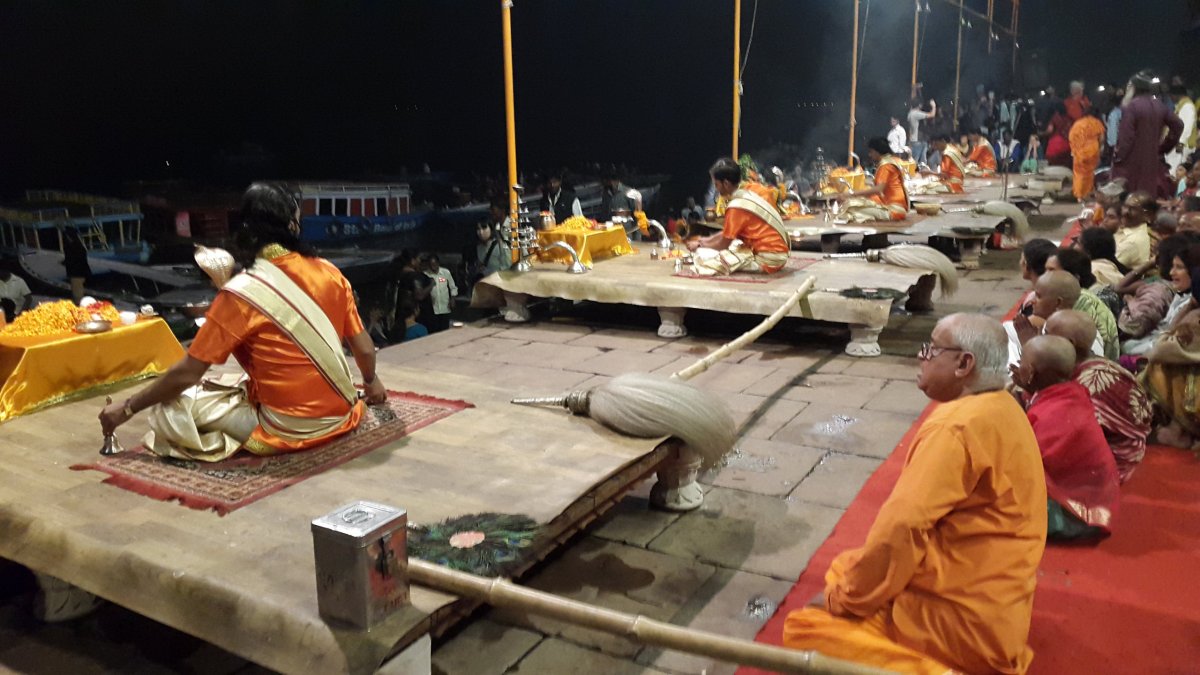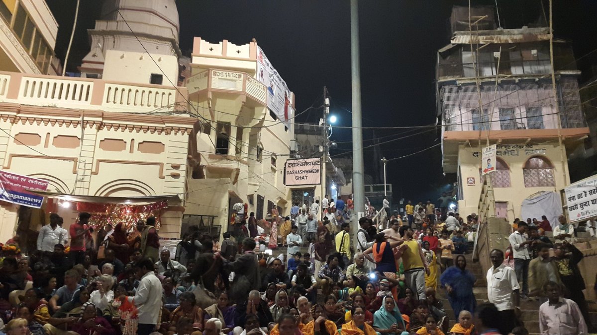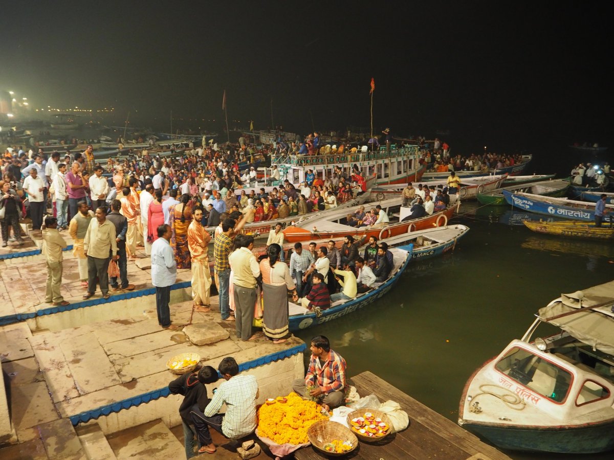 Večer všude probíhají obřady a rituály, hraje hudba, všude je tolik lidí a lodí a světel a svíček. Každý večer probíhá u řeky hinduistický ceremoniál k uctívání Velké Matky. Tisíce Indů obřad pozorují z pevniny i z lodí.