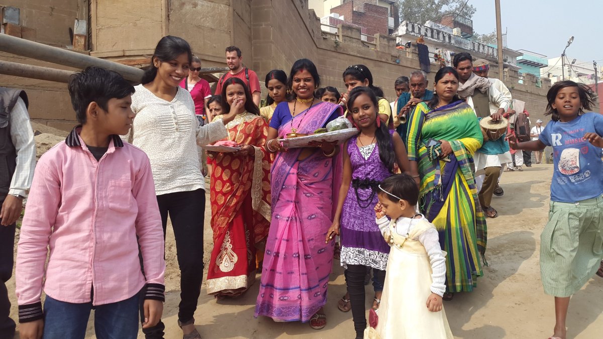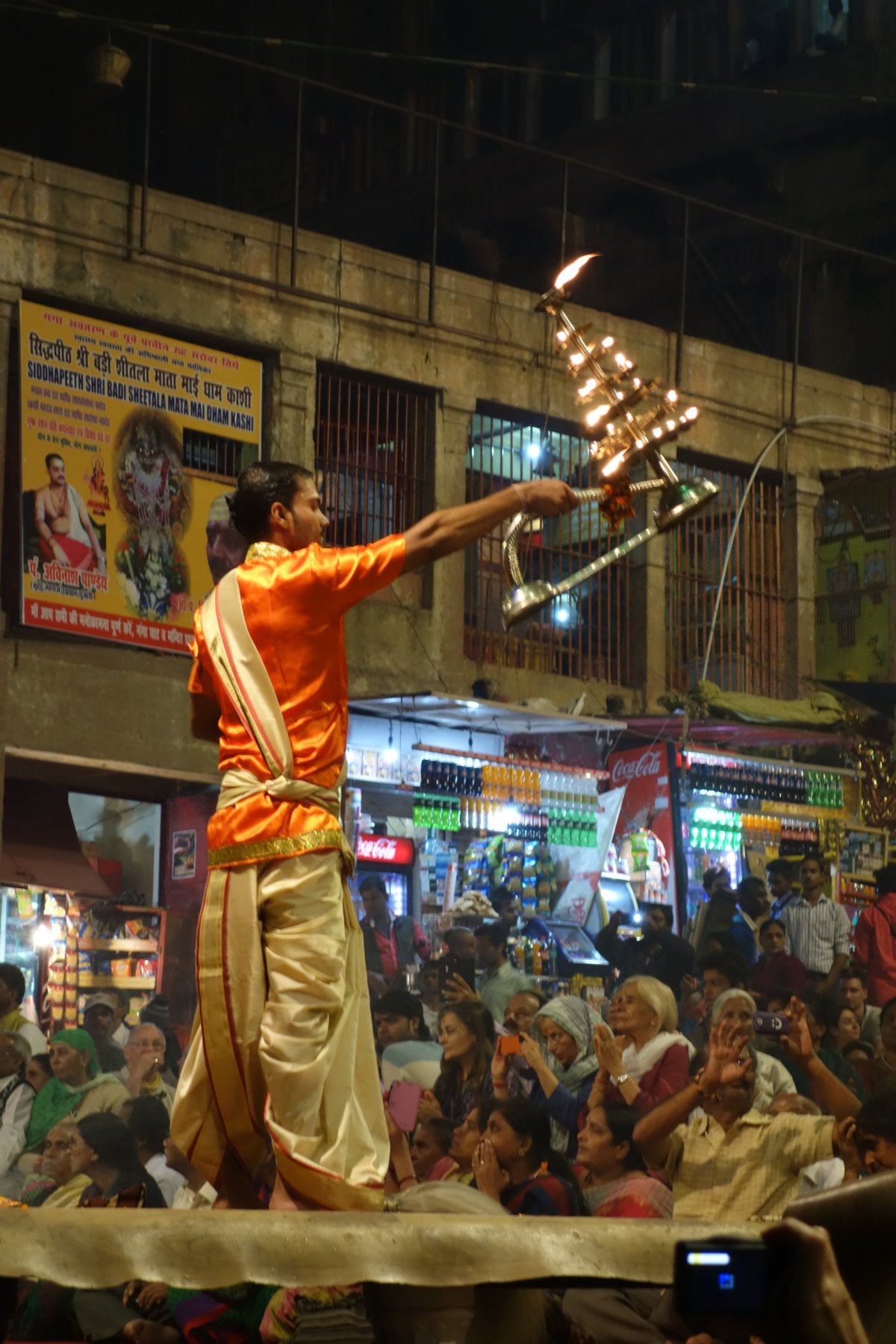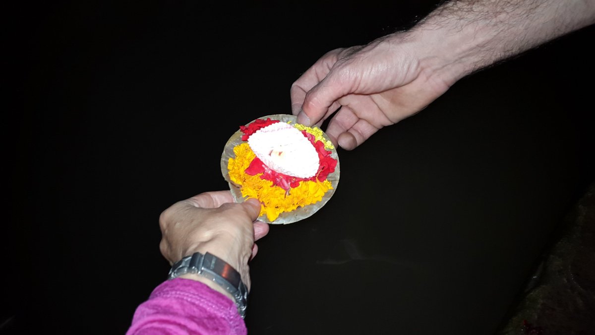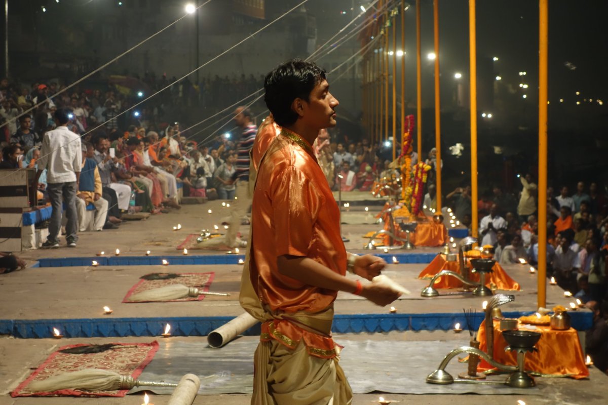Večer všude probíhají obřady a rituály, hraje hudba, všude je tolik lidí a lodí a světel a svíček. Každý večer probíhá u řeky hinduistický ceremoniál k uctívání Velké Matky. Tisíce Indů obřad pozorují z pevniny i z lodí.