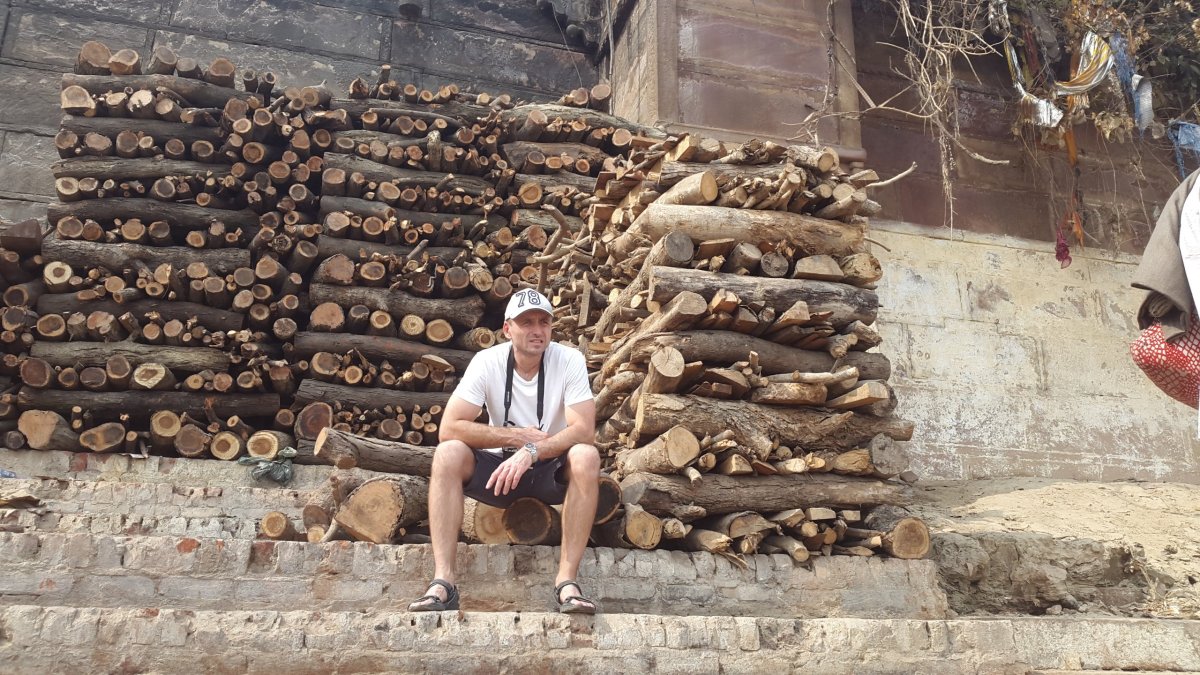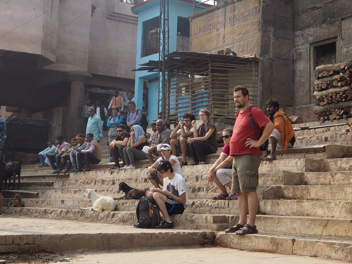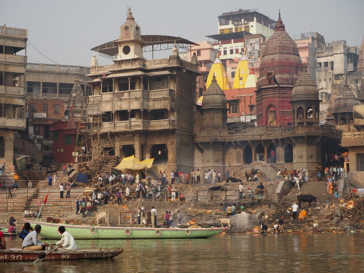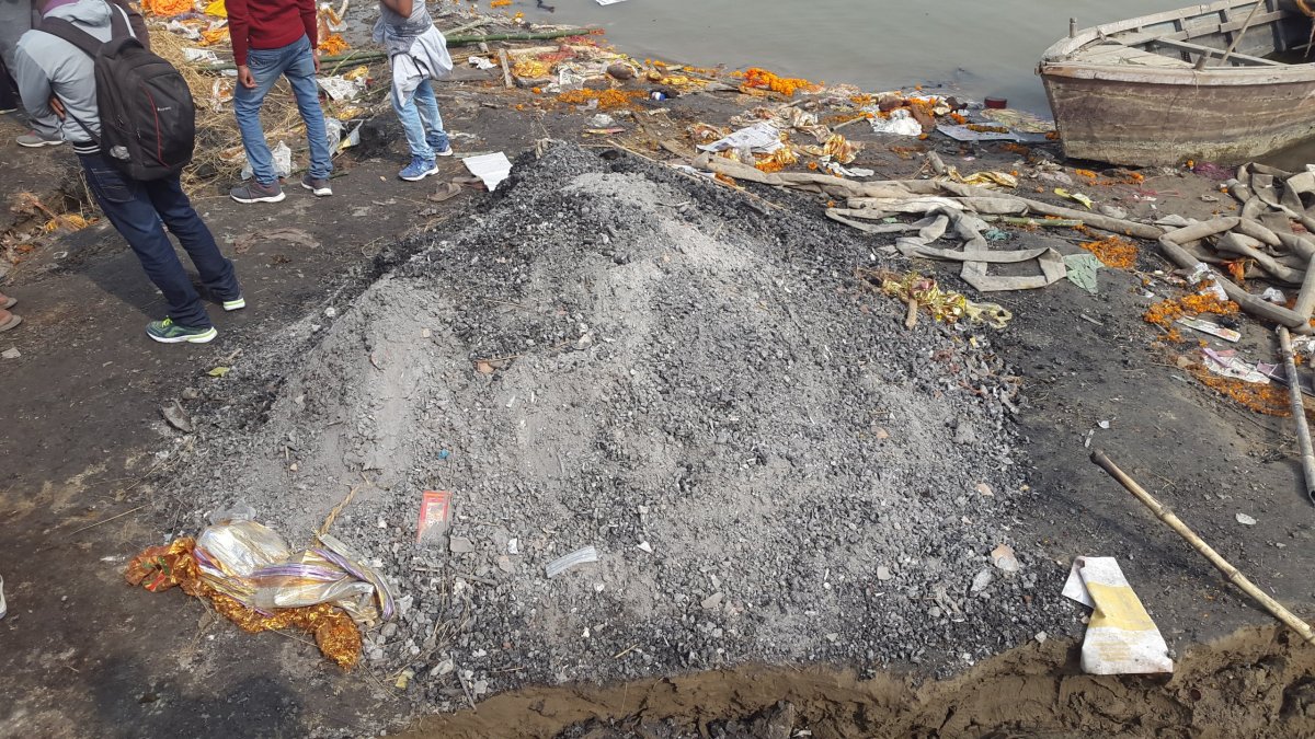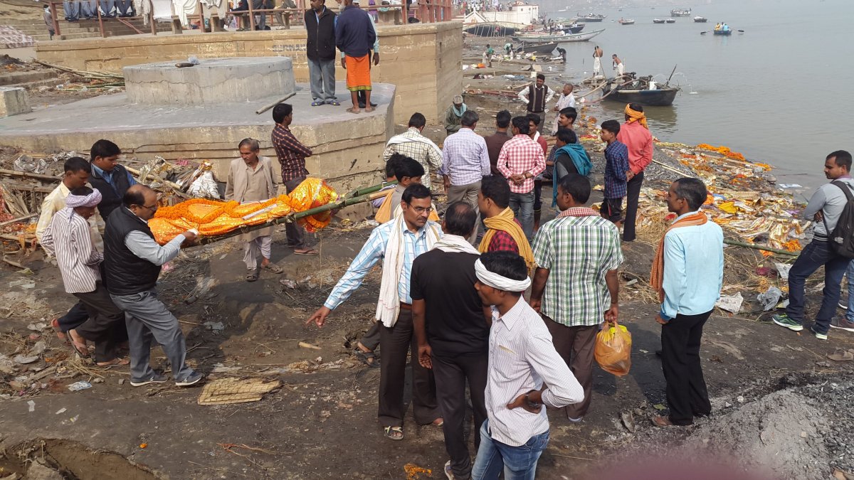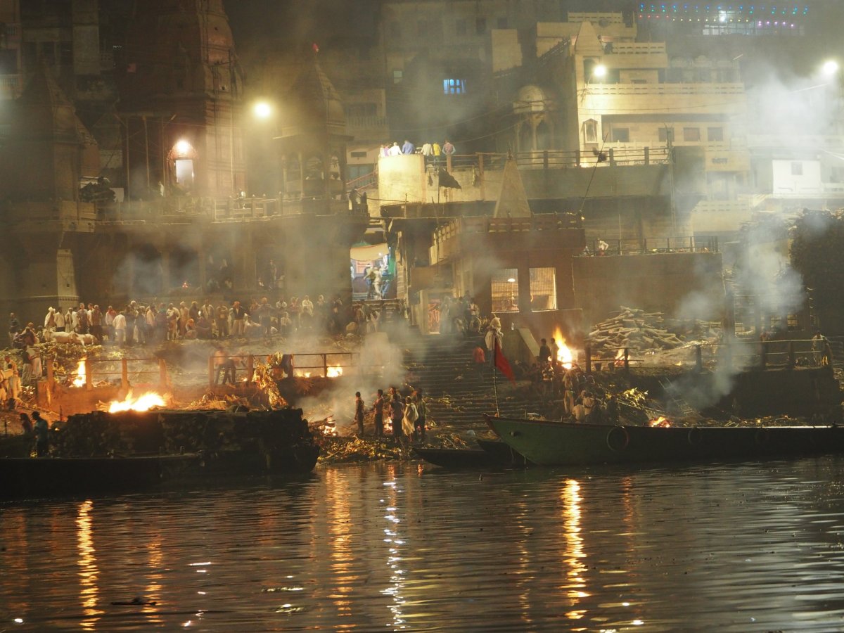 Na lodi míjíme mrtvou krávu a psy ve vodě (malé děti, těhotné ženy a zvířata nesmí být dle hinduistické víry spáleny, po smrti se celá vhazují do Gangy) a pomalu se blížíme ke spalovacímu ghátu Manikarnika. Už zdálky vypadá úplně jinak než v Nepálu. Několik hořících hranic, jedna přechází v druhou, všude kolem zbytky dřeva, kostí, popela, oranžových látek, mezi tím procházejí krávy a psi, s úklidem čehokoliv si tu nikdo hlavu neláme. Na tohle Indové šetří celý život a jen hrstce z nich se splní přání zemřít a být spálen právě zde. Dřevo i hotely pro umírající jsou neskutečně drahé. 1 kg dřeva stojí 900 rupií a ke spálení těla je třeba až 300 kg. Tělo v oranžovém rouchu před spálením omyjí v posvátné Ganze, na hranici už ale tělo nikdo neobchází, modlitby neříká, musí se rychle, na schodech už "čeká" další mrtvý. Popel po spálení těla do Gangy obřadně nesypou, jen ho přihodí na velikou hromadu a čekají na velkou vodu, která ji spláchne do řeky.