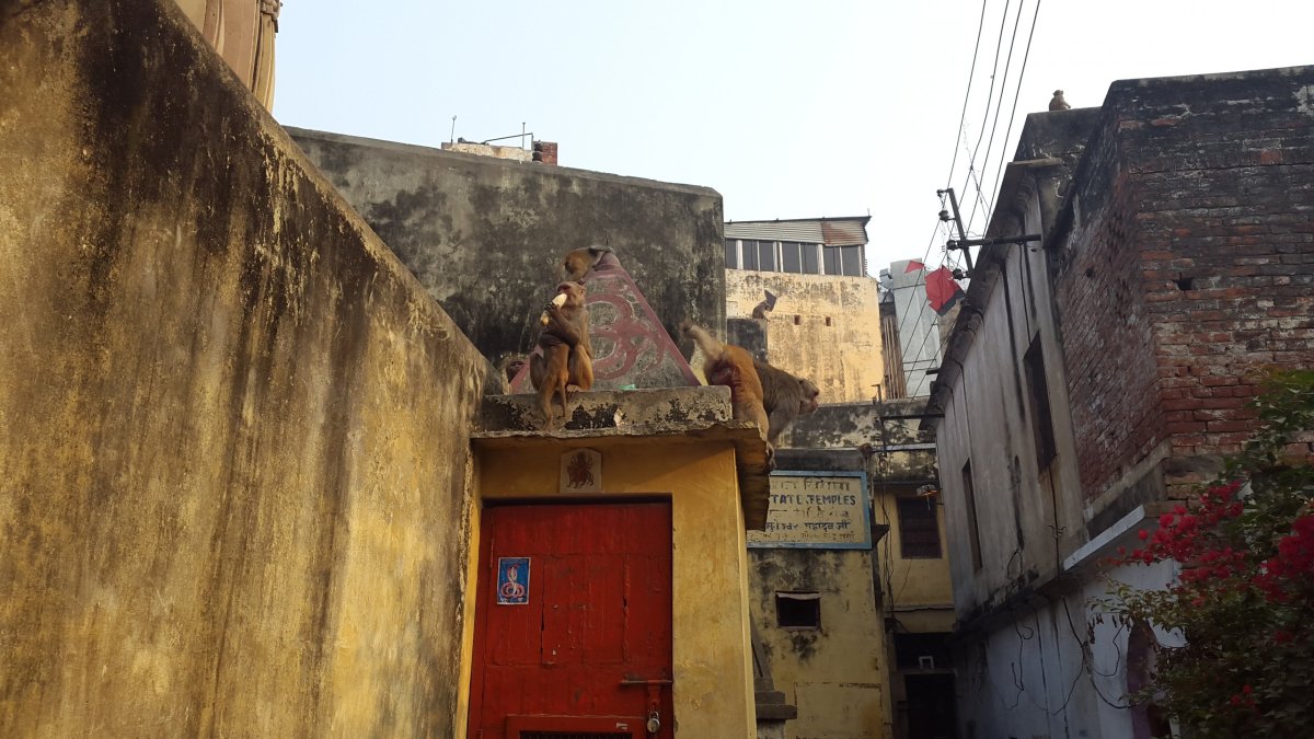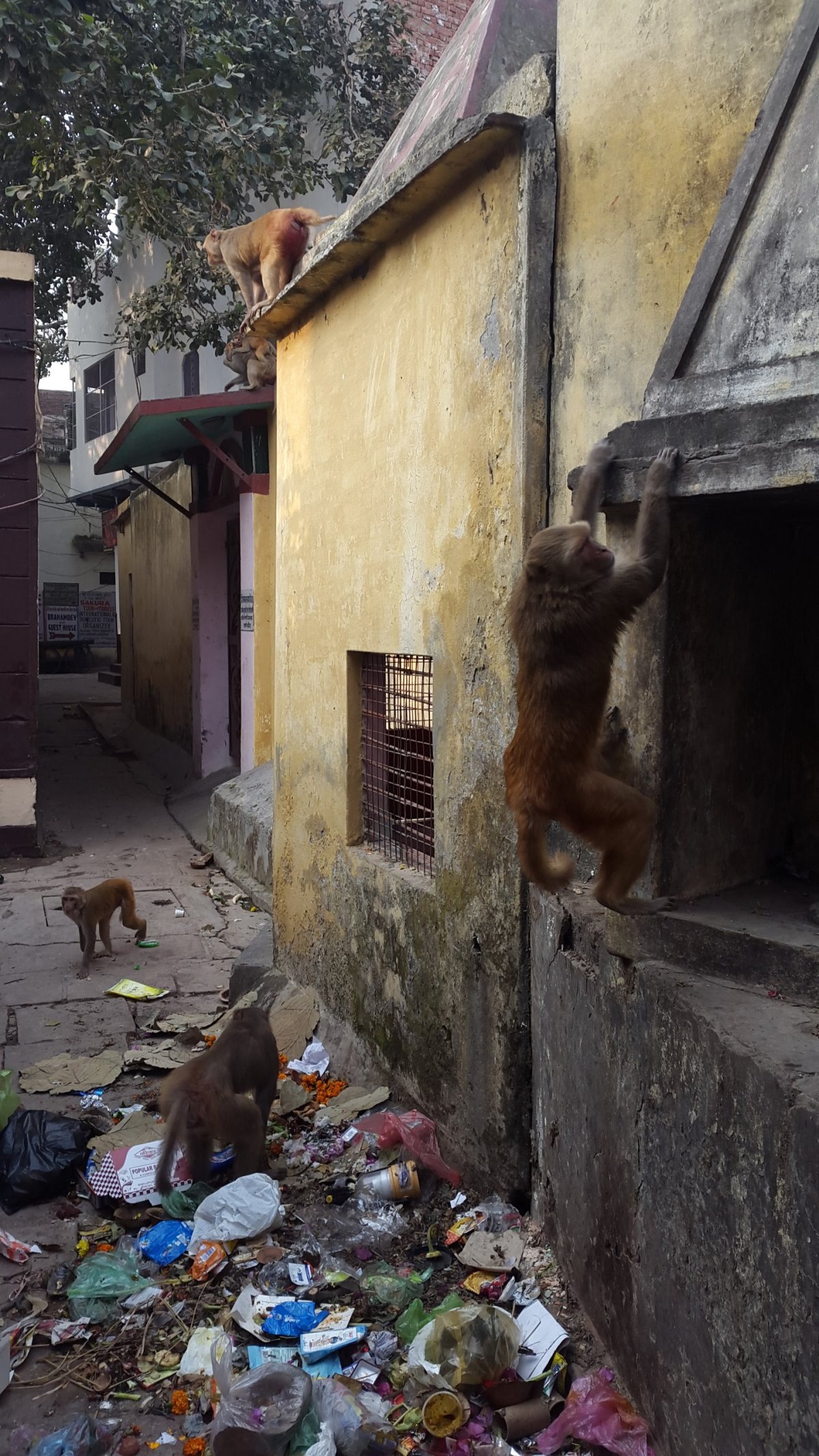 Někdy si říkám, že je dobře, že jsme čtyři a hlavně, že s sebou máme Roberta. Je 2x větší a 3x těžší než průměrný Ind. Cesta do našeho ubytování (bydlíme přímo na jednom z ghátů) je strašidelná ve dne i v noci. Nejdřív jdeme od řeky Gangy ghátem po schodech až nahoru, tou levou dírou do tmavého tunelu, míjíme spící Indy, projdeme kolem hromady smradlavých odpadků a spousty agresivních opic (kterých se bojí i Robert!) a jsme doma :) Náš hotýlek má příznačný název "Paradise" a opice máme i uvnitř. Na bookingu už není, ale je tu spousta podobných za 150 Kč/noc.