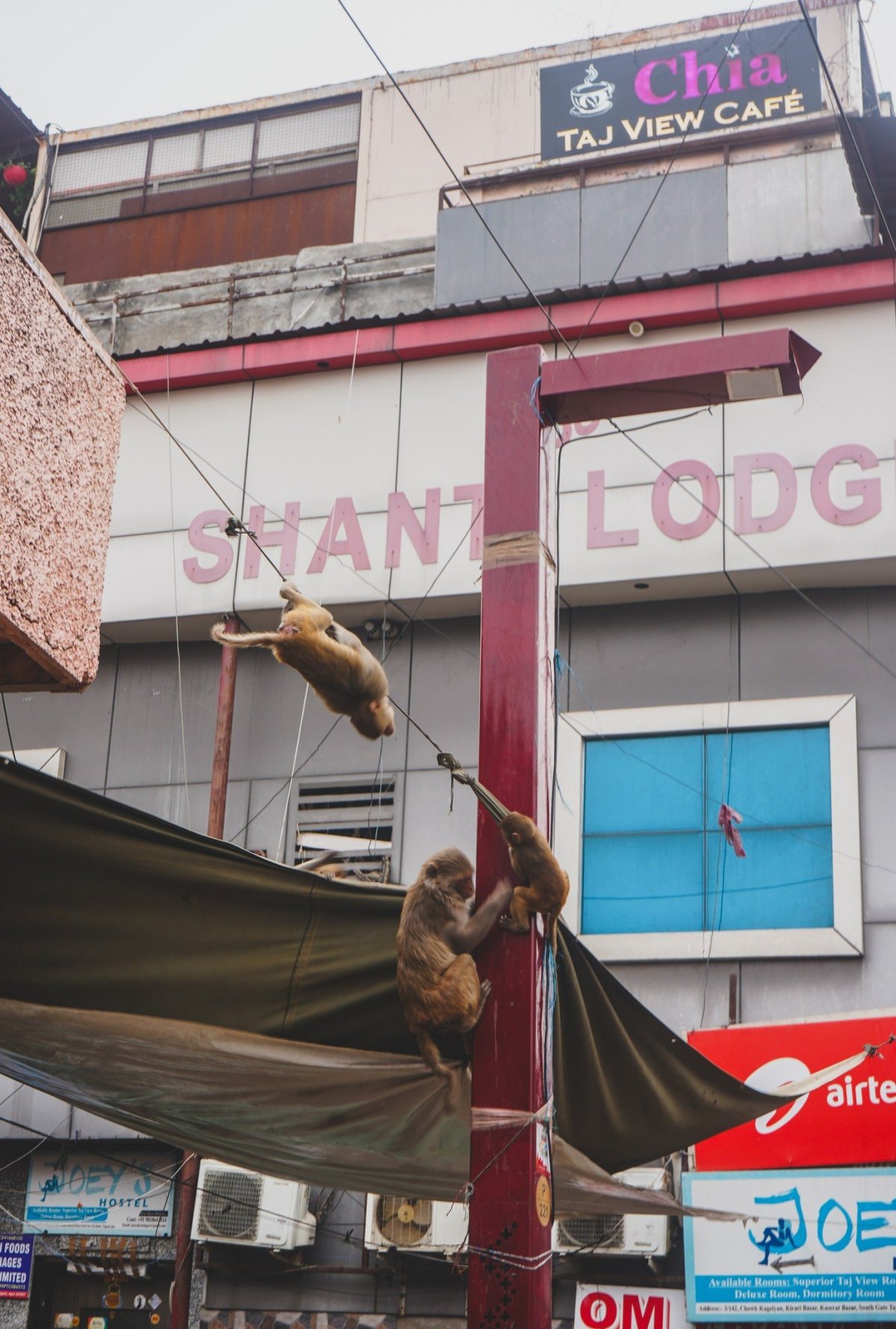 Jako vstupní bránu do Indie jsme zvolili město Agra. Přesně toto místo navštěvuje v rámci Indie nejvíce turistů. Ano, je to kvůli Tádž Mahalu. Do města jsme se přesouvali z Džajpuru nočním vlakem. Přímý let z Thajska tenkrát bohužel do Agry neletěl. Nádraží bylo děsivé. Hromady lidí, kteří na sobě spali pod dekami v odpadcích, s sebou měli velké nákupní tašky plné harampádí a na nástupišti několik podivínů vykřikovalo nabídku horkého a pořádně kořeněného čaje. V noci tu totiž byla šílená zima a jiná možnost zahřátí nebyla. My koupili čaj a navlékli jsme na sebe všechno oblečení, které jsme měli v batohu. Naštěstí jsme se zimou počítali a pár teplých svetrů se teď hodilo. Po nějaké době přijel vlak, lístky jsme měli na horní palandy. Přestože už to byla druhá noc beze spánku a byli jsme šíleně vyčerpaní, nespali jsme. Ve vlaku byl hrozný mumraj a po celém vagonu se rozléhal hrozivý kašel. Čtyři hodiny vlakem se tu zdáli jako nekonečné, přesto jsme se dočkali. Vlak zastavil a my vystoupili v ponurém městě, které bylo zahalené do mlhy. Tedy alespoň jsme si to nejprve mysleli. Ve skutečnosti to byl smog, ten nás doprovázel úplně na každém kroku. Slunce jsme za celých čtrnáct dní viděli pouhé dvě hodiny. Kromě smogu jsme stále měli na očích pohublé krávy, které ve městě spásaly odpadky. U monumentálního Tádž Mahalu bylo vše jinak. O toto místo indové pečují, dokonce si jako návštěvník musíte vzít návleky na boty, aby jste jim tu nádheru neošoupali. Za nás je toto místo trochu přeceňované, přesto však pěkné. V Agře jsme prošli ještě několik míst, dali jsme si první opravdové indické jídlo a přesunuli se na vlakové nádraží, odkud jsme měli pokračovat dál.