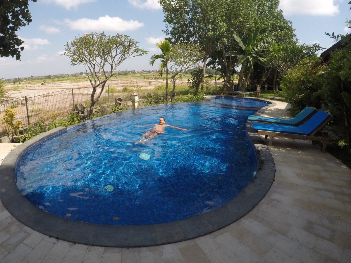 Ráno odjíždí část naší výpravy na letiště a odlétají domů. My zatím snídáme a koupeme se v bazénu. Sbaleno už máme, takže se loučíme s majiteli tohoto úžasného ubytování a nasedáme na náš skútr. Přesouváme se totiž do dalšího ubytování blízko Ubudu a to Dhiari Guest House. Ubytování je opět krásné, je kousek vzdálené od Ubudu, za což jsme ale rádi, jelikož nemusíme zrovna místa plná turistů. Vybalujeme a koupeme se opět v bazénu.