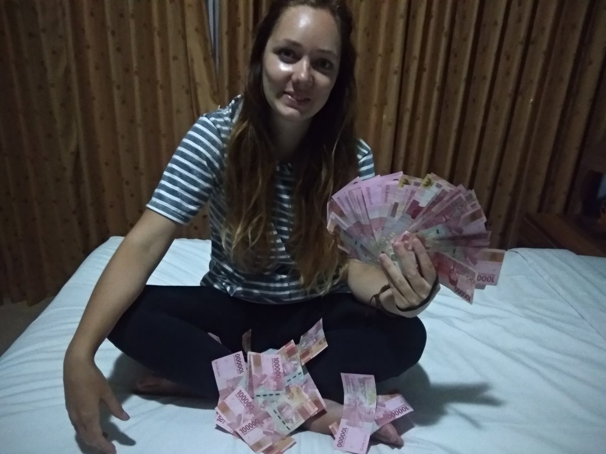 V Indonésii se platí indonéskou rupií, 1000IDR = 1.6740 Kč. Při přepočtu platí jednoduchá pomůcka, odečíst tři nuly a vynásobit dvěma. Sebou jsme si vzali dolary, které jsme měnili na místě. Z bankomatu jsme vybírali pouze jednou a to na letišti, abychom měli na zaplacení taxíku.