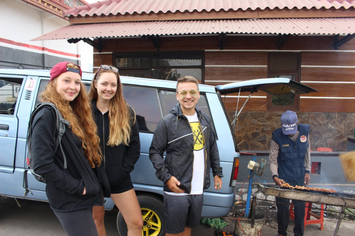 Ráno vstáváme v 6:00 a začínáme mít pocit, že už se snad nikdy pořádně nevyspíme, a to jsme na dovolené :D. Se stejným řidičem, co nás vezl do a z Cemoro Lawang jsme si domluvili odvoz na vodopády Tumpak Sewu. Za velké auto pro 6 lidí si řidič říká 900 000IDR/os., auto by se dalo sehnat i o něco levněji, ale nakonec se k nám připojuje Rakušanka a její kamarádka z Kanady, tudíž už nic neřešíme a nic levnějšího nehledáme.