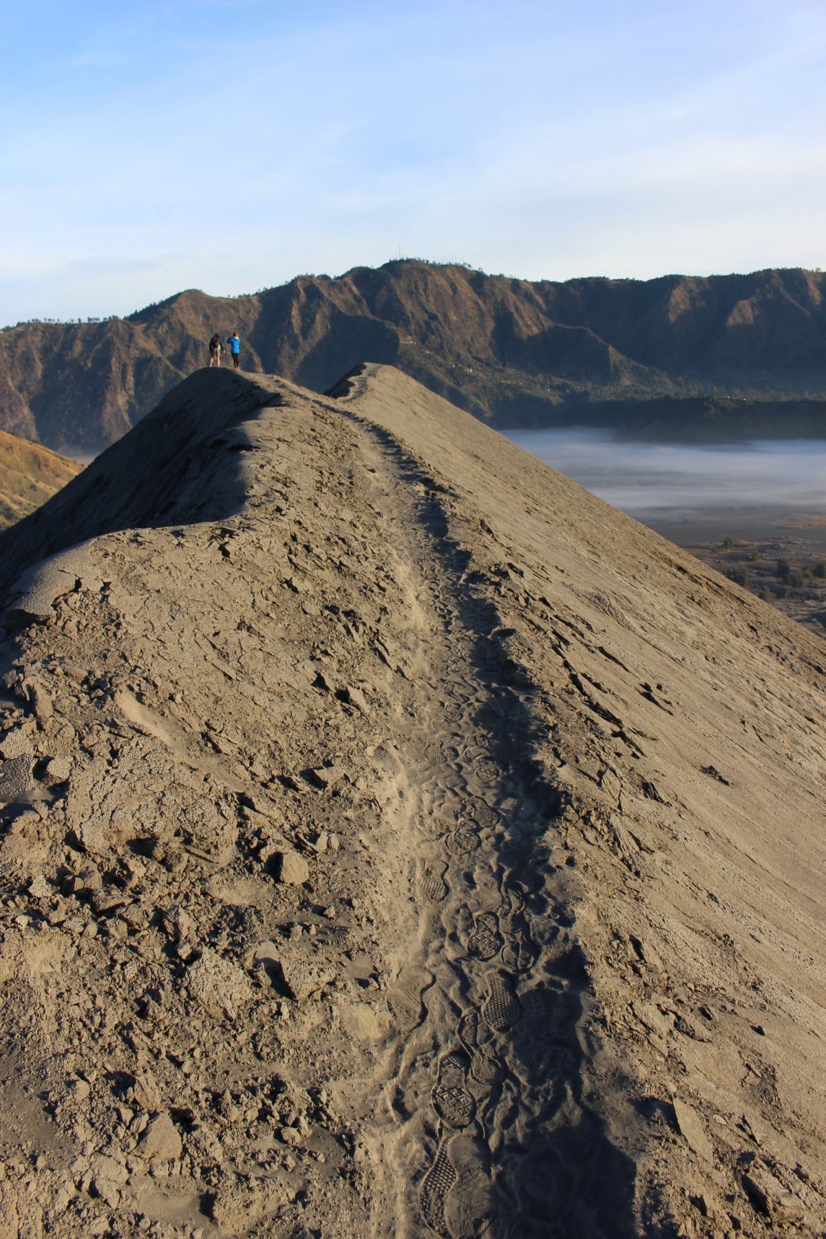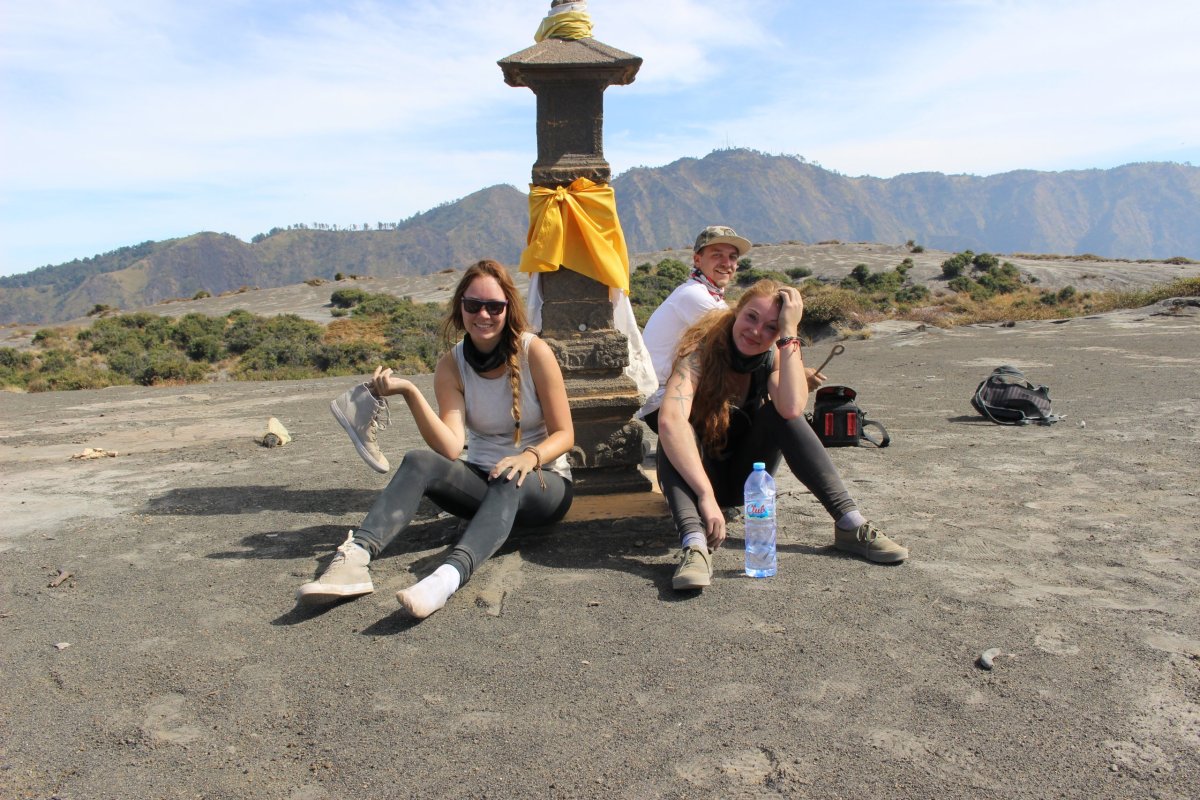 Z počátku se zdá, že se jedná opravdu o cestu, ovšem tento pocit nás velmi rychle opouští. Některé úseky jsou velmi strmé, plazíme se po čtyřech. Navíc je celá cesta pokryta přímo obří vrstvou černého prachu, který se neustále výří a sesypává pod tíhou našich nohou. Pražící slunce nám moc nepomáhá, navíc zásoby naší vody se rychle tenčí. No ale když už jsme vylezli do půlky, tak už to přeci dojdeme až nahoru. Ze všech sil se škrábeme nahoru, plíce plné prachu. Tak jako Bromo bylo procházka růžovou zahradou, tohle připomíná spíše procházku peklem. Nakonec se ale zdárně doškrábeme nahoru a pohled z vrchu na celé Bromo a okolní krajinu je k nezaplacení. Mount Batok je neaktivní sopka, nacházející se ve výšce 2 440 m.n.m., proto je z ní krásný pohled do nitra sopky Mount Bromo. Nahoře odpočíváme, nachází se tu malý oltář. Fotíme, užíváme si výhledy a relaxujeme. Čas ale běží a jelikož nám došla i voda, musíme se vypravit dolů. Cesta dolů je o dost rychlejší, jelikož se písek sype a sesouvá pod nohami. Stupeň prašnosti 100 z 10. Dole běžíme do jednoho z místních stánků pro vodu a sbíráme poslední síly k návratu do Cemoro Lawang a našeho pokojíčku. Po pravdě řečeno, po druhé bych tam už asi nešla, jelikož to bylo opravdu náročné, ale zase skvělé zážitky se vždy počítají. :)
