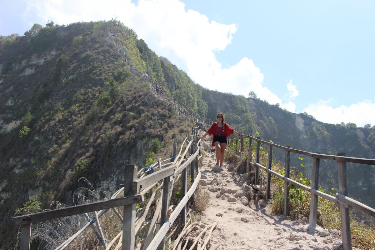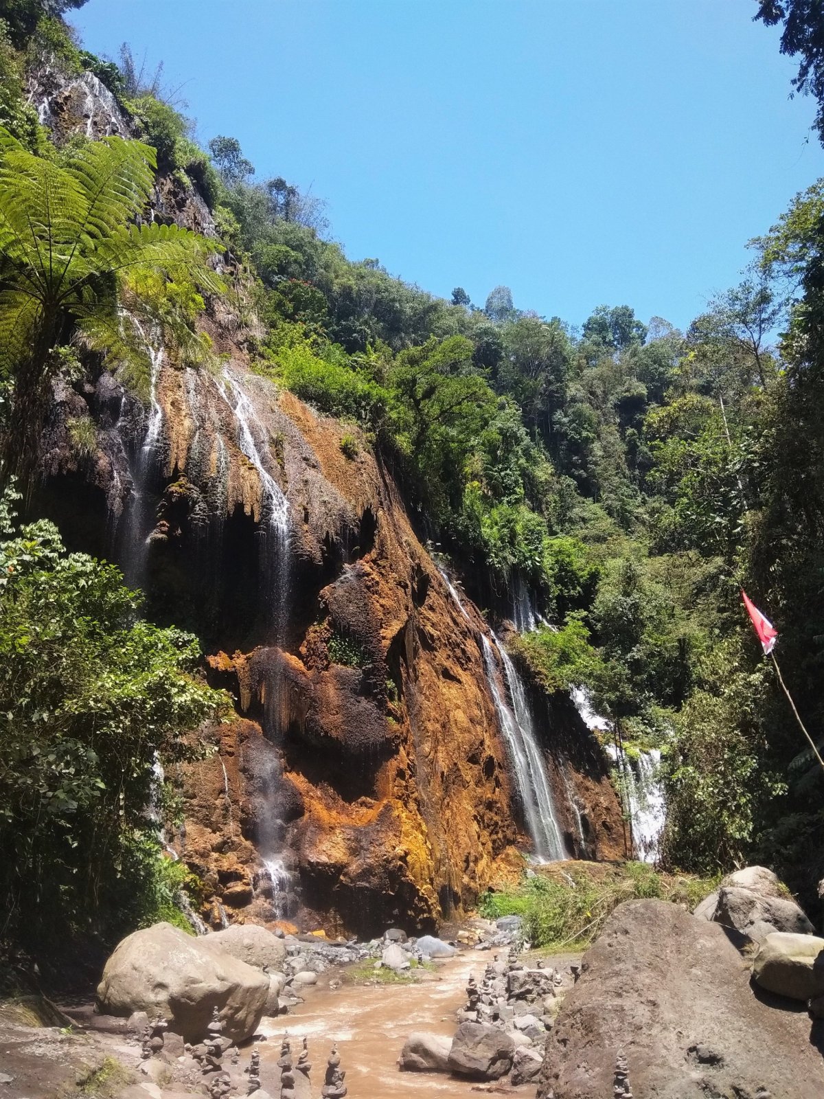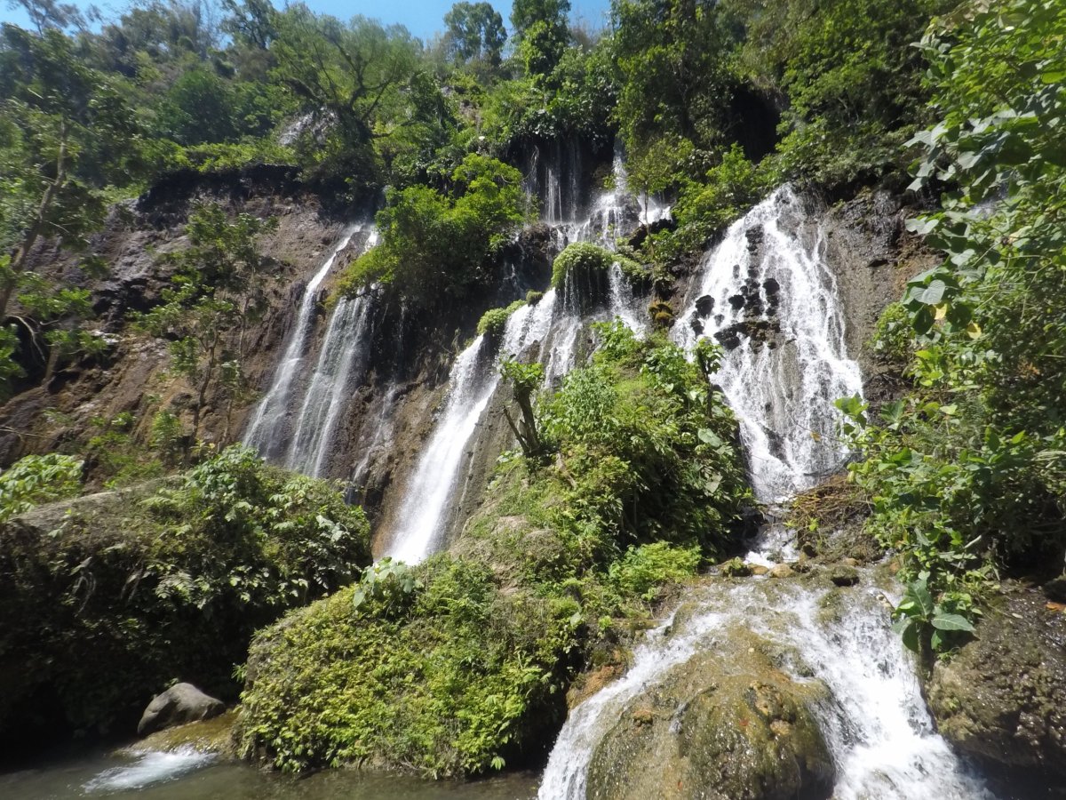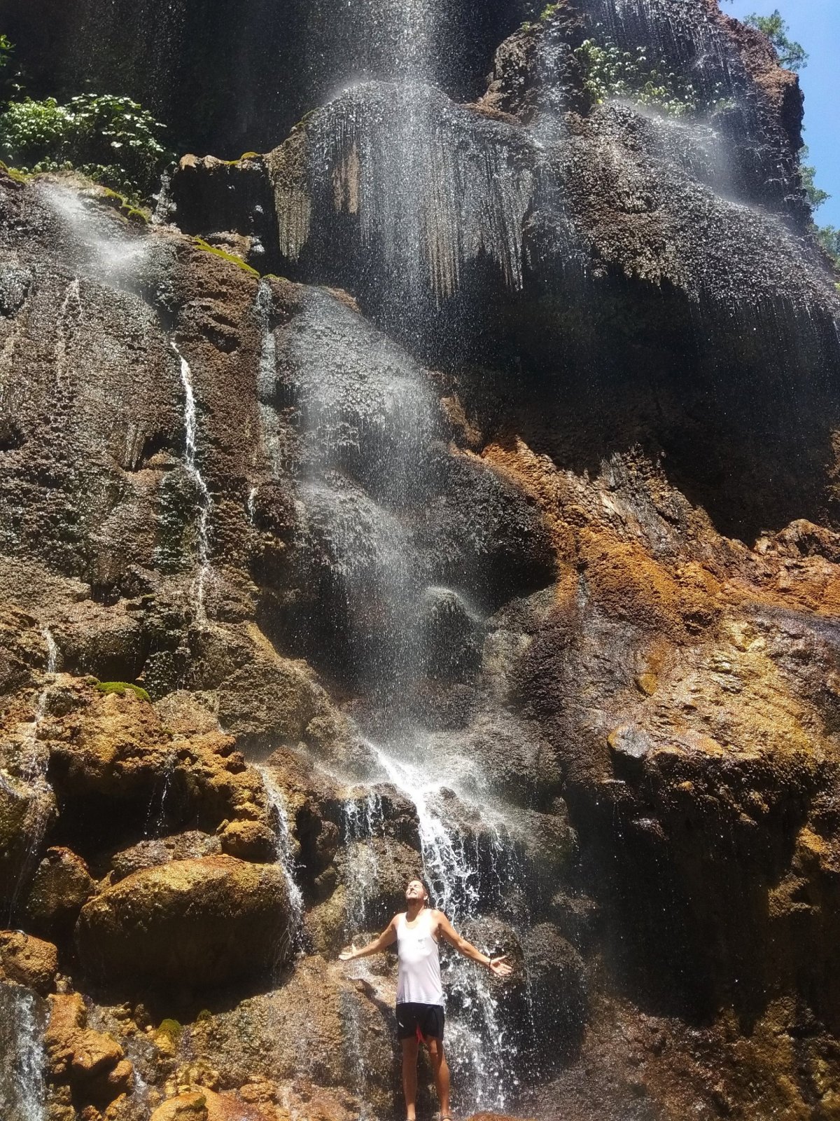 Vodopády Tumpak Sewu, známé taky jako Coban Sewu se nacházejí v oblasti Lumajang, zhruba 4 hodiny jízdy z Probolingga. Řidič nás vyzvedává v 7:00, původně jsme chtěli vyrazit dříve, ale řidič odmítl jet tak brzy, jelikož cesta je dlouhá a místy jsou nebezpečné úseky. V 11:00 jsme na místě, platíme parkovné a 20 000IDR/os. za vstup. Průvodce není třeba, cesta je hezky značená. Nejprve pokračujme na vyhlídku, která je opravdu úchvatná a určitě stojí za to. Dále pokrčujeme sestupem po bambusových žebřících dolů do kaňonu k vodopádům. Téměř po celé cestě je bambusové zábradlí, cesta je dosti kluzká kvůli bahnu a všudypřítomné vodě. Při sestupu je nutné projít přes malé vodopády, proto je vhodná pevná obuv, ale je nutné počítat s promočením. Jelikož je sobota, potkáváme několik skupinek turistů, kteří míří do kaňonu s námi. Jakmile se dostaneme dolů do kaňonu, dostáváme se k řece, pokračujeme vpravo podél řeky. U řeky stojí stánek, kde je nutné zaplatit dalších 10 000IDR/os. Po chvíli se nám rozprostírá nádherný výhled na vodopády. Všude je mokro, voda z vodopádů se tříští o stěny. Místo je to opravdu magické, procházíme se kolem vodopádů a užíváme si kouzelnou atmosféru. Trávíme tu asi hodinu a pokračujeme zpět podél řeky ke Goa Tetes. Pozor na vodu, je nutné chránit veškerou elektroniku.