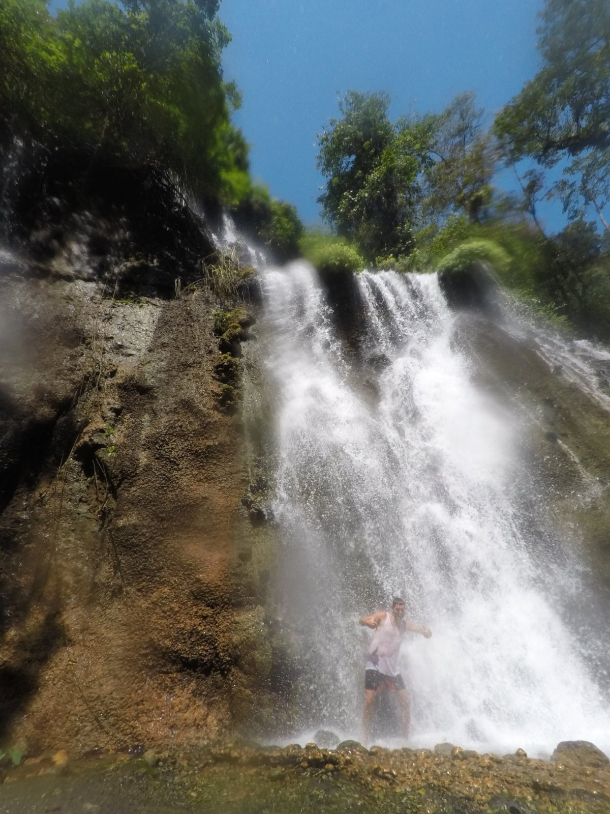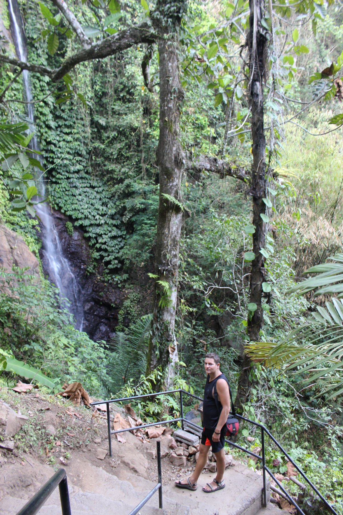 Jelikož na plážích nevydržíme moc dlouho, rozhodli jsme ještě omrknout vodopád Air Terjun Jagastru. Cesta k vodopádu občas velmi prudce stoupá, proto jsou tu ale krásné výhledy do okolní krajiny. K vodopádu je třeba sejít po schodech, bohužel za naší návštěvy tu bylo málo vody, tudíž byl vodopád malý, ale krajina krásná. Po návštěvě vodopádu jedeme zpět do ubytování, povečeříme a jdeme spát.