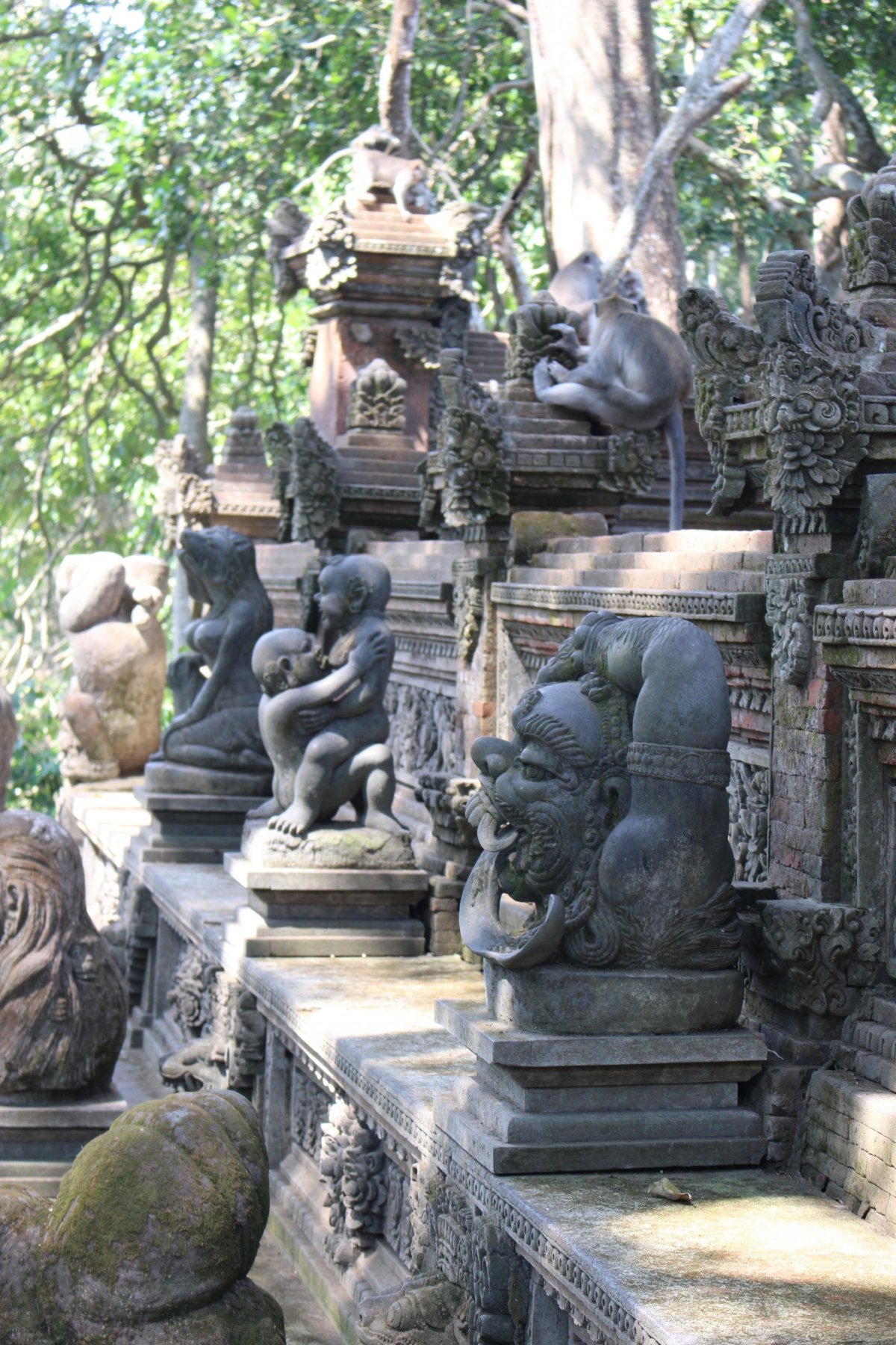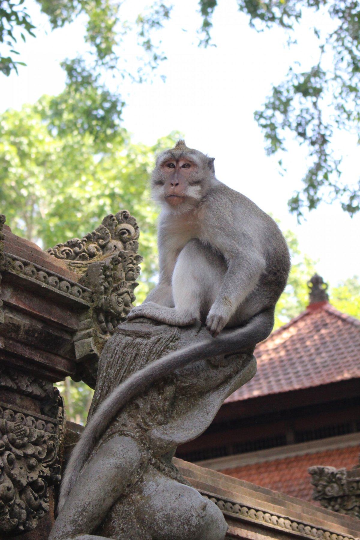 Ubud je plný turistů, obchodů a restaurací. Stavujeme se na oběd a pár drinků a poté míříme do opičího lesa. Platíme vstup 80 000IDR/os. a jdeme dovnitř. Je tu plno turistů, ale taky plno opičáků. Pozorujeme, fotíme a procházíme se.