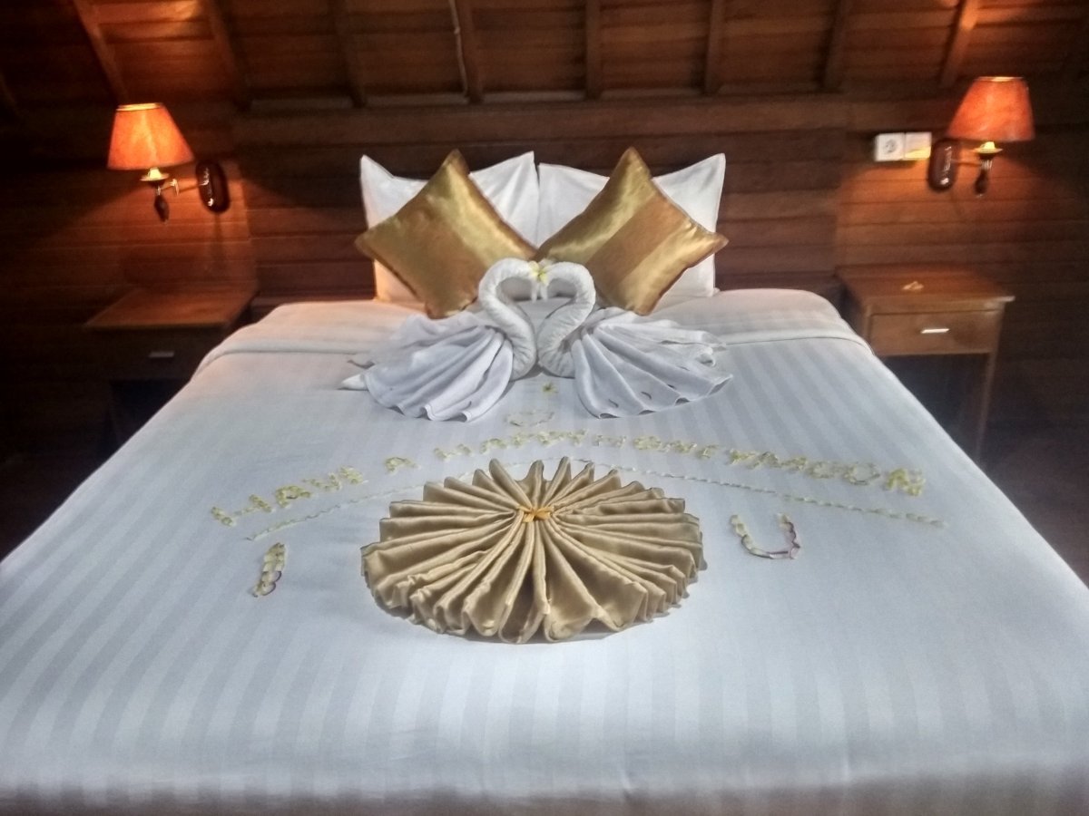 Jelikož jsme se často přesouvali, ubytování jsme vystřídali poměrně dost. Vše jsme dopředu zamlouvali na bookingu. Ubytování v Indonésii je opravdu levné, navíc většina ubytování nabízí i snídaně a velmi často mělo ubytování i bazén. Náš rozpočet byl 500 Kč/noc/2-lůžkový pokoj, průměrně jsme se ale platili 350 Kč/noc/2-lůžkový pokoj, takže jsme byli mile překvapení. :)