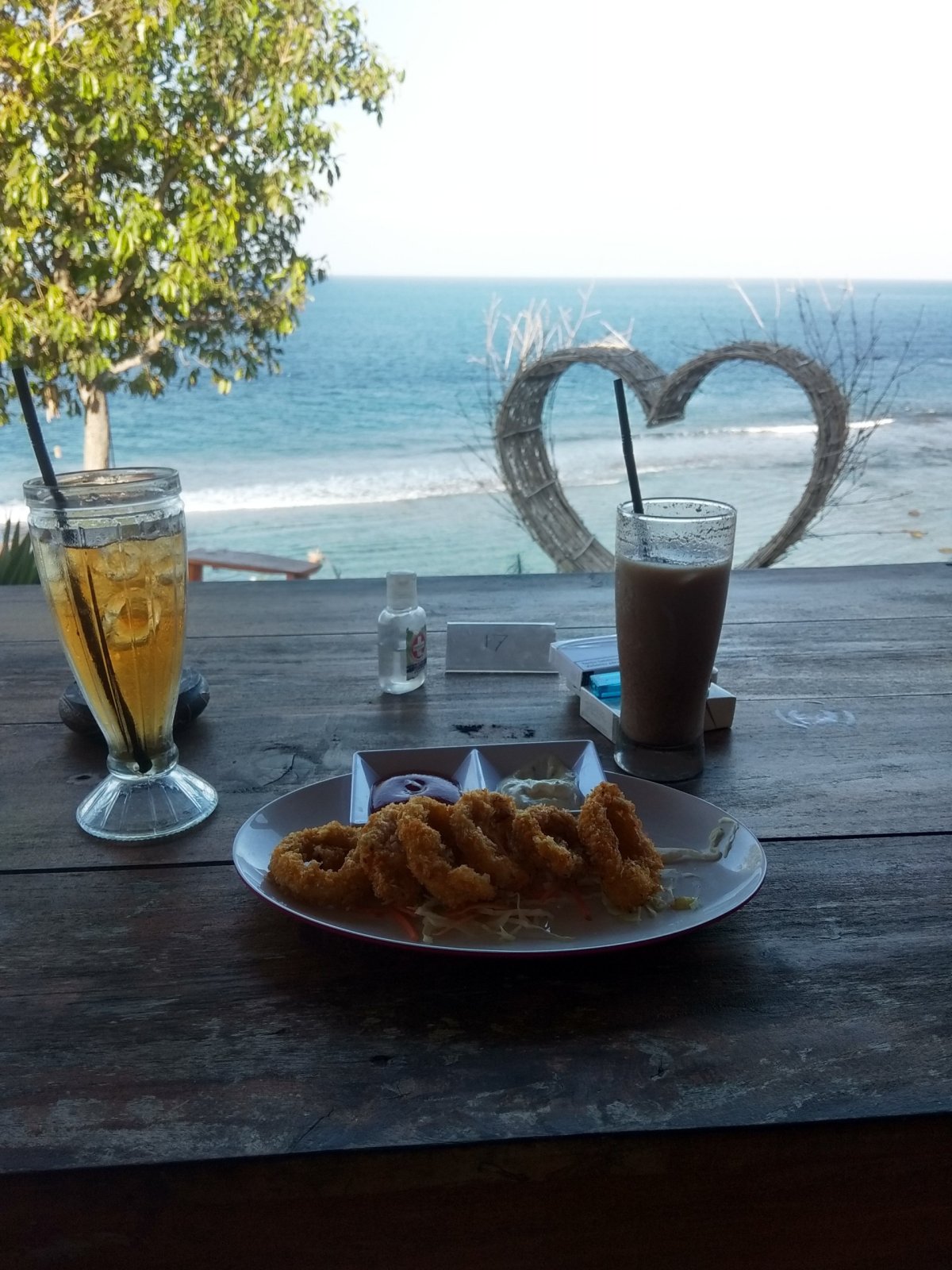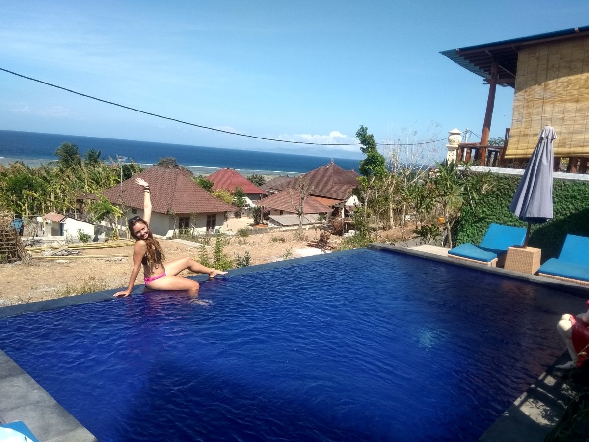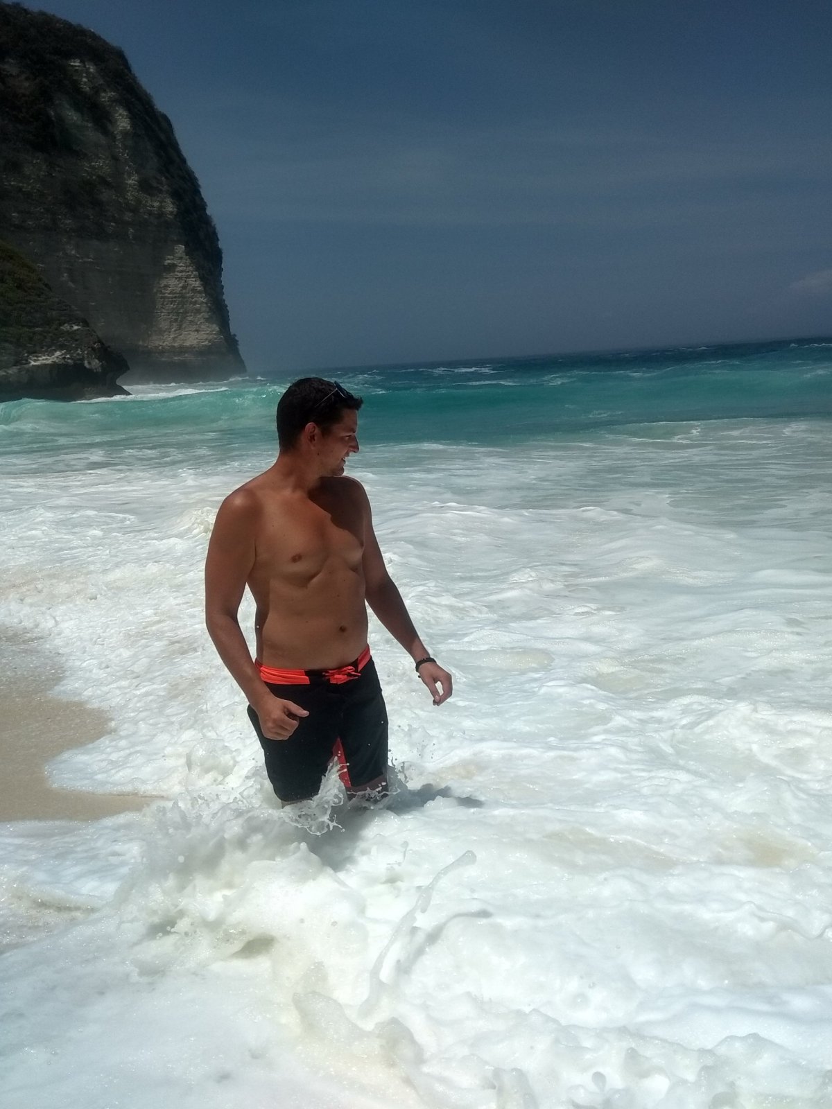 Ráno se probouzíme jako v ráji, paní domácí už nám chystá snídani. Majitelé ubytování jsou velmi příjemní a ochotní. Sedáme na skútr a jedeme vstříc krásným plážím. Jako první volíme Atuh beach, mapa nás ale vede špatně. Potkáváme malou holčičku, která nám ukazuje cestu. Parkujeme skútr, za což si u holčičky musíme koupit něco na pití a ona nám ukazuje strmou cestu po útesu k pláži. Je pravdu horko, tudíž se snažíme jít co nejrychleji. Po 40 minutách se ocitáme u pláže.