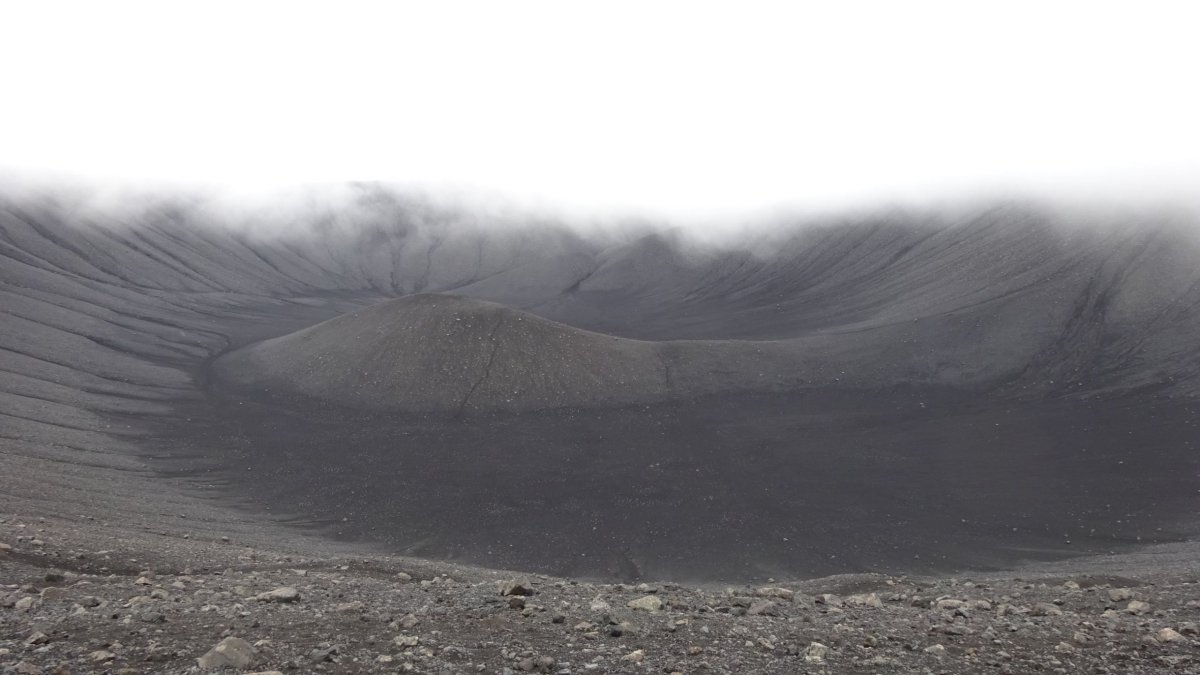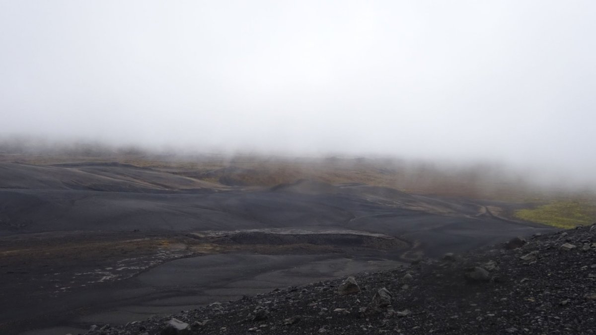 O den později si dáme výšlap na kráter Hverfjall. Temný apokalyptický prostředí. Všude černo a kouř.