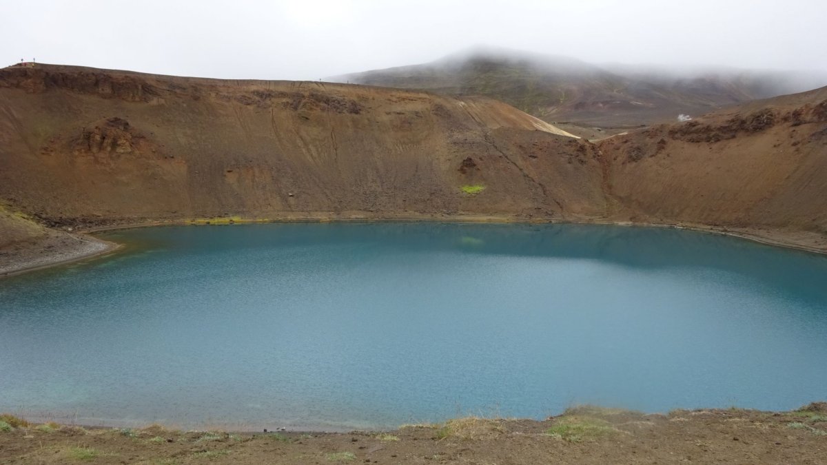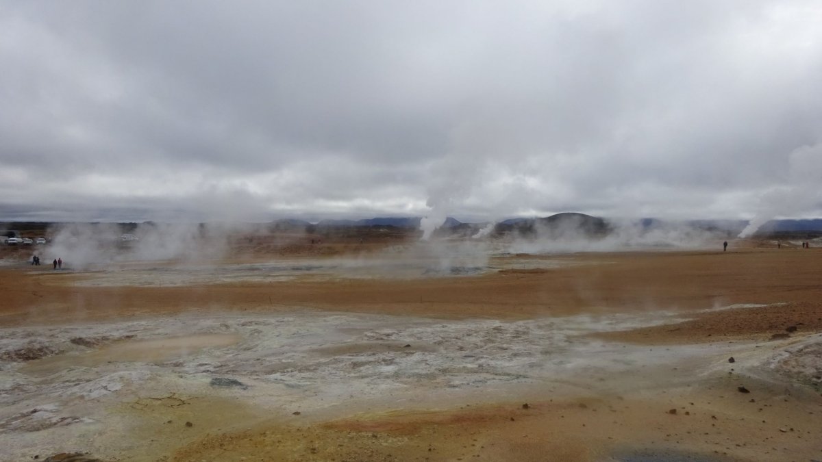 Další štací je geotermální oblast Námaskarð, kde už si fakt zvykáme na všudypřítomnej pach sýry a horký kráter Krafla-Viti.