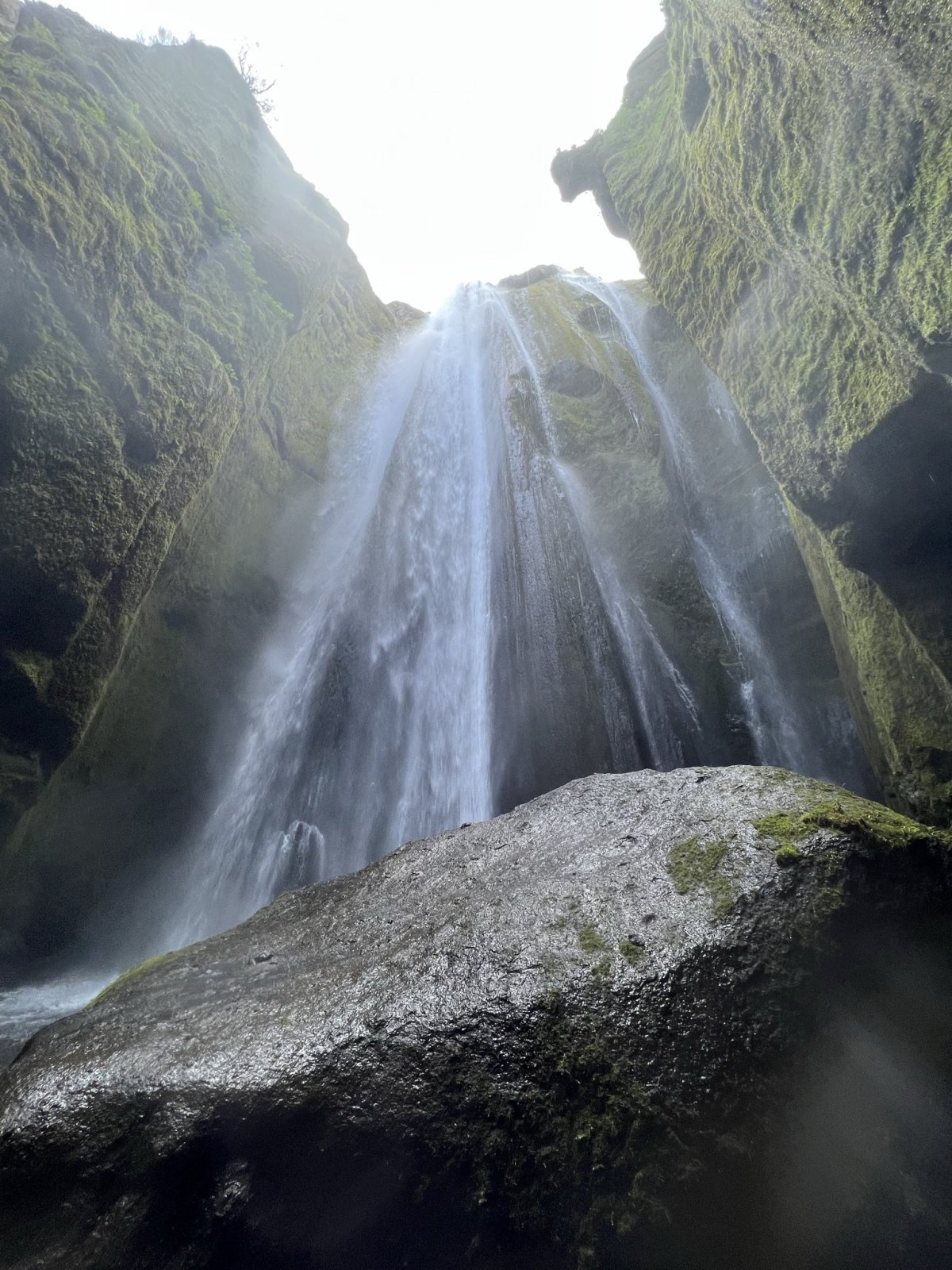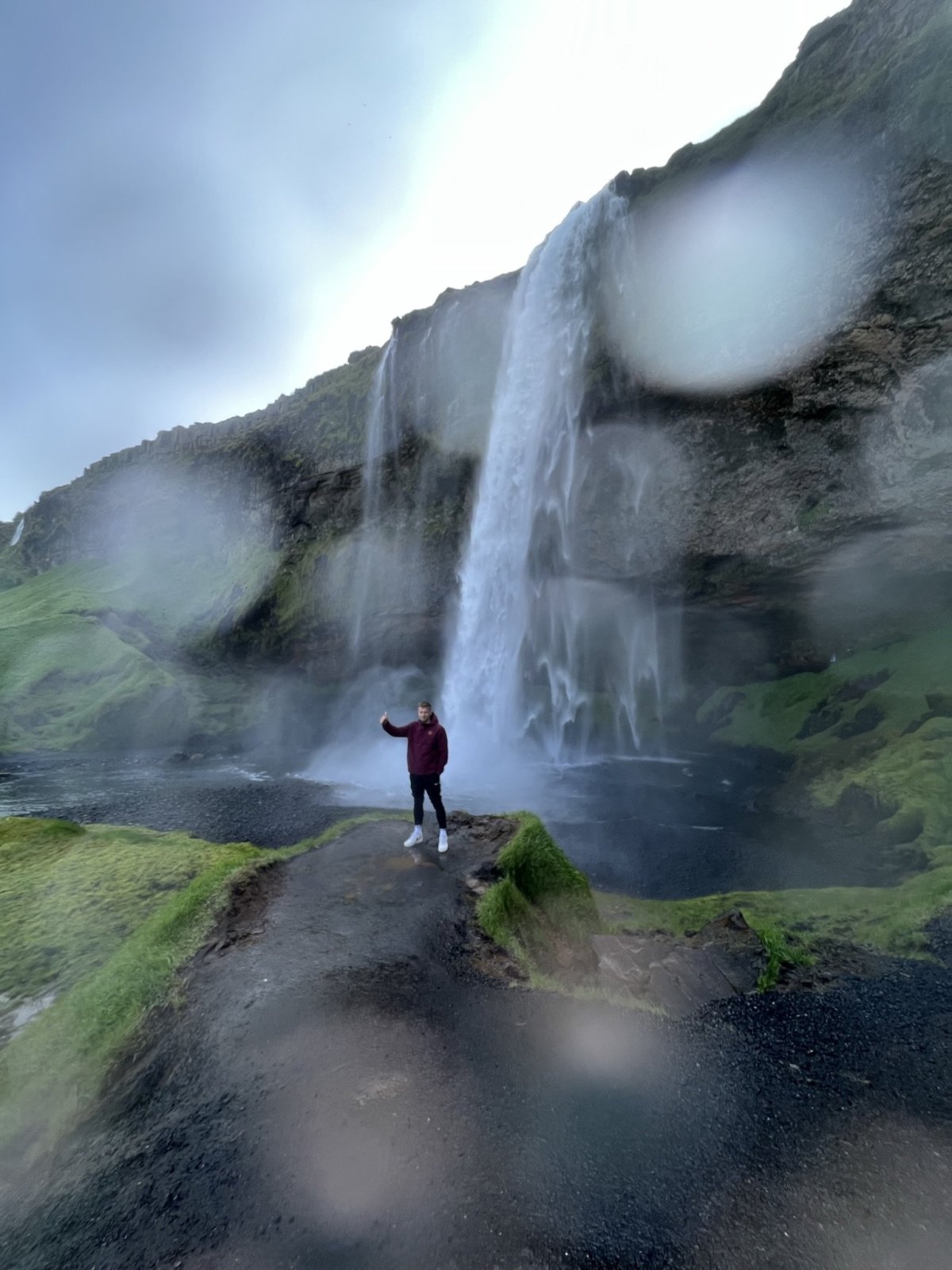 Hneď po raňajkách sme vyrazili na prvý z nich, vodopád Seljalandsfoss, ku ktorému je taktiež ľahký prístup. Dá sa dostať až za samotný vodopád, a preto si odporúčam obliecť nepremokavú bundu. Správna bunda je najdôležitejším oblečením pri návšteve každého vodopádu, ku ktorému plánujete ísť bližšie. V jeho blízkosti, cca 500m, sa nachádza skrytý menší vodopád Gljufrabui, ku ktorému sa dostanete cez skalu a vodu. Ak ste po prvom vodopáde zostali suchý, tak tu sa vám to už pravdepodobne nepodarí, kedže stojíte priamo pod samotným vodopádom.