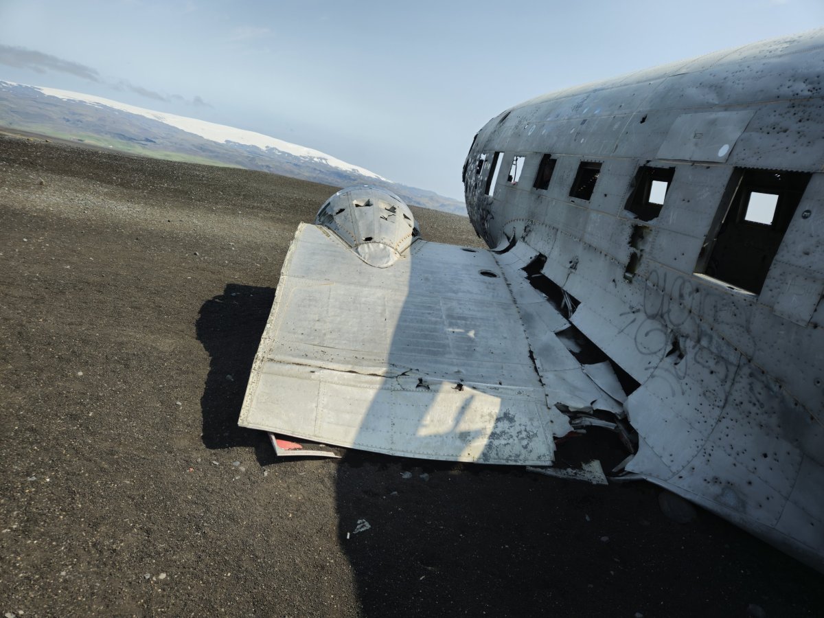 Neďaleko tejto oblasti sa nachádzala neobývaná časť Solheimasandur. Na jej okraji leží vrak lietadla, ku ktorému vedie cesta dlhá cca 4km. Premáva tu každých 20 minút vylepšený shuttle bus (2000 ISK jedna cesta, 2600 ISK obojsmerne), na ktorý sa nám nechcelo čakať, a tak sme sa vydali na 40 minútovú prechádzku po kamenistej ceste a následne o niečo kratší návrat k autu.