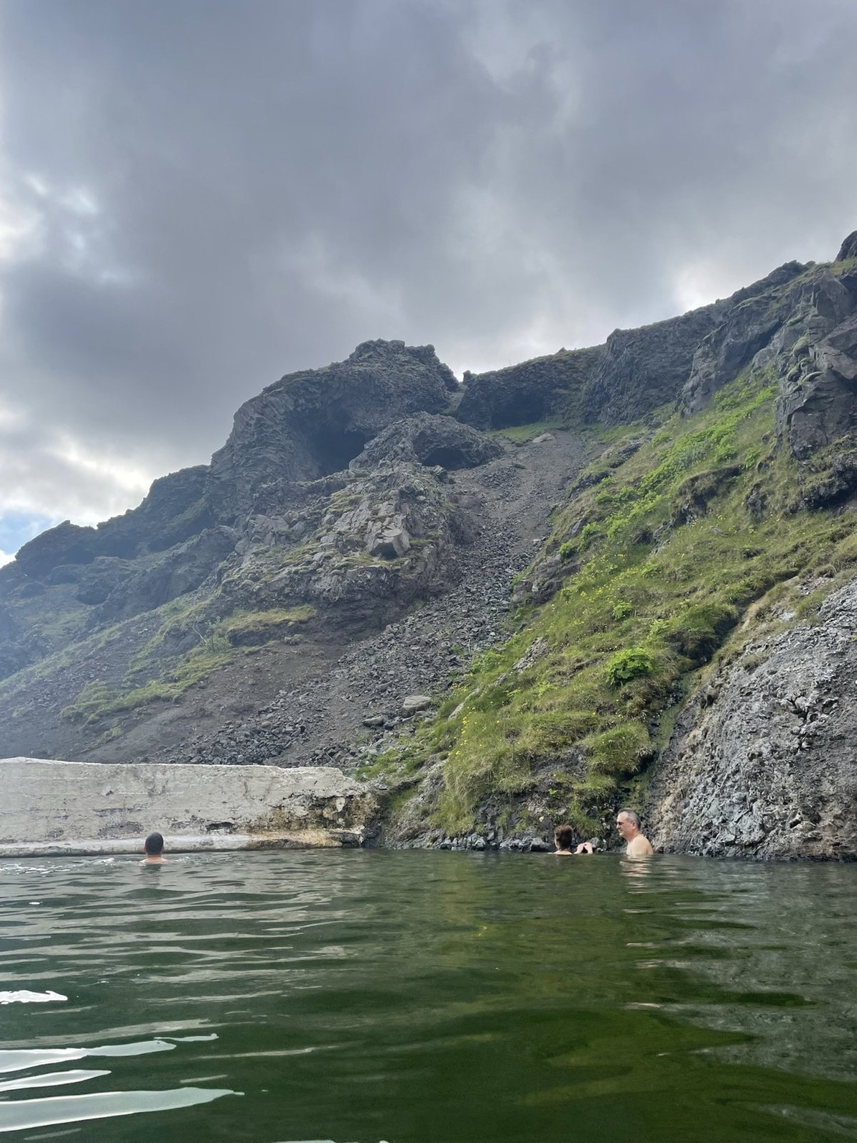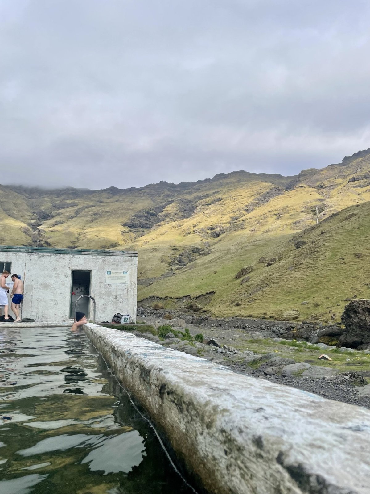 Čo by to bol za deň bez ďalšieho prírodného kúpania. Práve preto sme sa vrátili k Seljavallalaug Swimming Pool, čo bol starý bazén pri rieke obklopený krásnymi horami, ku ktorému vedie asi 10 minút dlhá prechádzka údolím. Voda v ňom je prijateľne teplá.