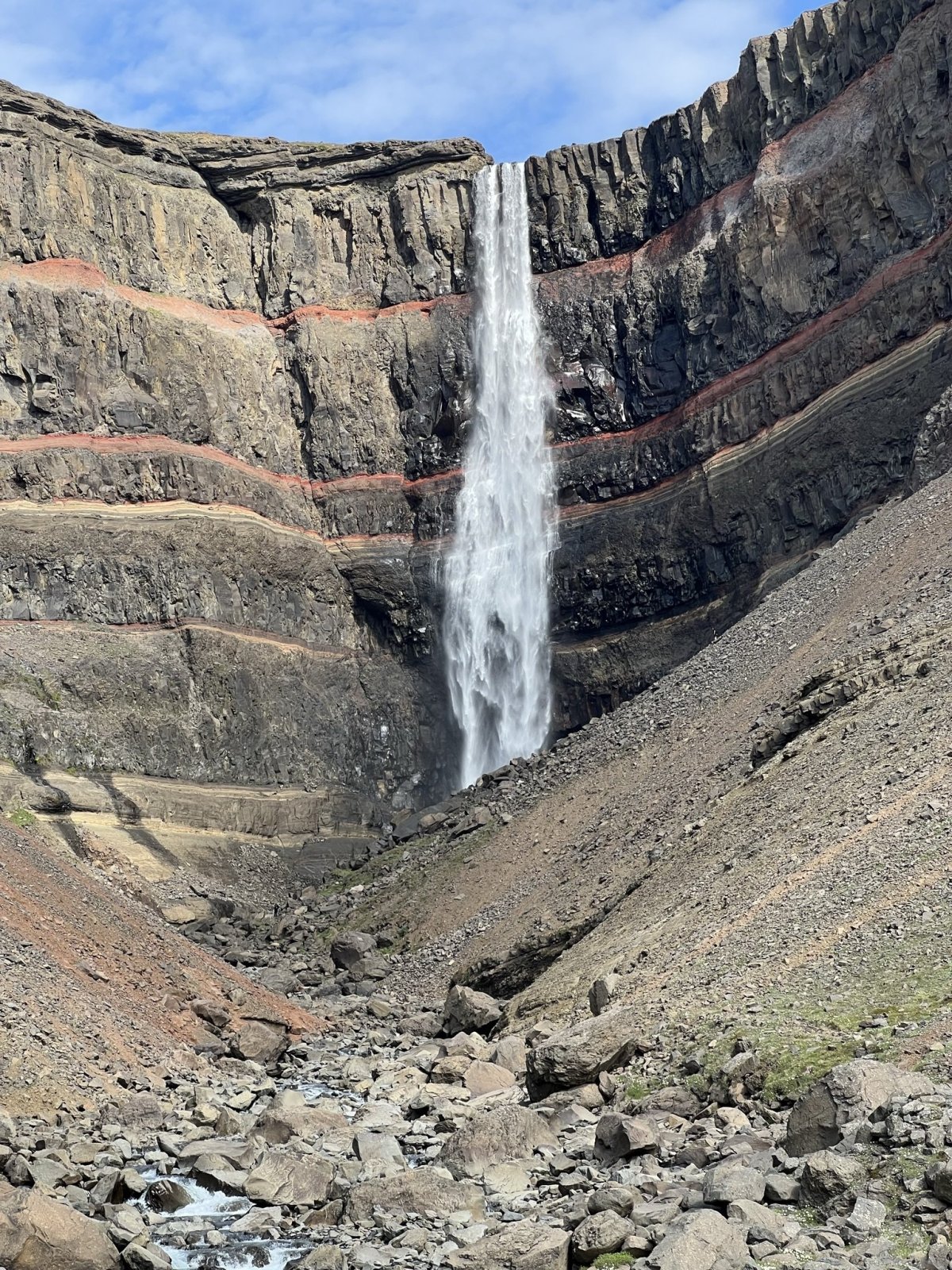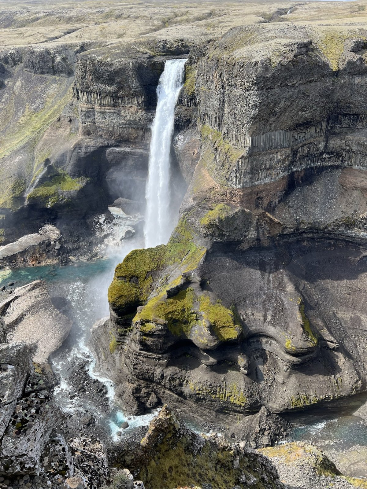 Po teplom kúpaníčku sme už cestovali k vodopádu Haifoss, ku ktorému viedla horšia kamenistá cesta, ale stojí za to! Toto miesto nás veľmi milo prekvapilo a zostali sme tu o niečo dlhšie. Bolo tam málo ľudí a zároveň skvelý výhľad na vodopád a celú roklinu.